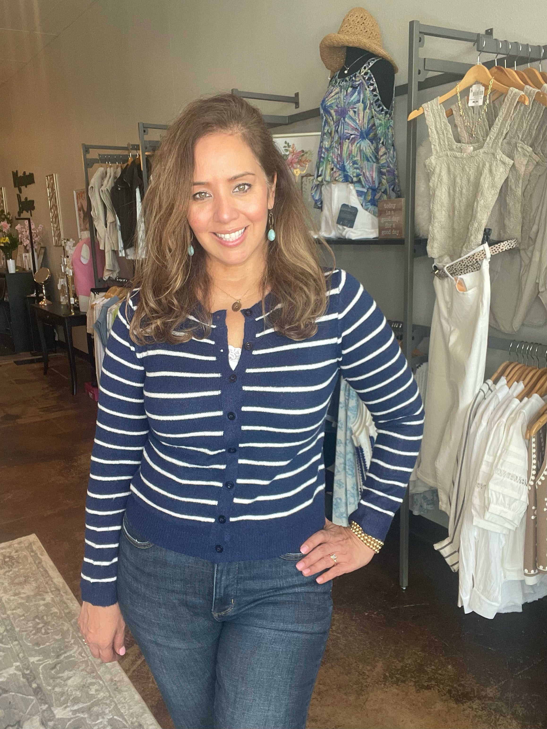 Elevate your everyday style with our Striped Button-Down Long Sleeve Knit Cardigan the perfect blend of comfort and classic charm. Featuring a timeless striped pattern and a flattering button-down front, this versatile cardigan is crafted from soft, breathable knit fabric for all-day wear. The long sleeves offer cozy coverage, while the relaxed fit makes it ideal for layering over your favorite tops or dresses. Whether you're heading to the office, running errands, or lounging at home, this wardrobe essential adds a touch of effortless sophistication to any outfit.