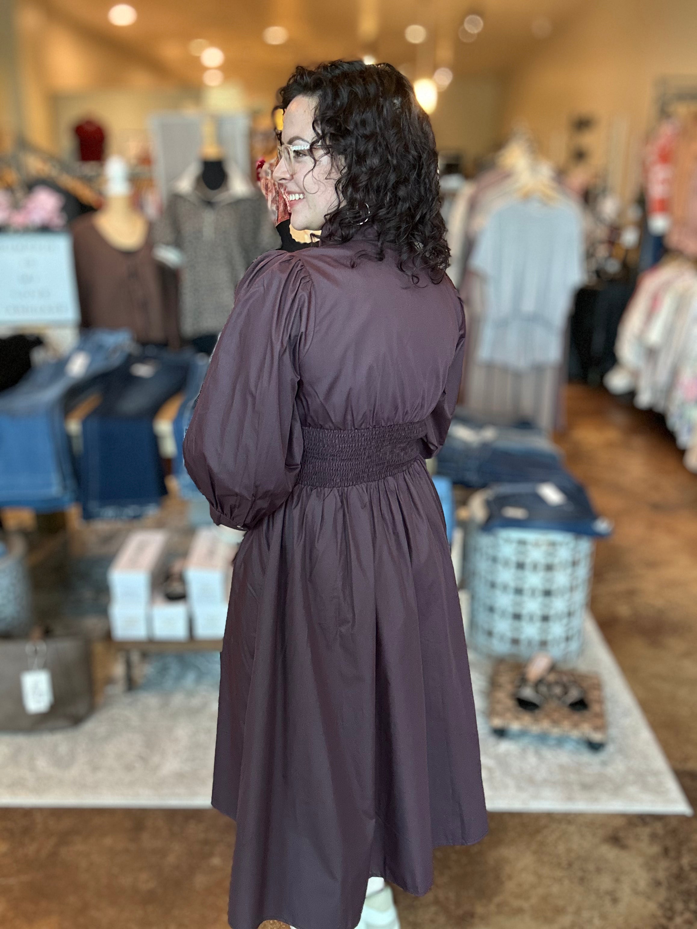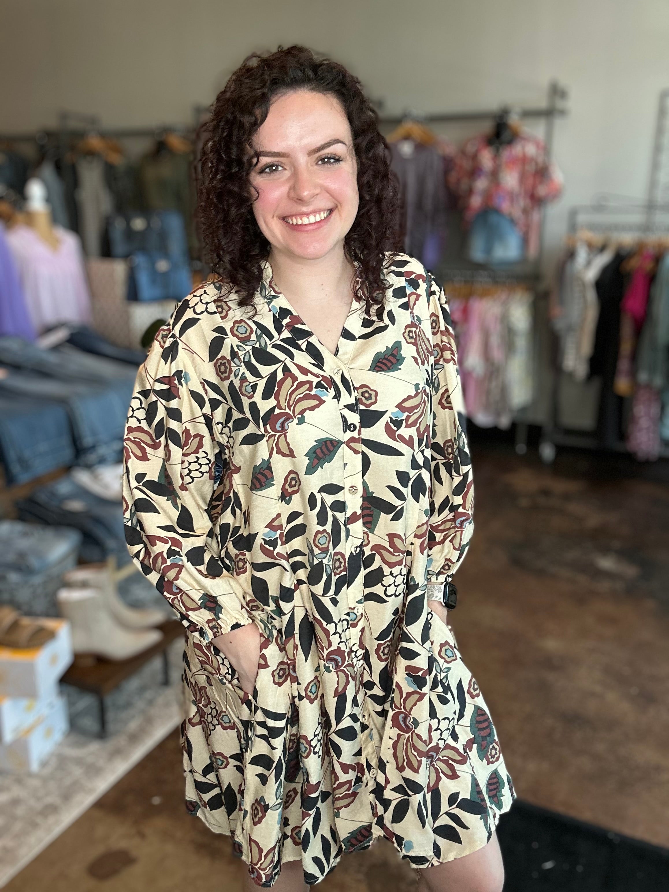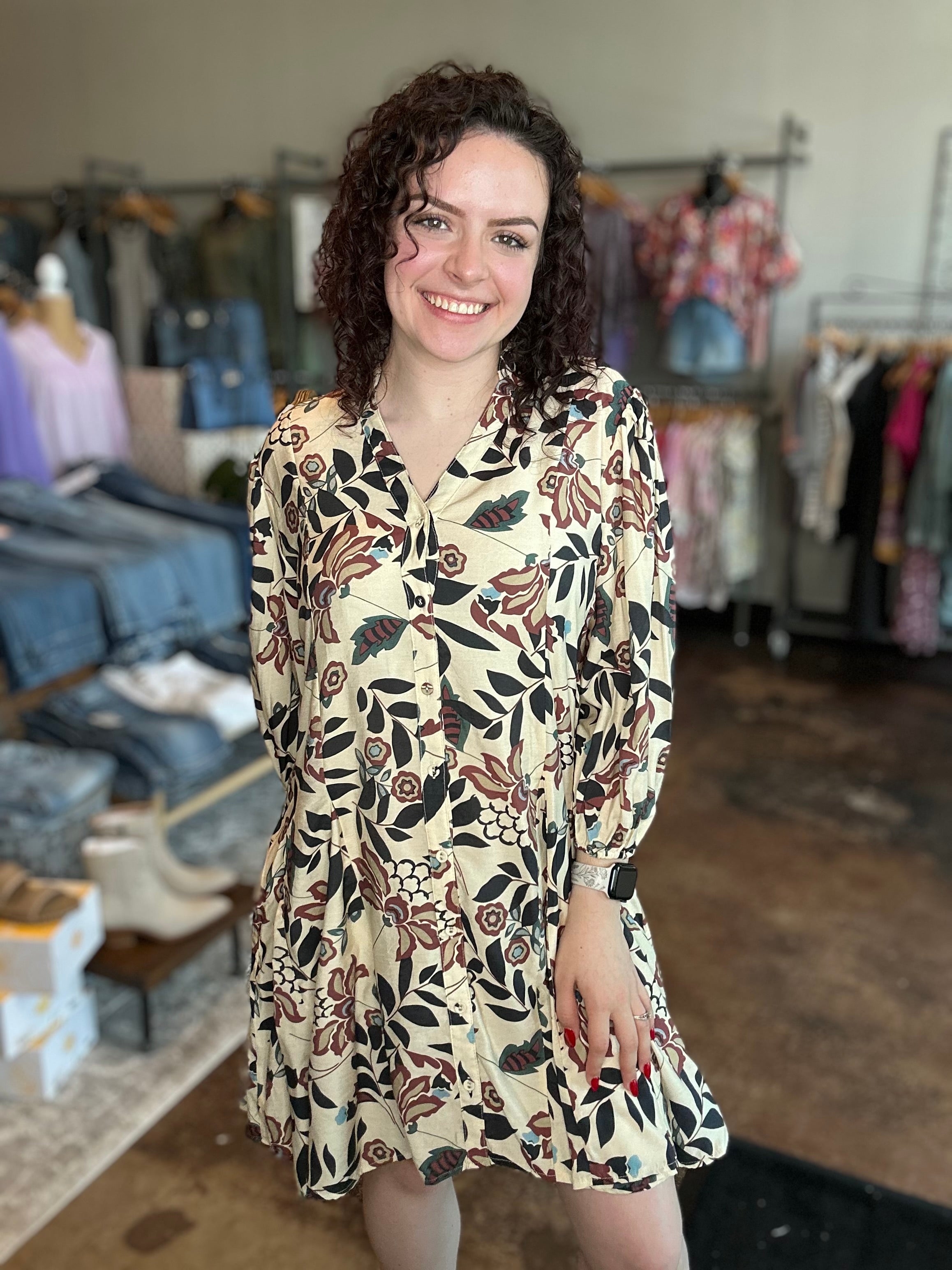 Abstract Collared Shirt Dress w/ Balloon Sleeves