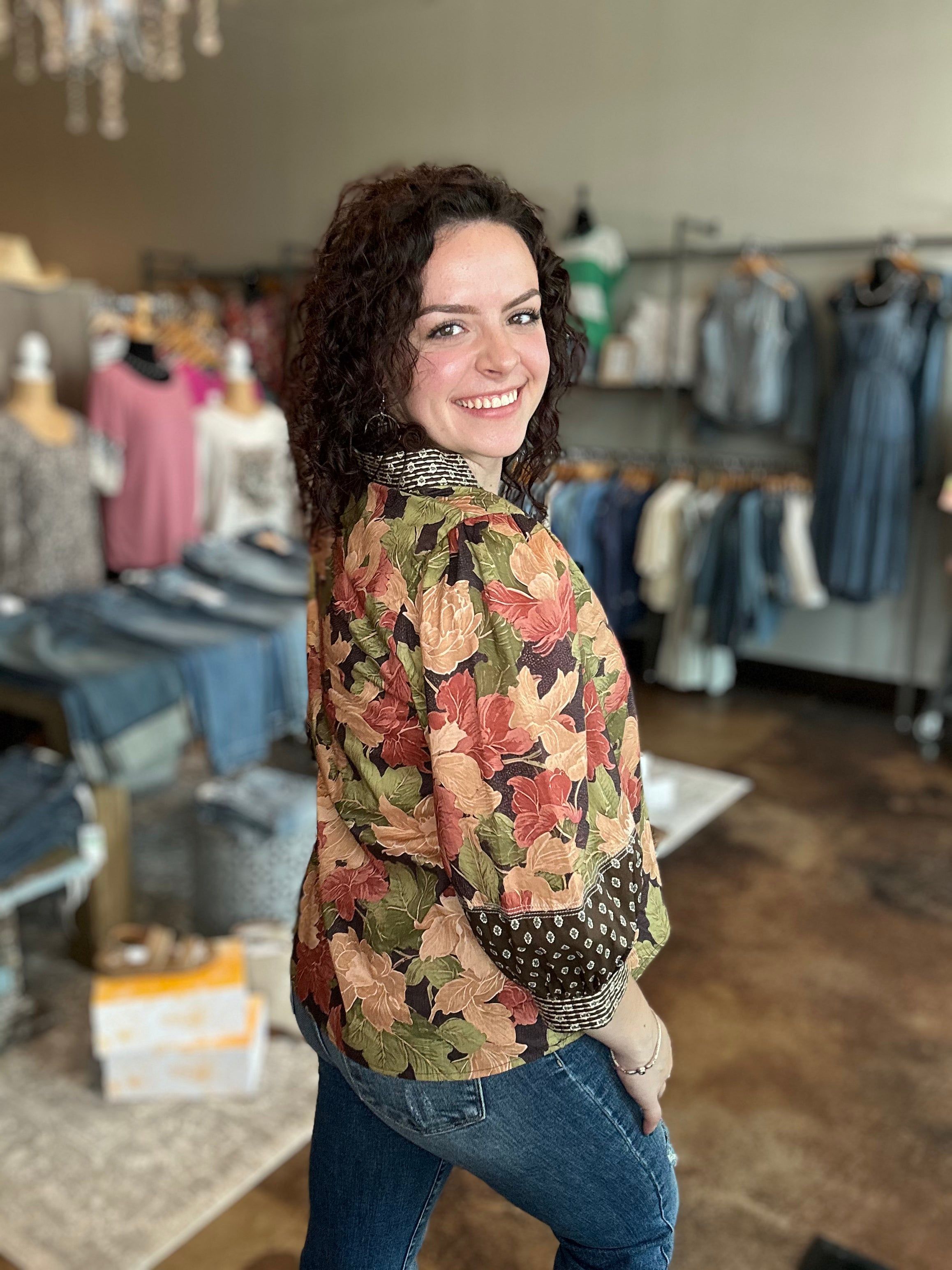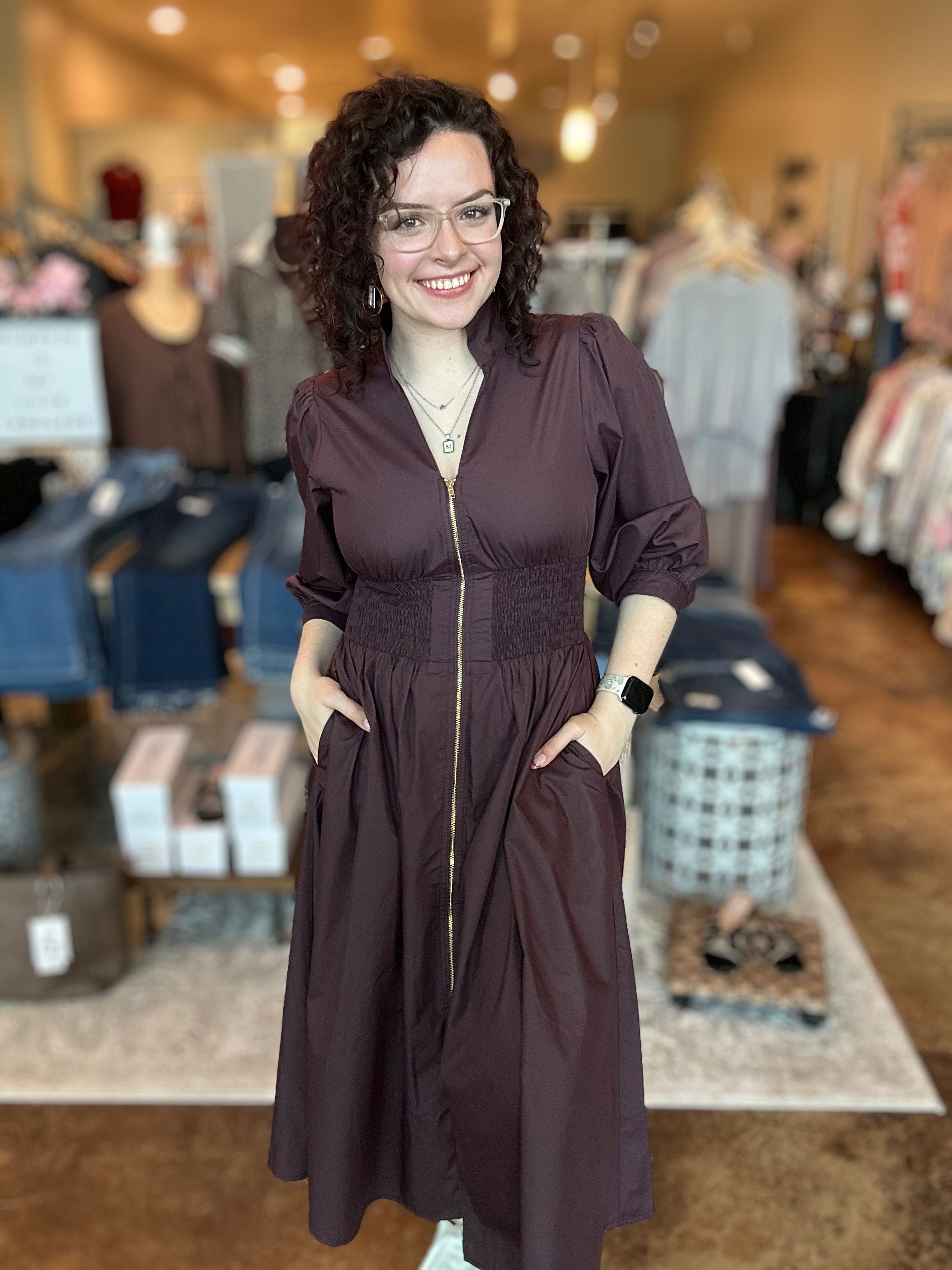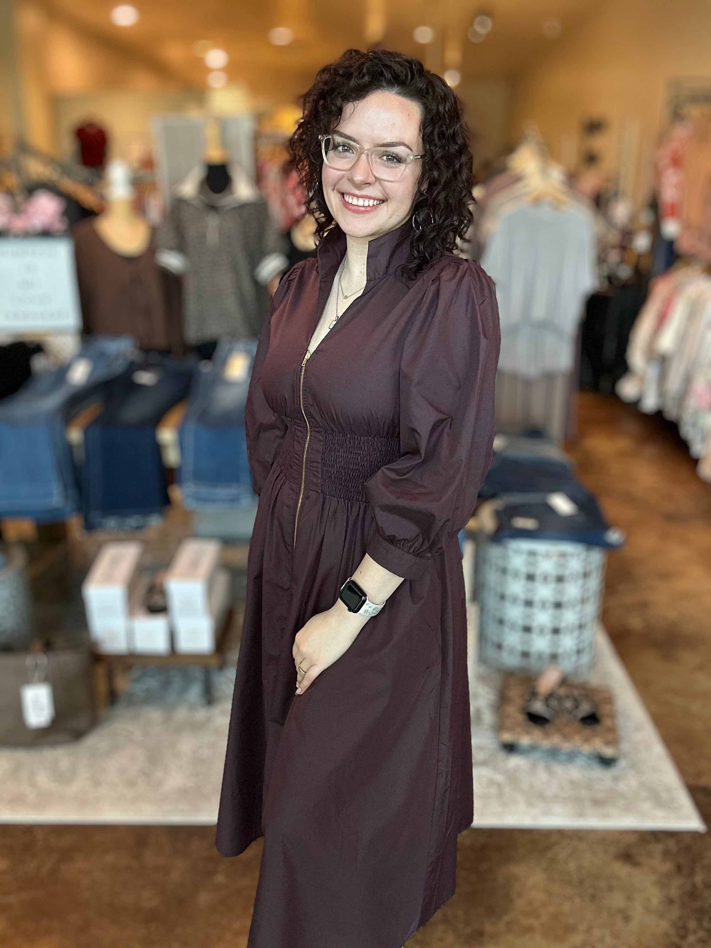 Abstract Collared Shirt Dress w/ Balloon Sleeves
