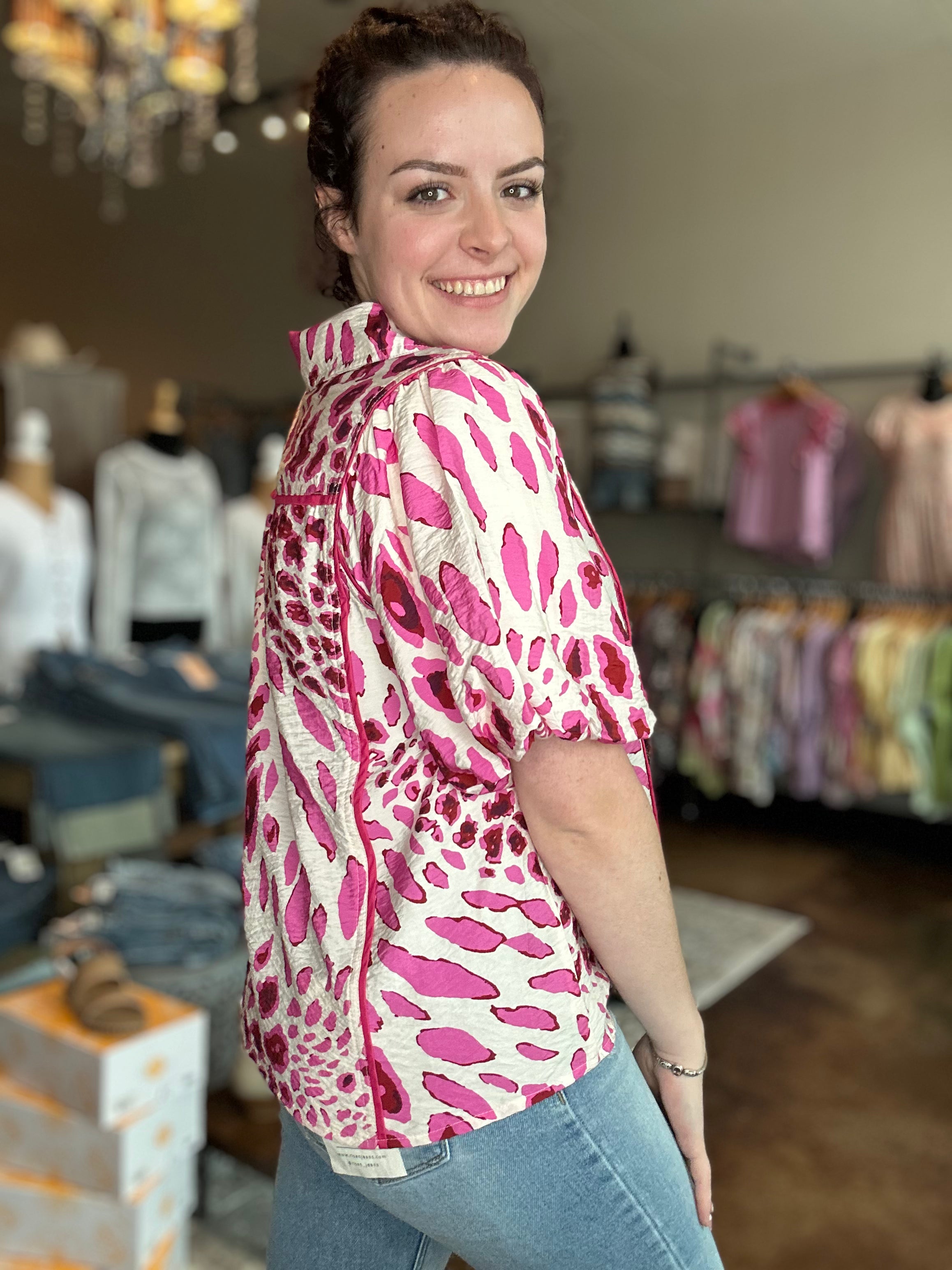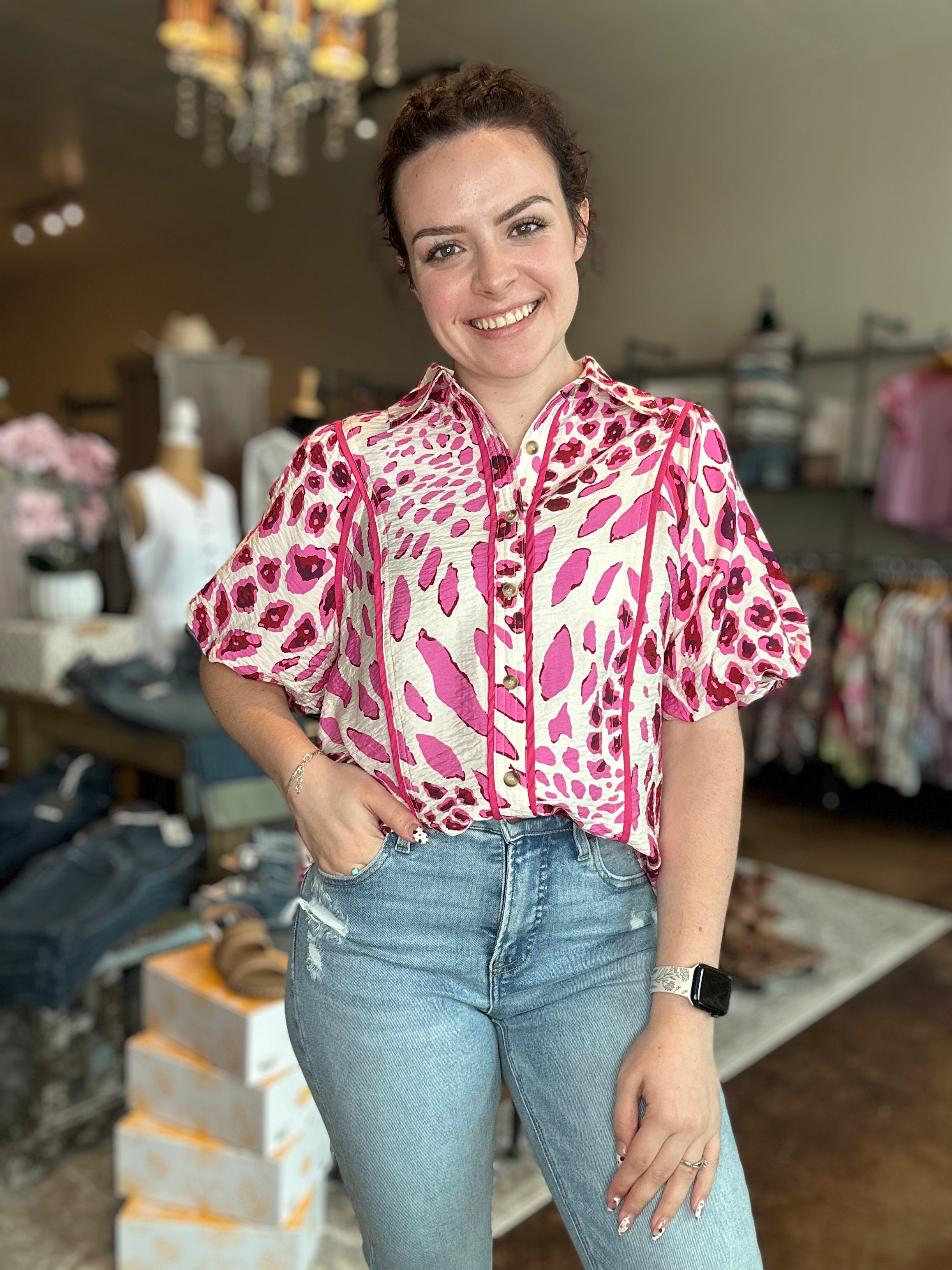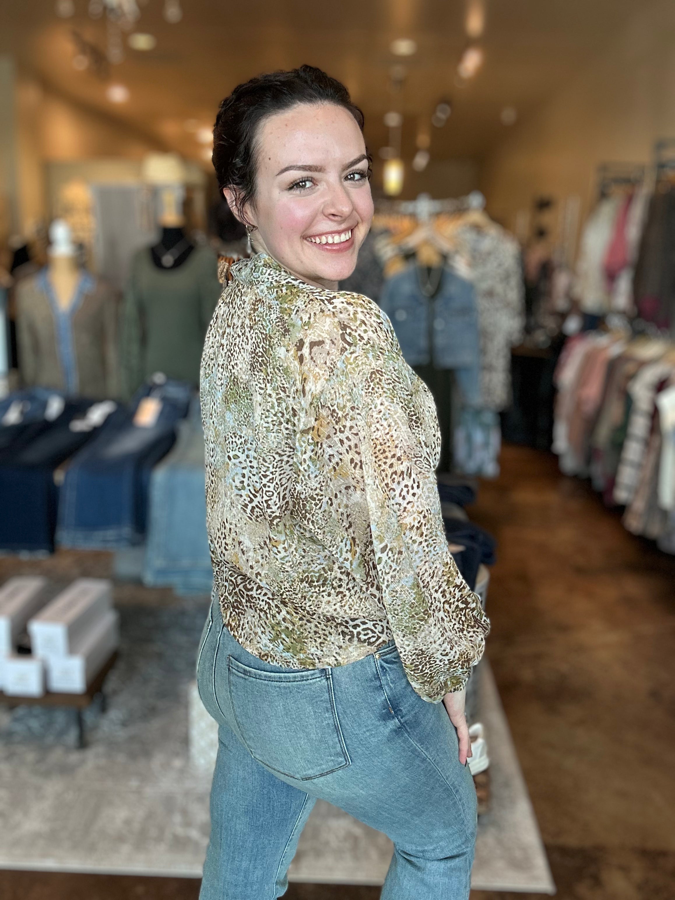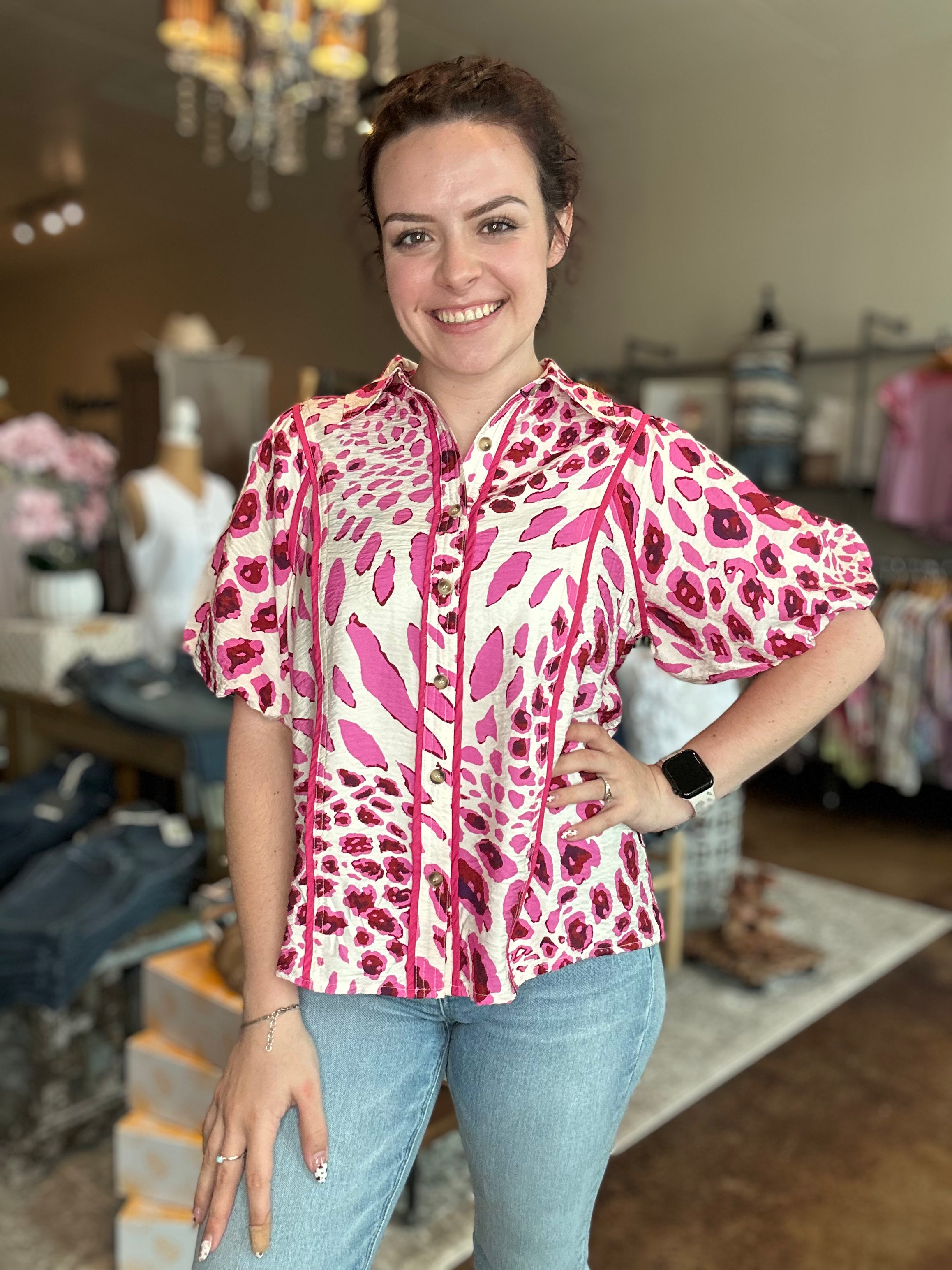 Animal Print Bubble Sleeve Top