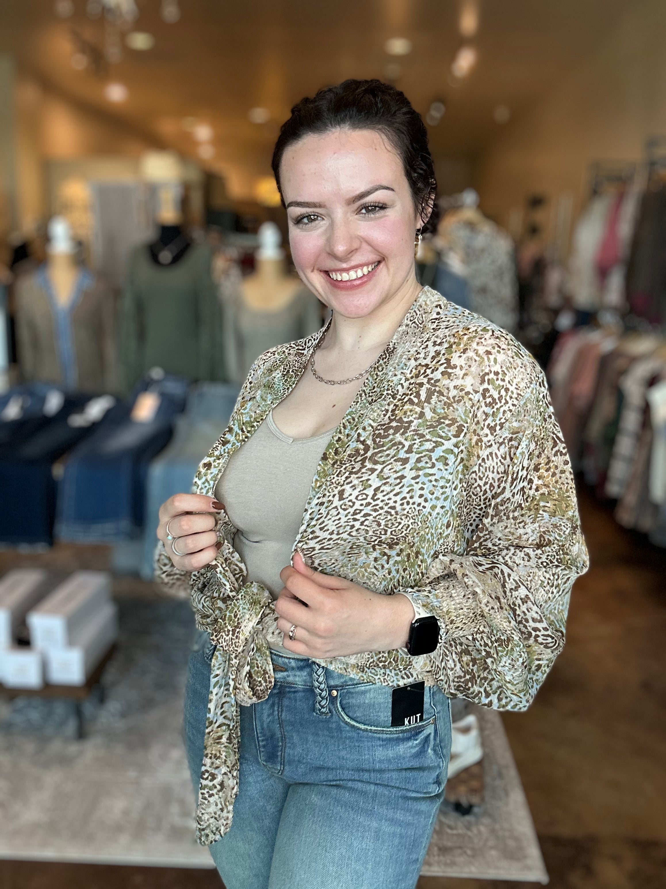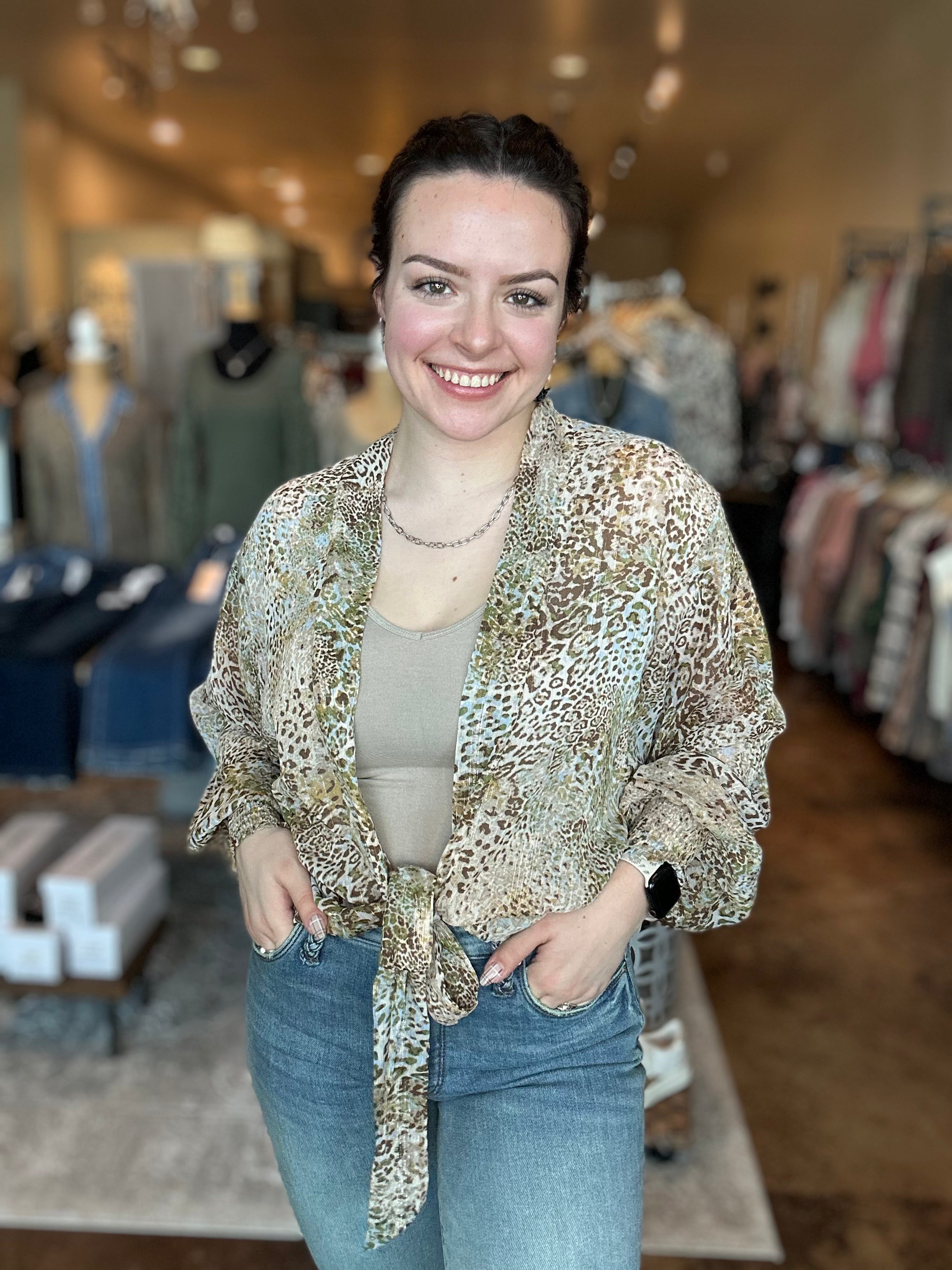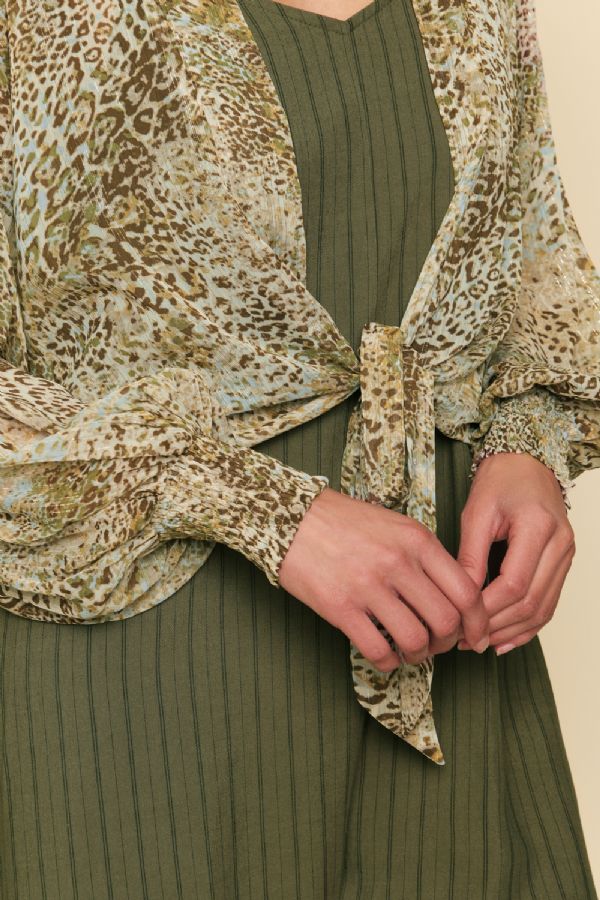 Animal Print Tie Front Kimono