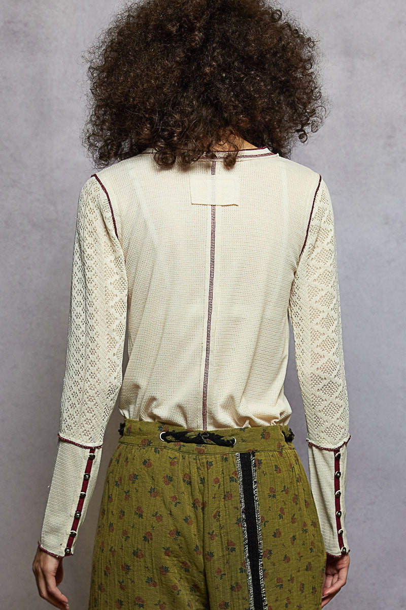 Thermal Lace Sleeve Henley Top