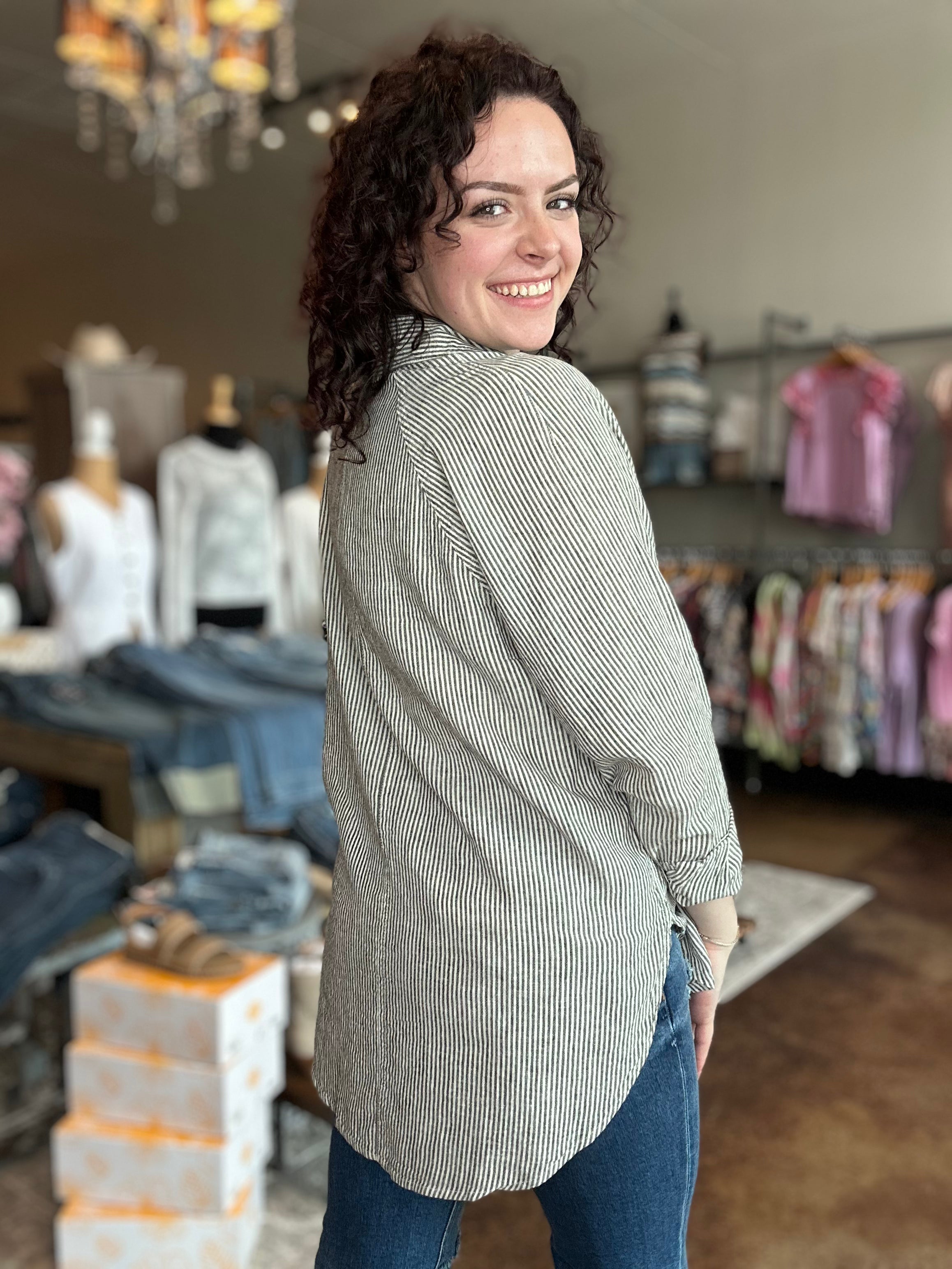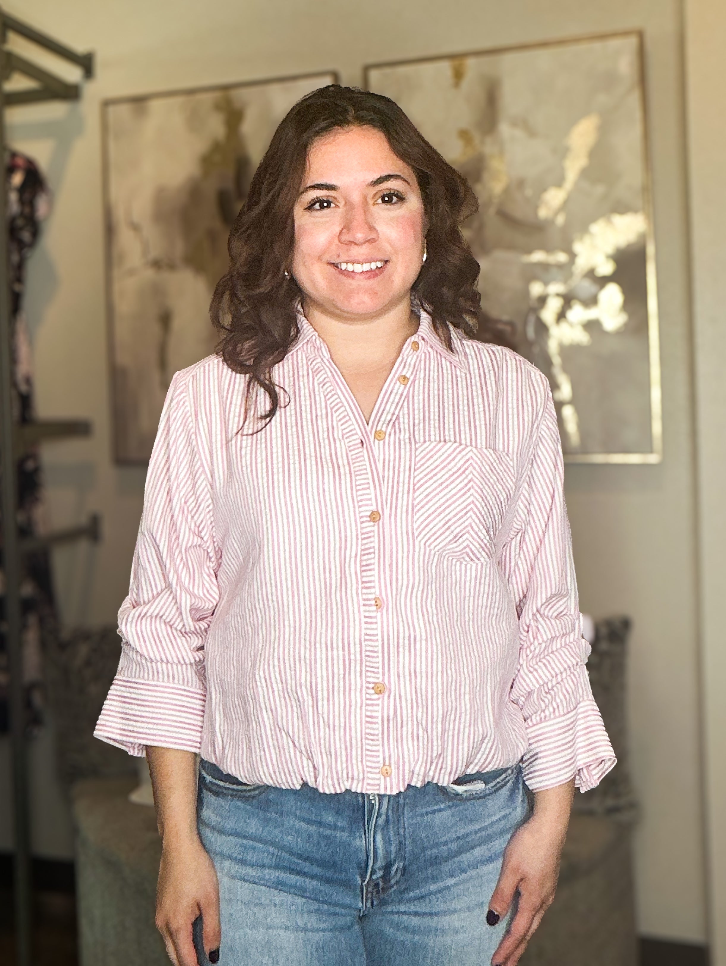 Tucked Sleeve Collar Button Down