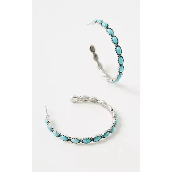 Turquoise Stone Hoop Earrings