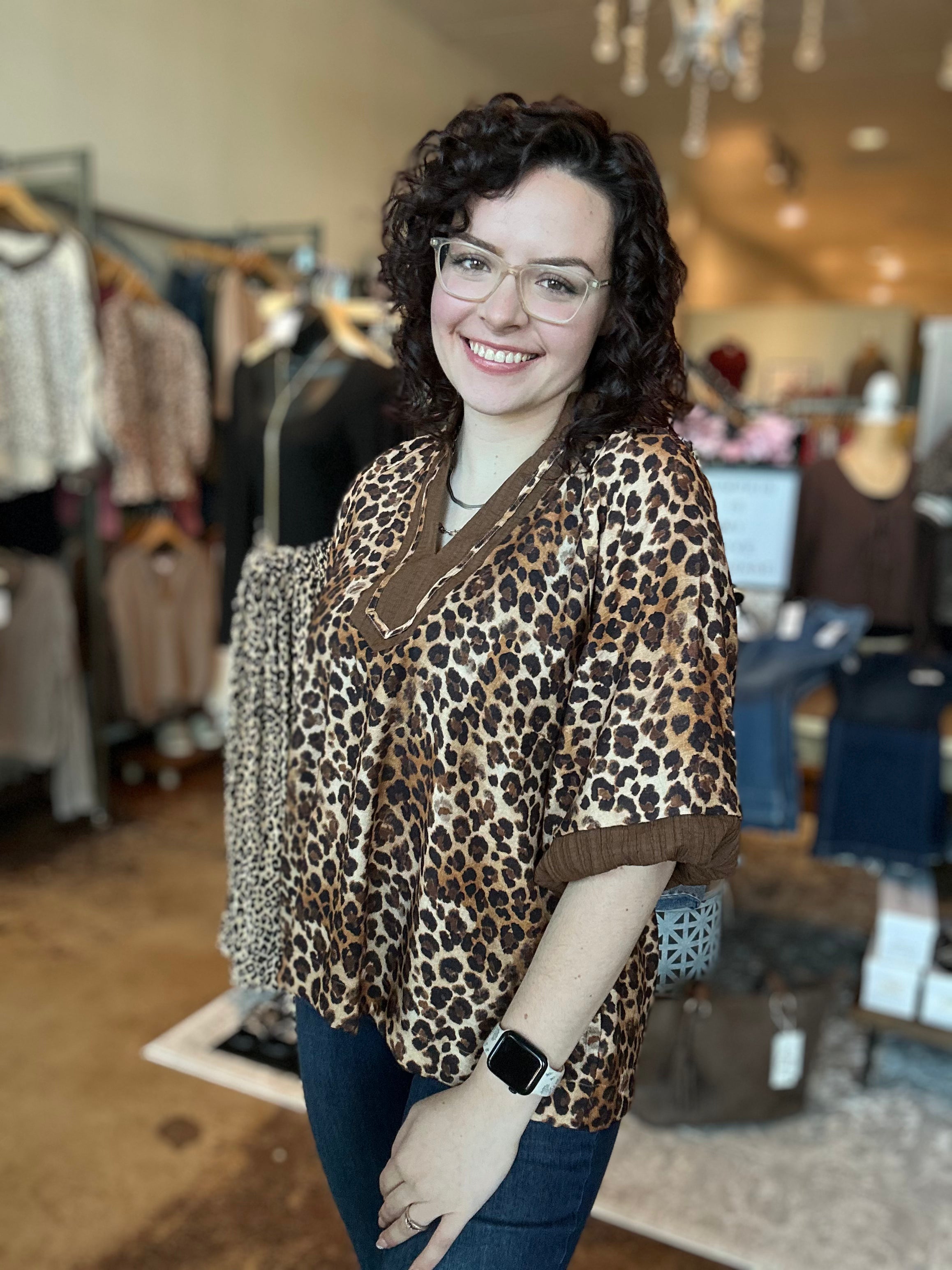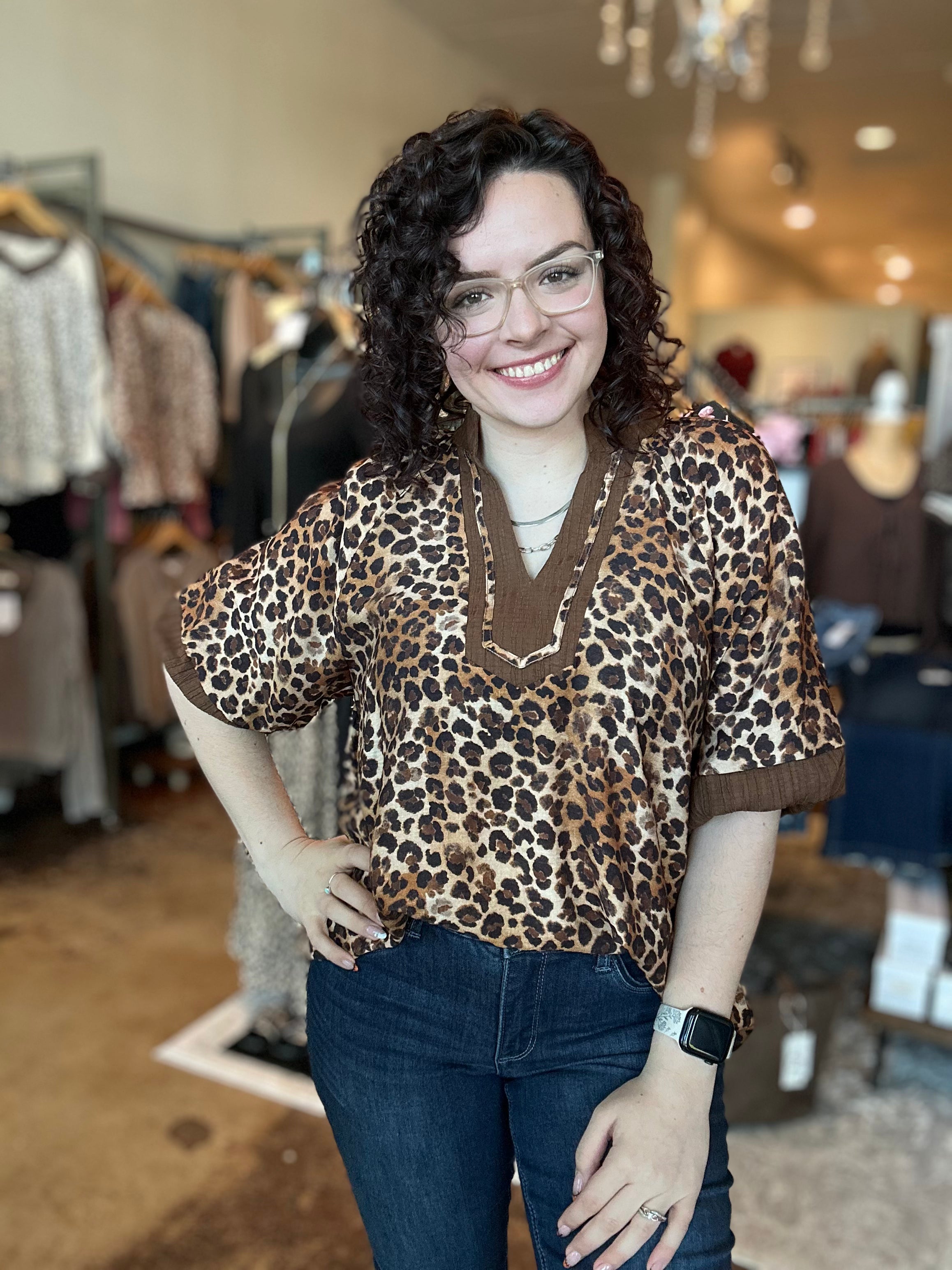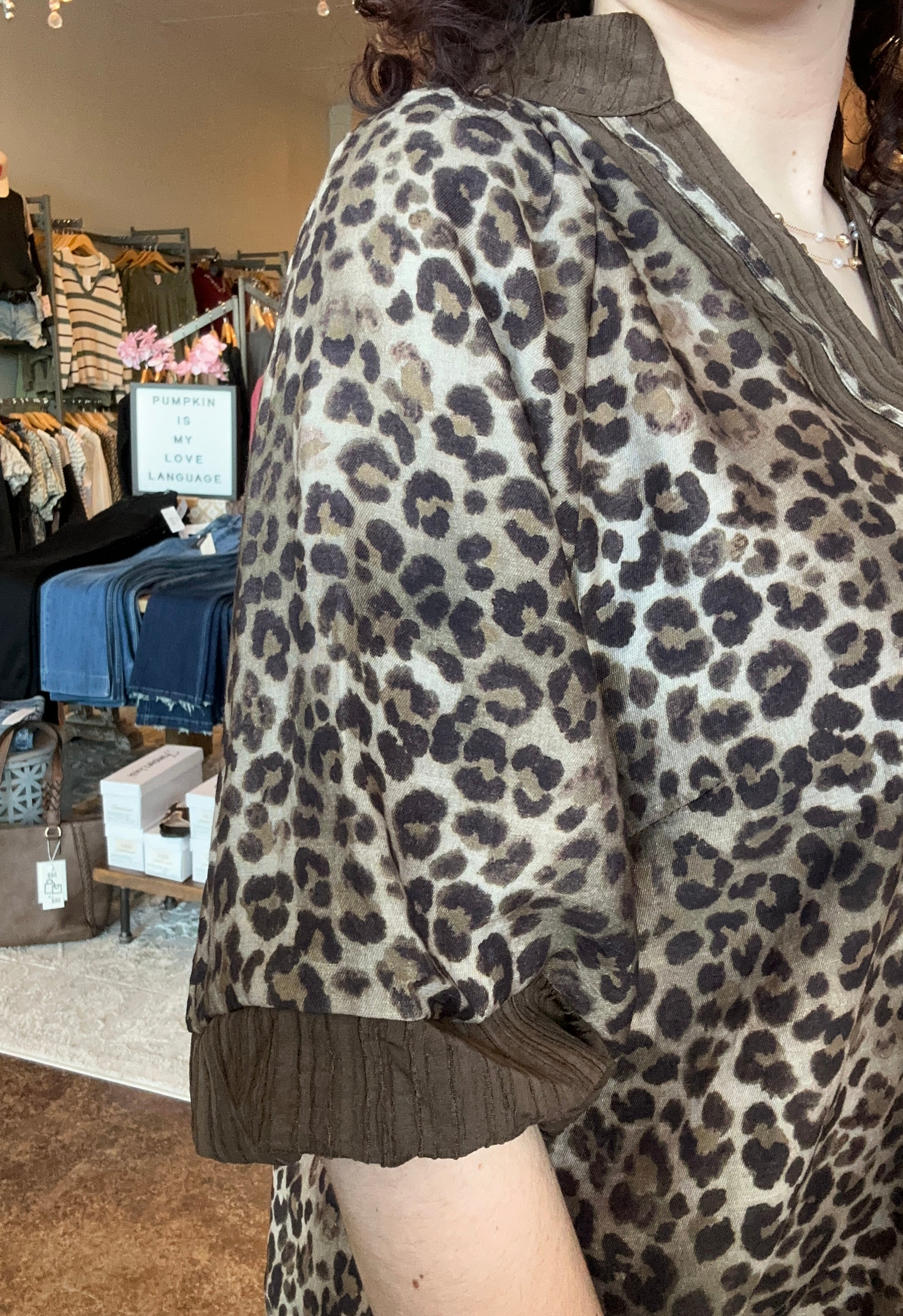 Bubble Sleeve Leopard Print Top