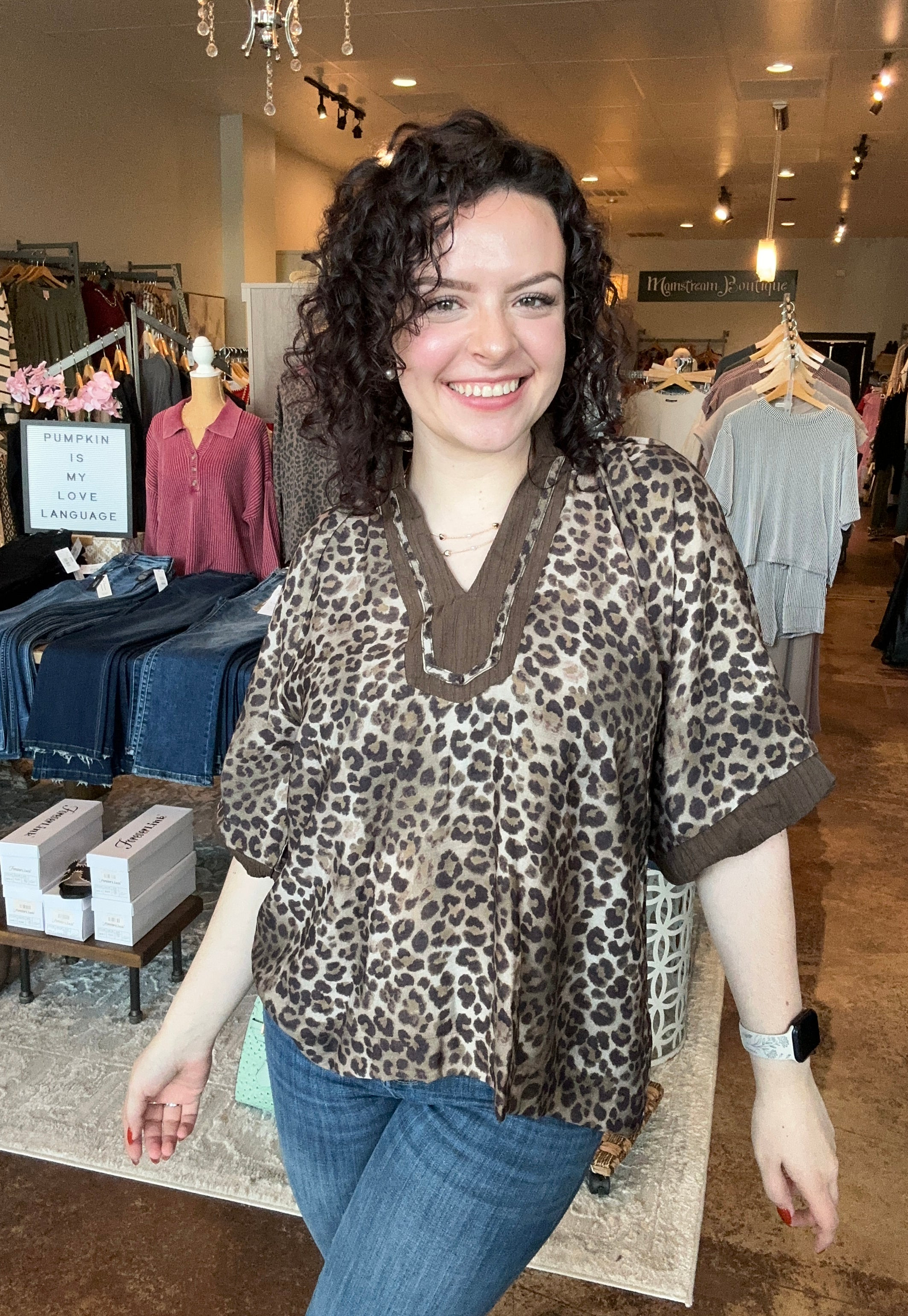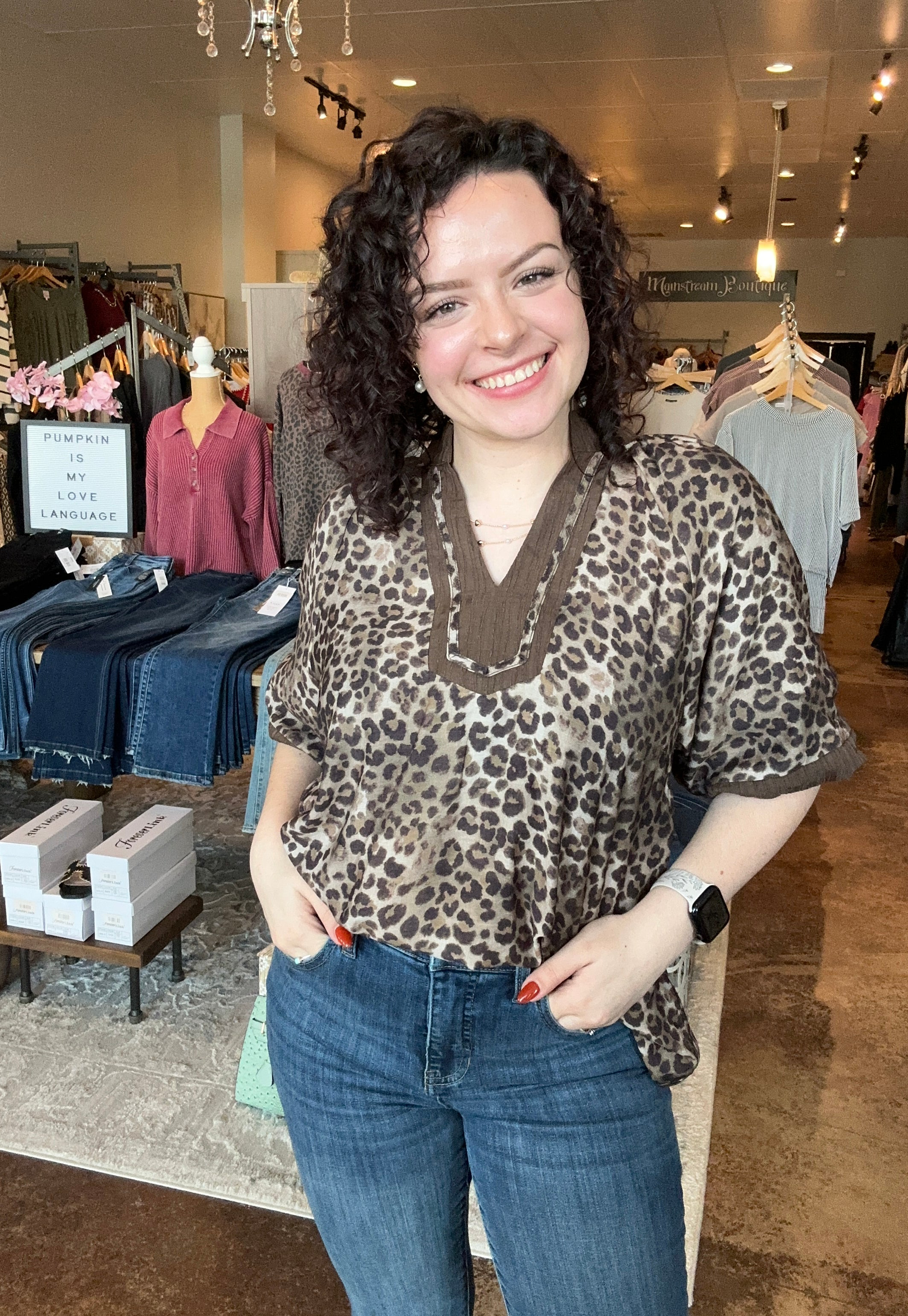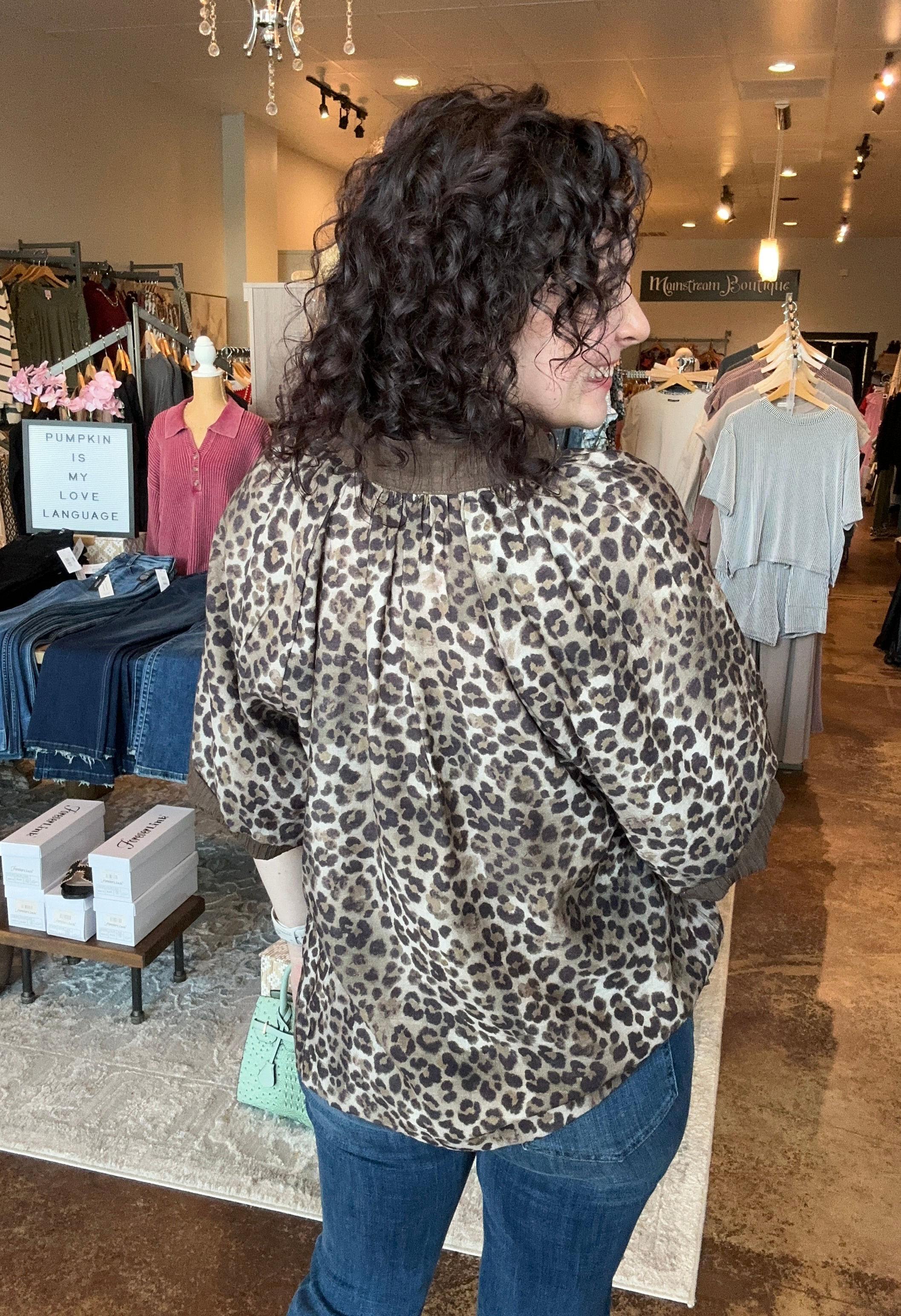 Bubble Sleeve Leopard Print Top