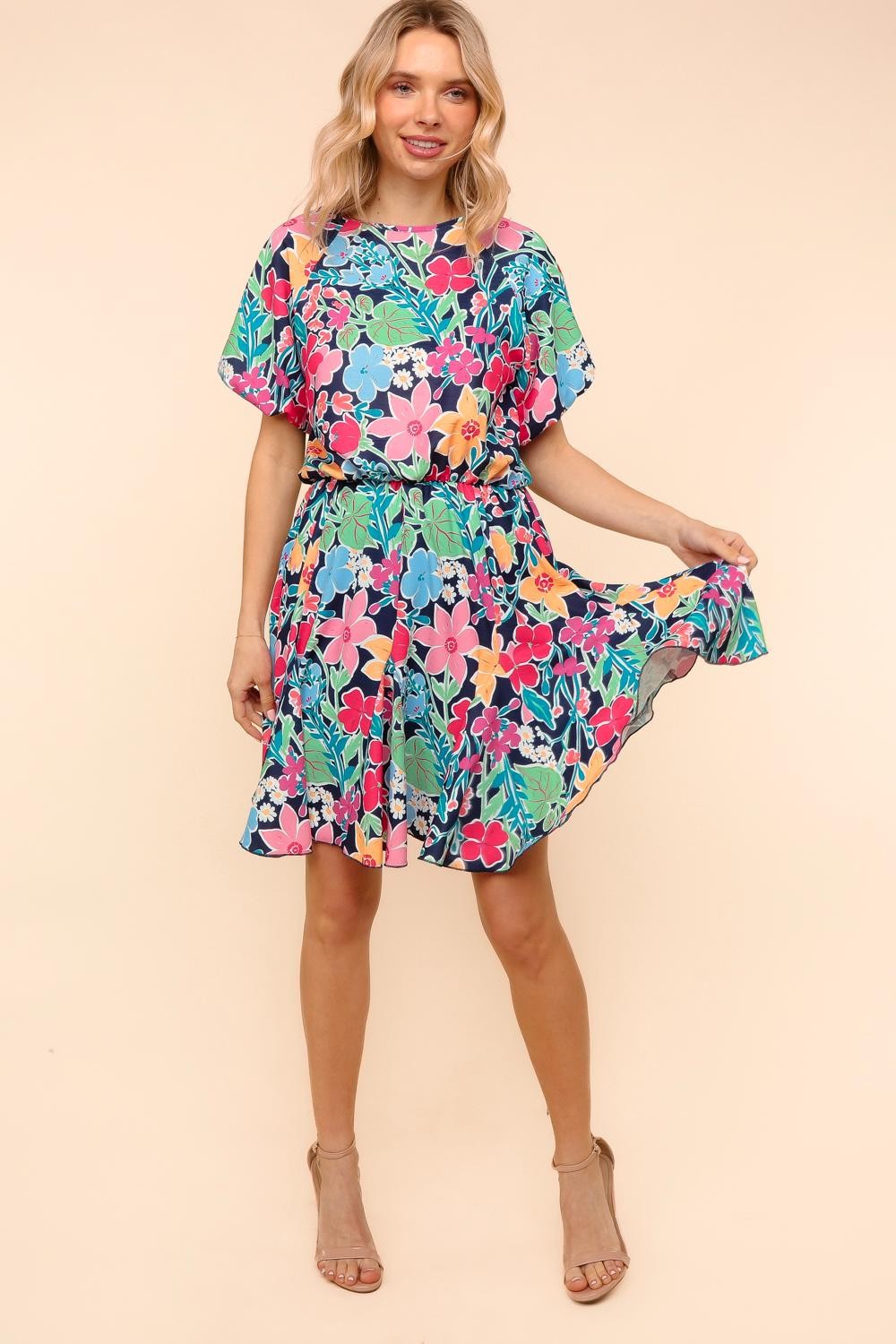 Bubble Short Sleeve Dress W/ Back Button