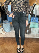 Sleek, sculpting, and endlessly flattering β our Black Tummy Control Skinny Jeans are designed to hug you in all the right places. Featuring a high-rise fit with built-in tummy control technology, these jeans smooth and support for a confident, contoured silhouette. The classic black wash adds a touch of edge and versatility, making them perfect for dressing up with heels or keeping it casual with sneakers. With just the right amount of stretch, they move with you while holding their shape wear after wear.