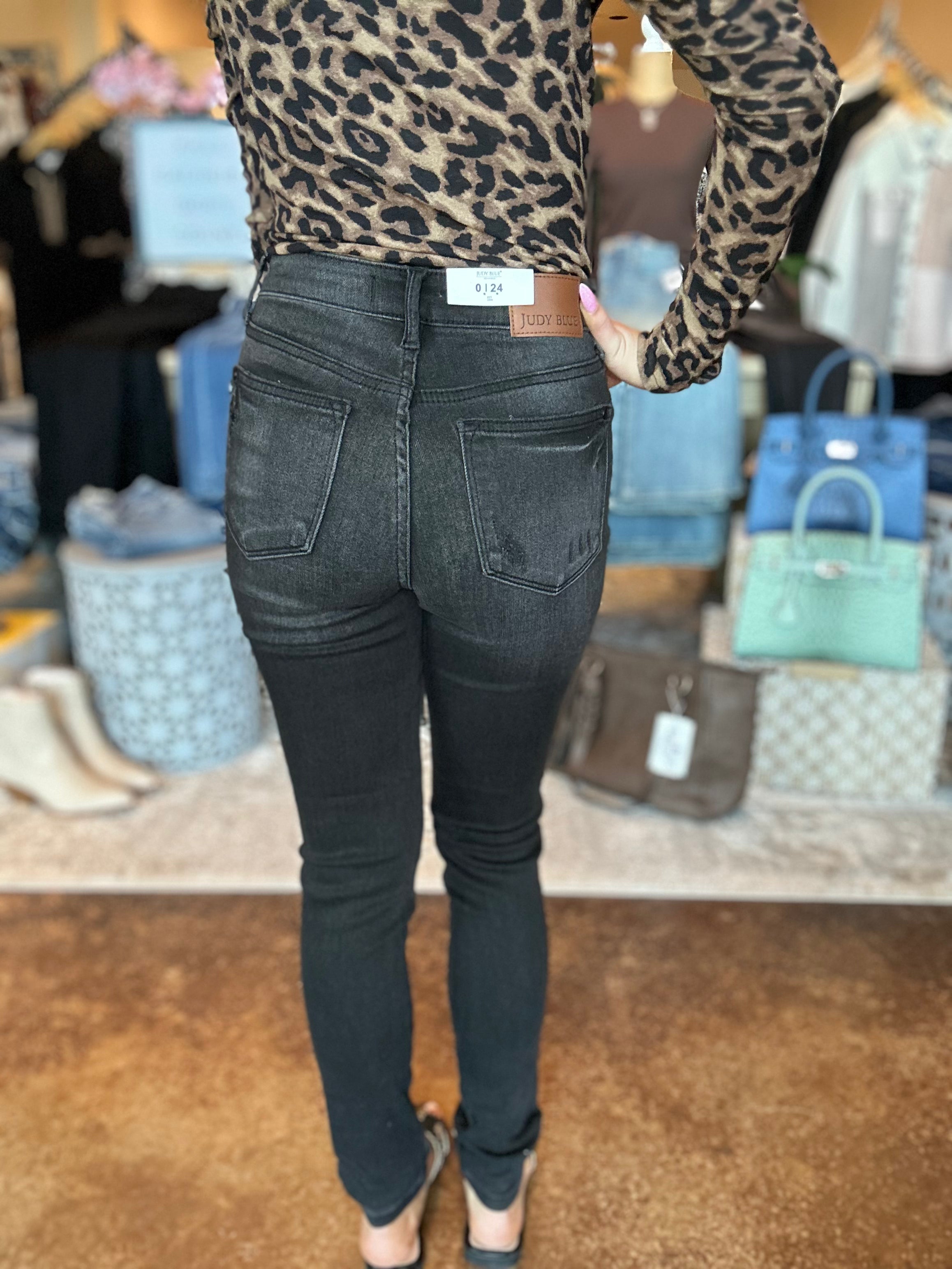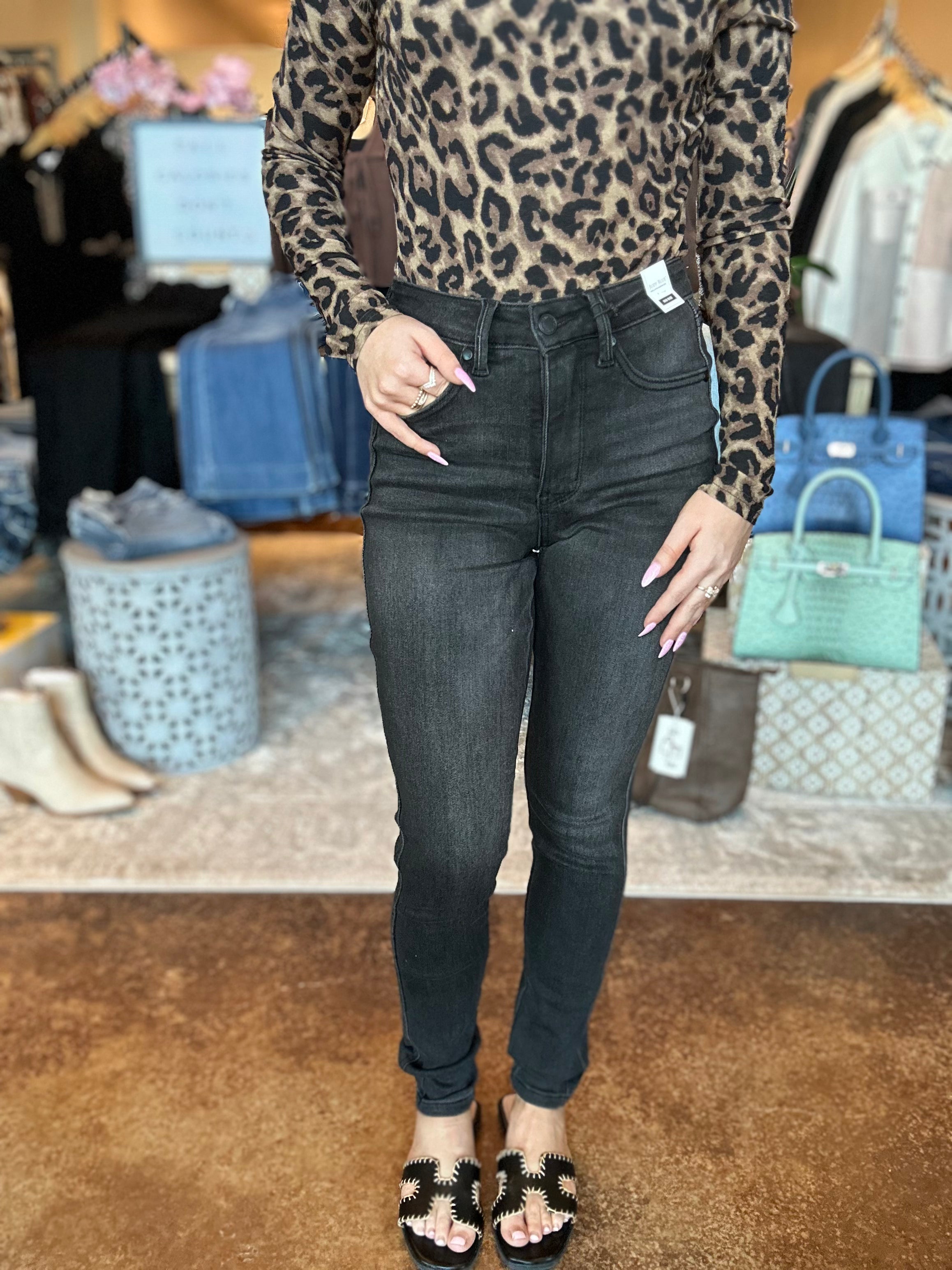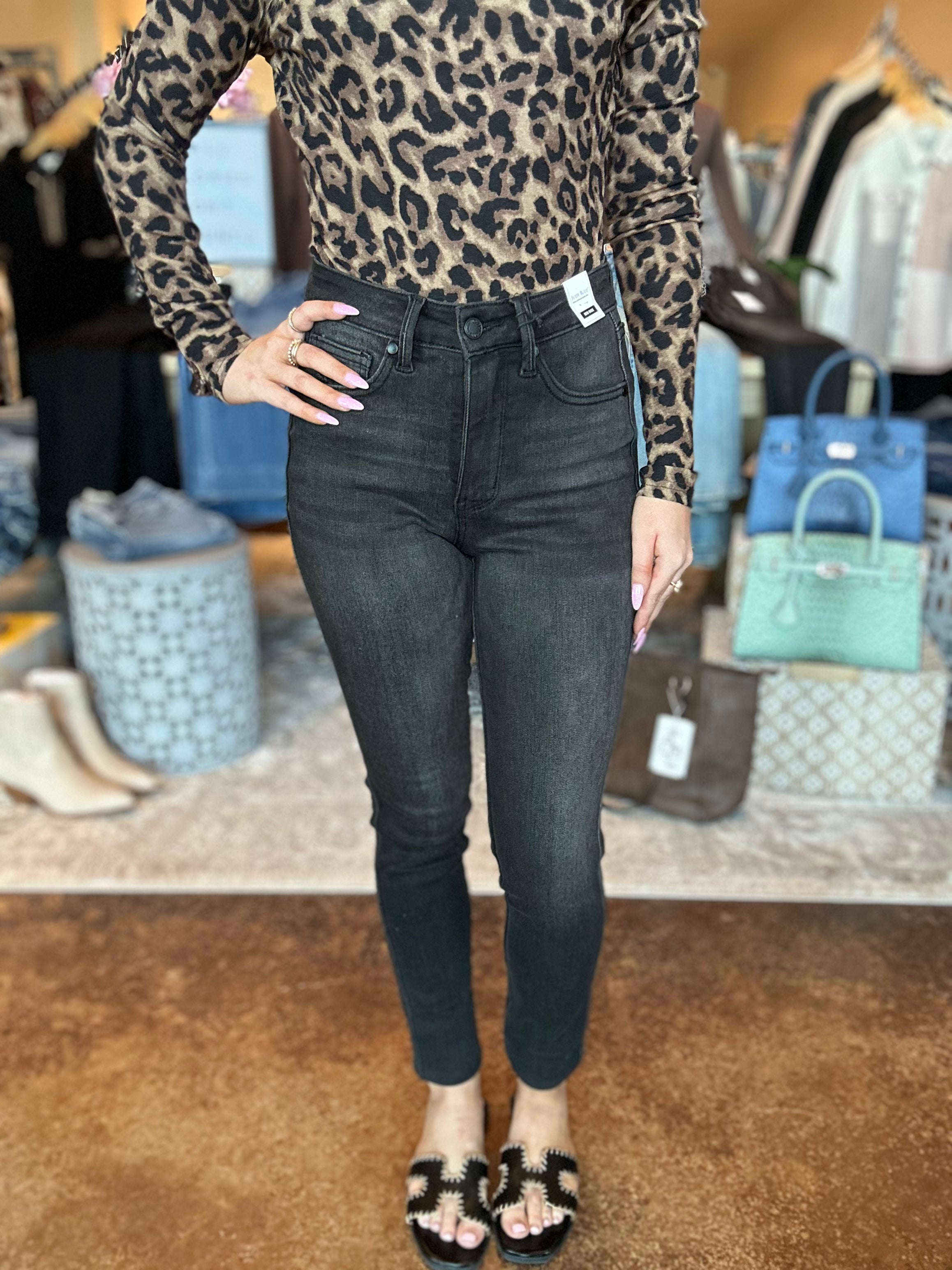 Sleek, sculpting, and endlessly flattering β€” our Black Tummy Control Skinny Jeans are designed to hug you in all the right places. Featuring a high-rise fit with built-in tummy control technology, these jeans smooth and support for a confident, contoured silhouette. The classic black wash adds a touch of edge and versatility, making them perfect for dressing up with heels or keeping it casual with sneakers. With just the right amount of stretch, they move with you while holding their shape wear after wear.