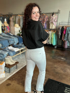 The Slimming Kick Flare With Double Layer Fray Hem are your new denim obsession—designed to flatter with a smoothing waistband and curve-hugging stretch. The real star? That double-layer fray hem that adds just the right amount of edge. Cropped to perfection and ready to pair with everything from sneakers to heels, these jeans bring the sass with zero effort.