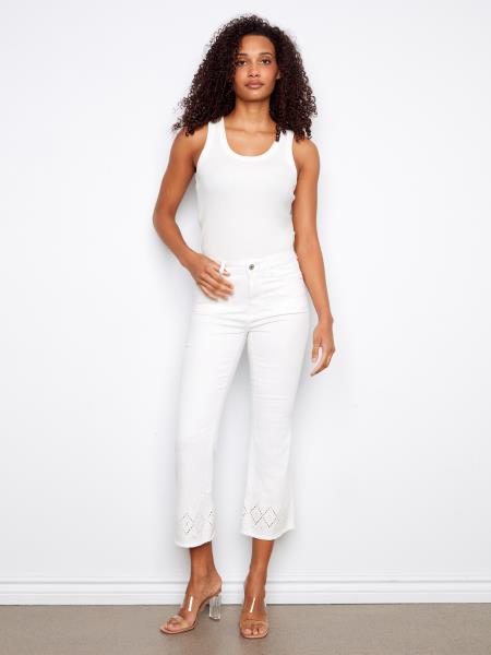 Ring Spun Denim Flare Leg Pant W/ Zigzag Embroidery At Hem