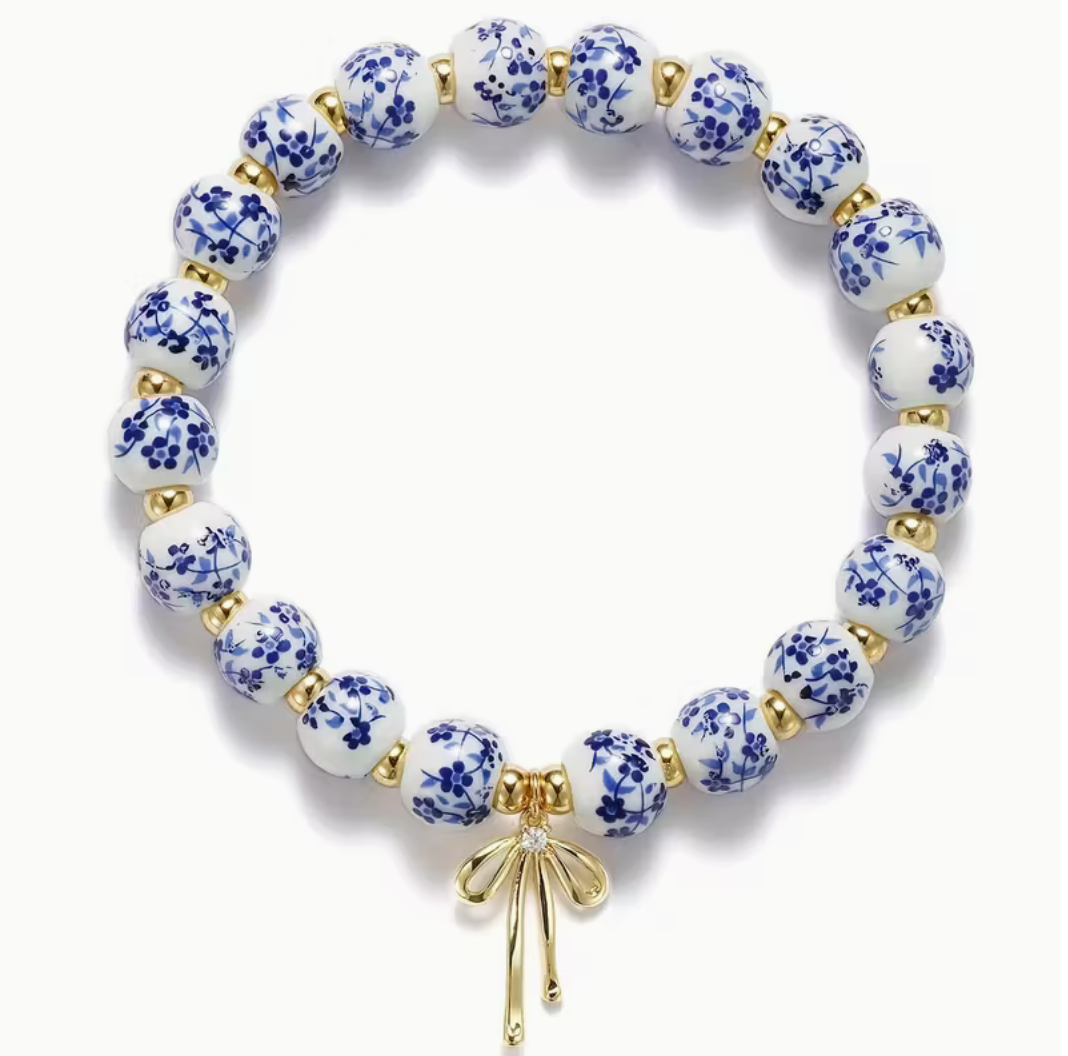 Ceramic Beaded Stretch Bracelet With Bow Charm
