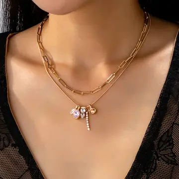 Crystal Cluster Charm Double-Layer Necklace