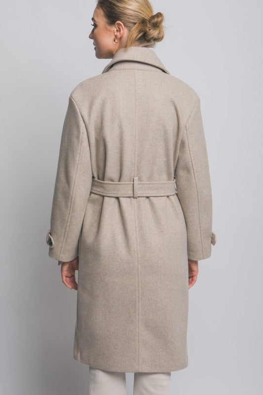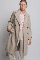 Elevate your outerwear game with our timeless double-breasted Belted Wrap Coat, designed for both sophistication and comfort. Featuring a classic lapel collar, functional side pockets, and a tie-front belt with button closure, this coat delivers effortless elegance with a relaxed fit that layers beautifully over any outfit. Whether you're heading to the office or out for evening plans, this versatile piece adds a refined, polished touch to your cold-weather wardrobe.