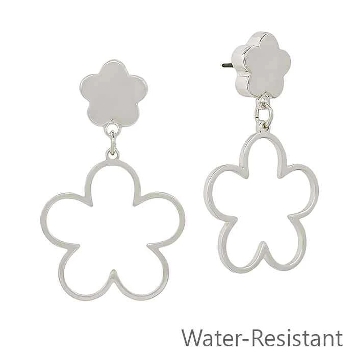 Delicate elegance meets practical wear in our Flower Drop Earrings. Featuring dainty flower motifs, these post-back earrings offer graceful movement and understated charm. Their water‑resistant finish ensures a long-lasting sparkle, ideal for styling through rain showers, workouts, or seaside strolls without worry. Lightweight and thoughtfully sized at 1.5 inches, they’re the kind of effortless statement piece that can elevate everyday looks or complement dressed-up moments.