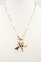Gold Chain Necklace With Key, Lock, Heart Charms