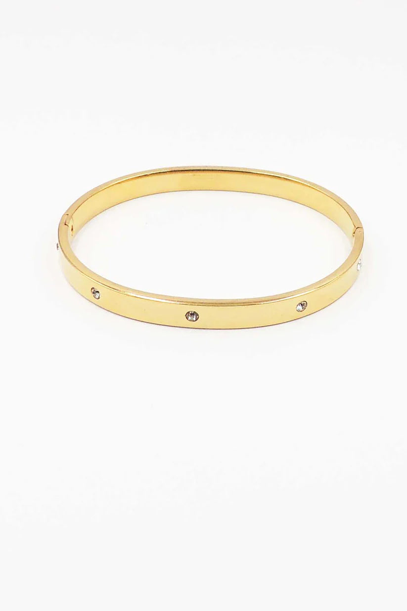 Gold Cuff Bangle With Rhinestone Accents