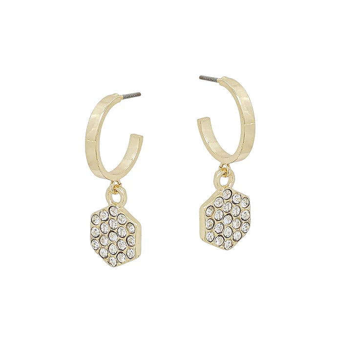 Gold Huggie Earrings With Rhinestone Dangle Detail