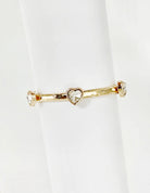Gold Textured Stretch Bracelet With Crystal Hearts
