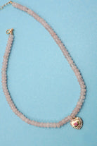 Add a playful pop of color and charm to your jewelry collection with our Semi-Precious Stone Beaded Charm Necklace. Featuring beautifully strung semi-precious stone beads in vibrant, pastel hues, each necklace is accented with a unique gold-tone charm — from delicate bows to sparkling hearts and crosses. Whether worn solo or layered, these pieces bring a touch of whimsy and elegance to any outfit. Perfect for gifting or keeping, they’re your go-to accessory for effortless, everyday sparkle.