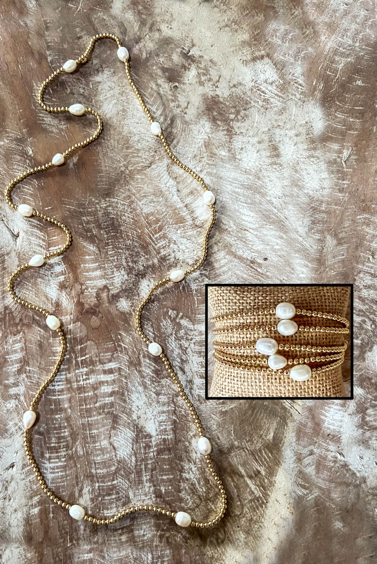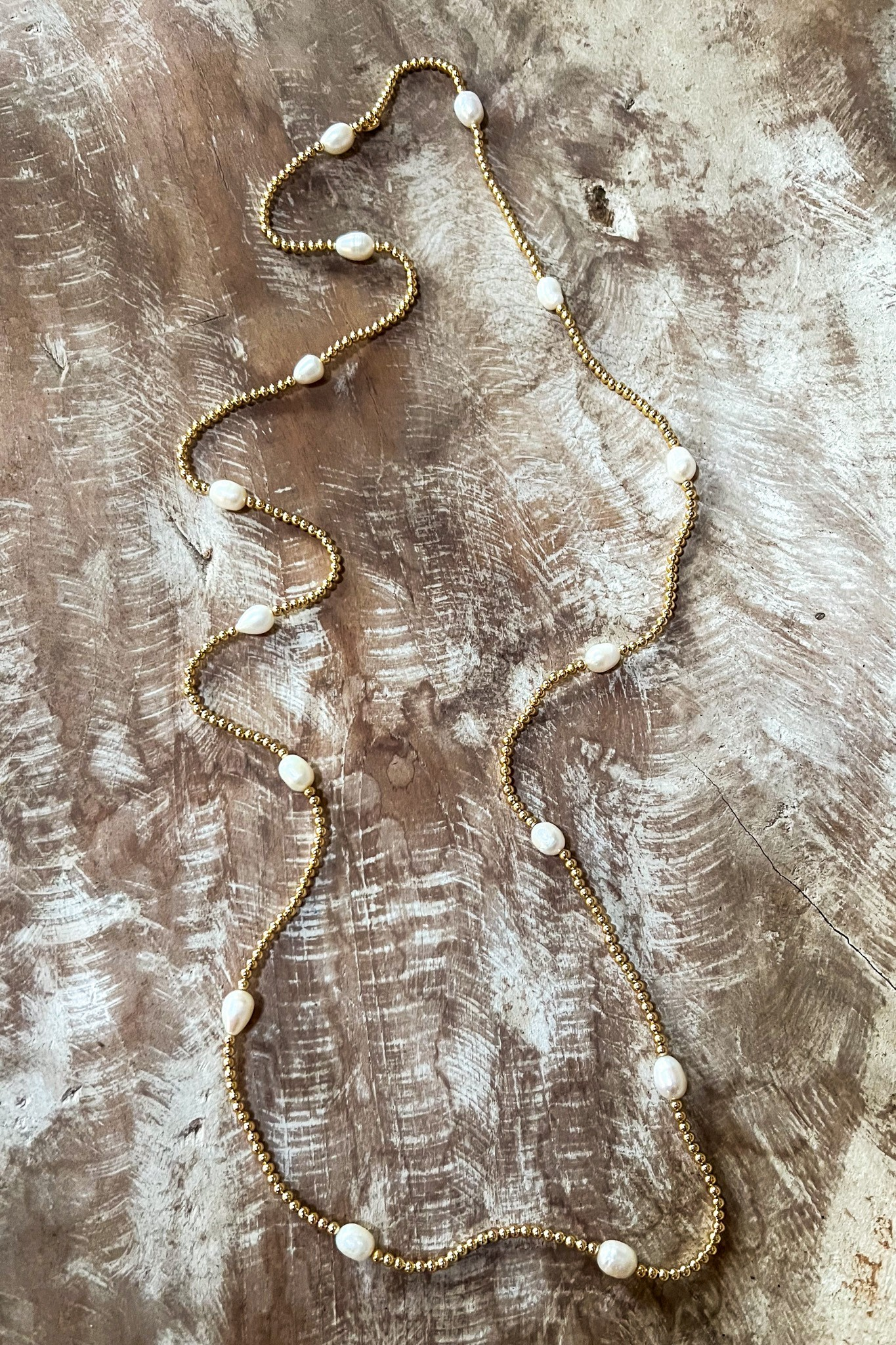Bella Lariat with Freshwater Necklace Pearls 24"