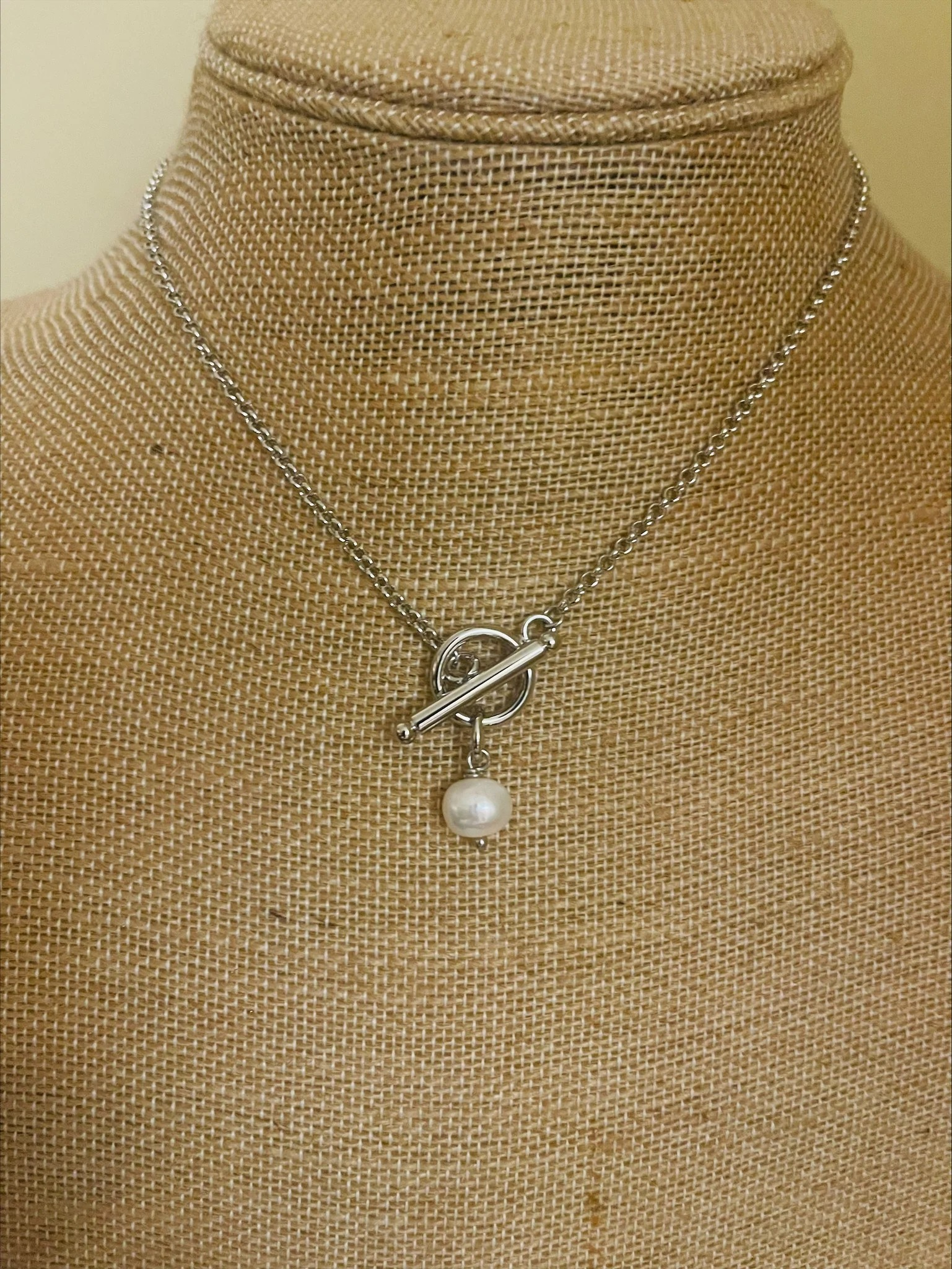 Mac and Me Freshwater Pearl Link Chain Toggle Necklace