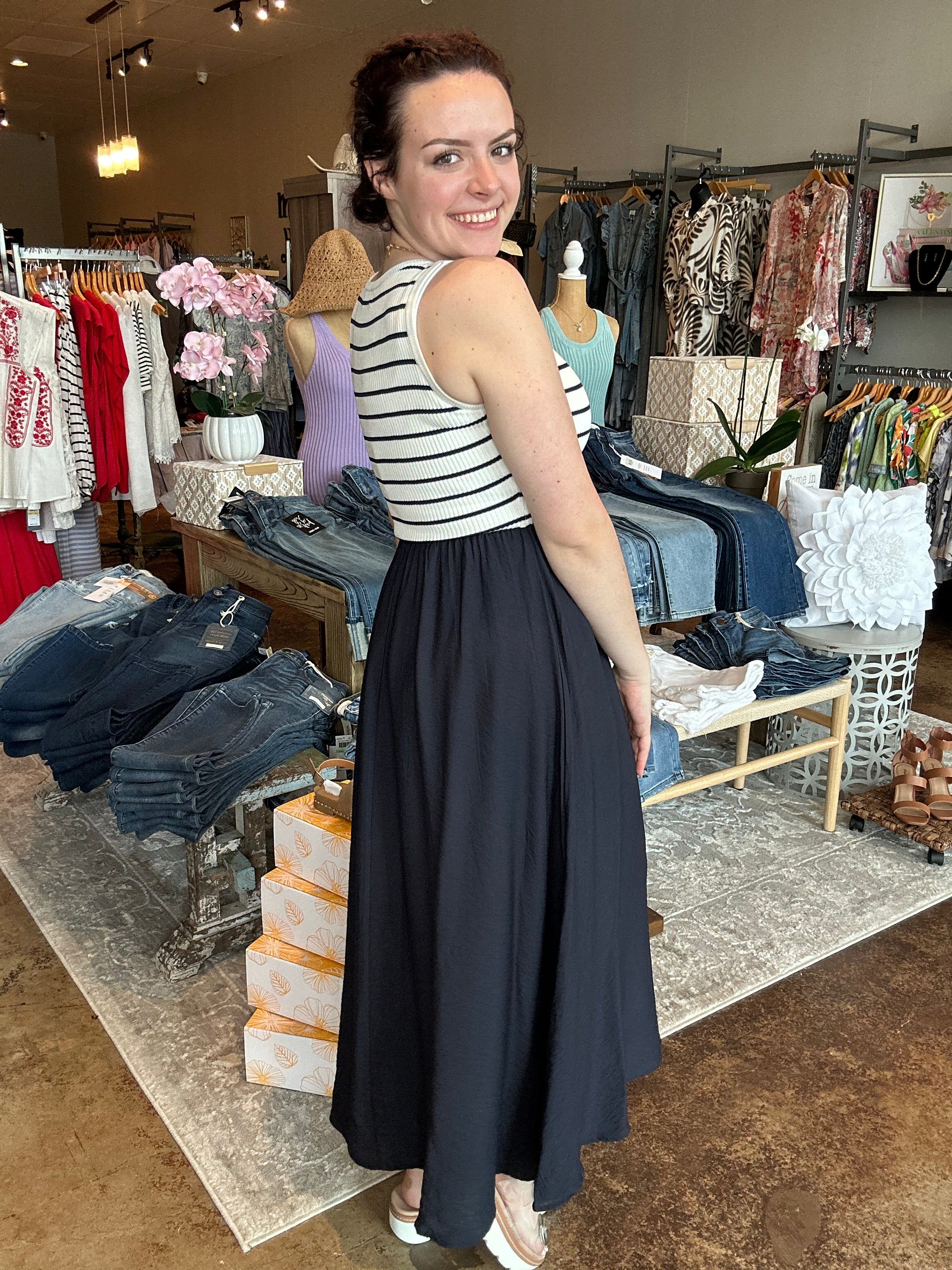 Stripe Tank Sleeveless Mixed Media Dress