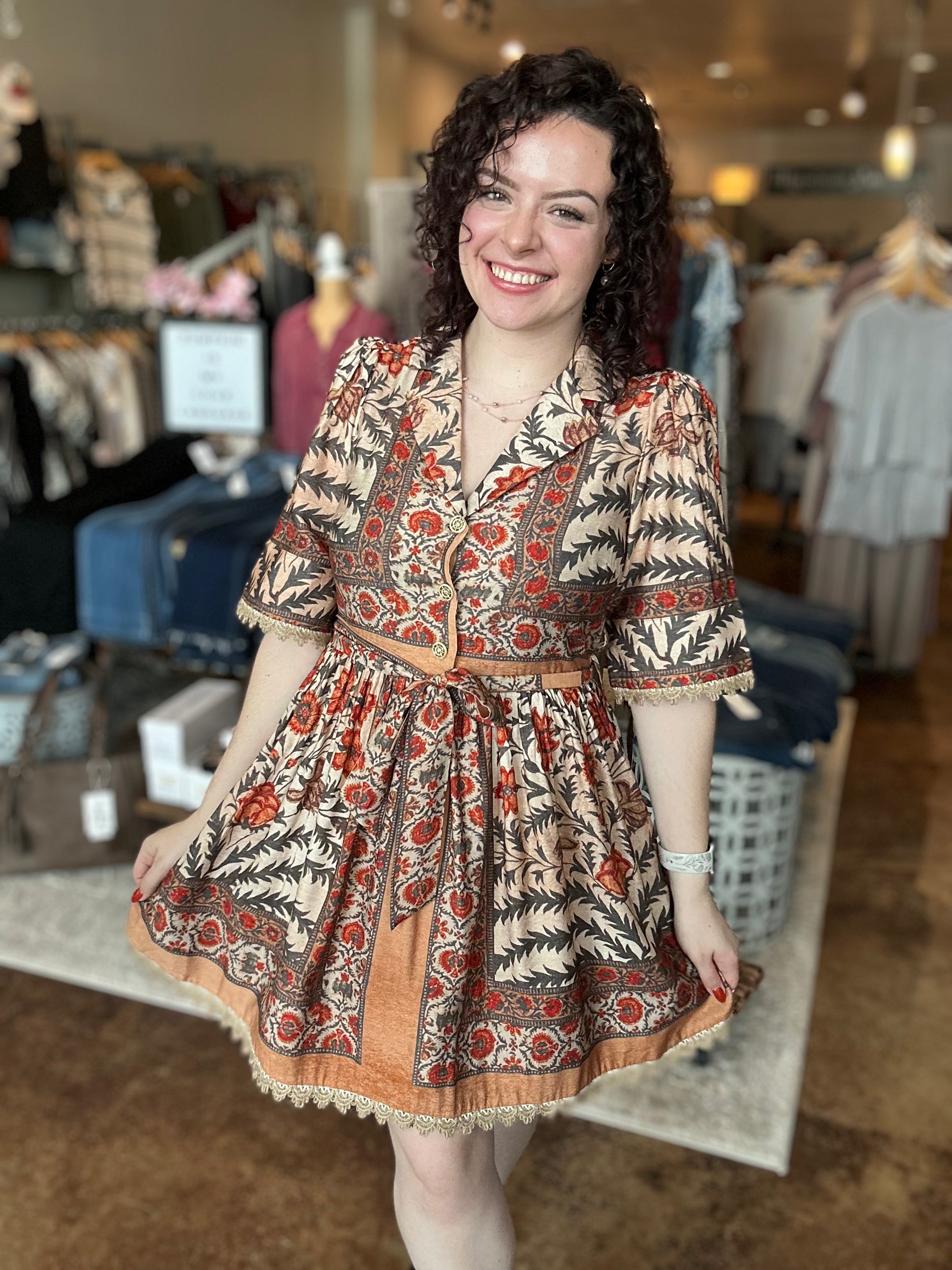 Turn heads in this romantic Botanical Print Puff Sleeve Dress. Designed with short puff sleeves, this piece blends vintage charm with modern femininity. The contrast trim and decorative button front closure add a tailored touch, while the elasticated back waist ensures a flattering and comfortable fit.