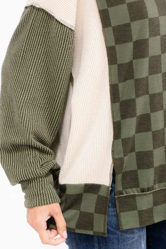 Checkered Color Block Pullover