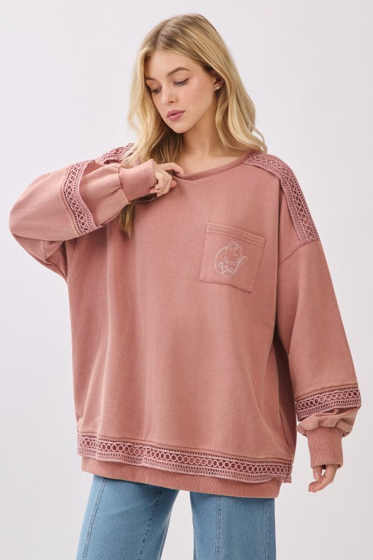 Saddle up in style with this charming mineral wash top, featuring an adorable embroidered cowboy hat pocket detail. The dusty mauve hue offers a soft, versatile shade that pairs effortlessly with your favorite denim or neutrals. Crafted with a relaxed fit and textured mineral wash finish, this piece brings Western-inspired flair to your everyday wardrobe. Perfect for casual outings, weekend adventures, or layering under your favorite jacket. A must-have for anyone who loves boho-chic vibes with a playful twist.