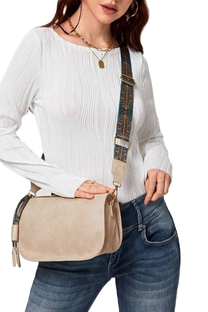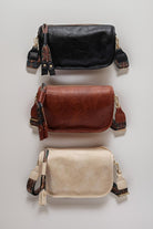 Add a touch of charm to your everyday look with this faux leather crossbody featuring a bold, patterned guitar strap. Designed with a sleek silhouette and versatile size, it's the perfect balance of fashion and function. Whether worn for a casual day out or dressed up for an evening look, this bag keeps your essentials close while making a stylish statement.