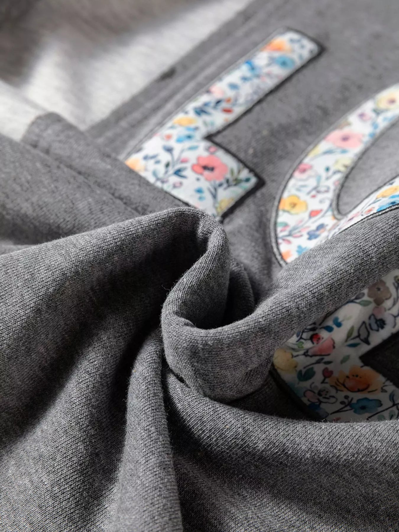 LOVE Graphic Exposed Seam Patchwork Uneven Hem Chic Sweatshirt