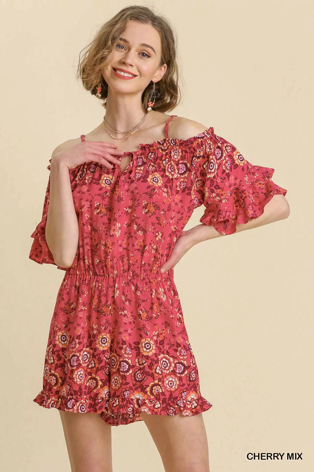 Mixed Floral Border Print Romper
