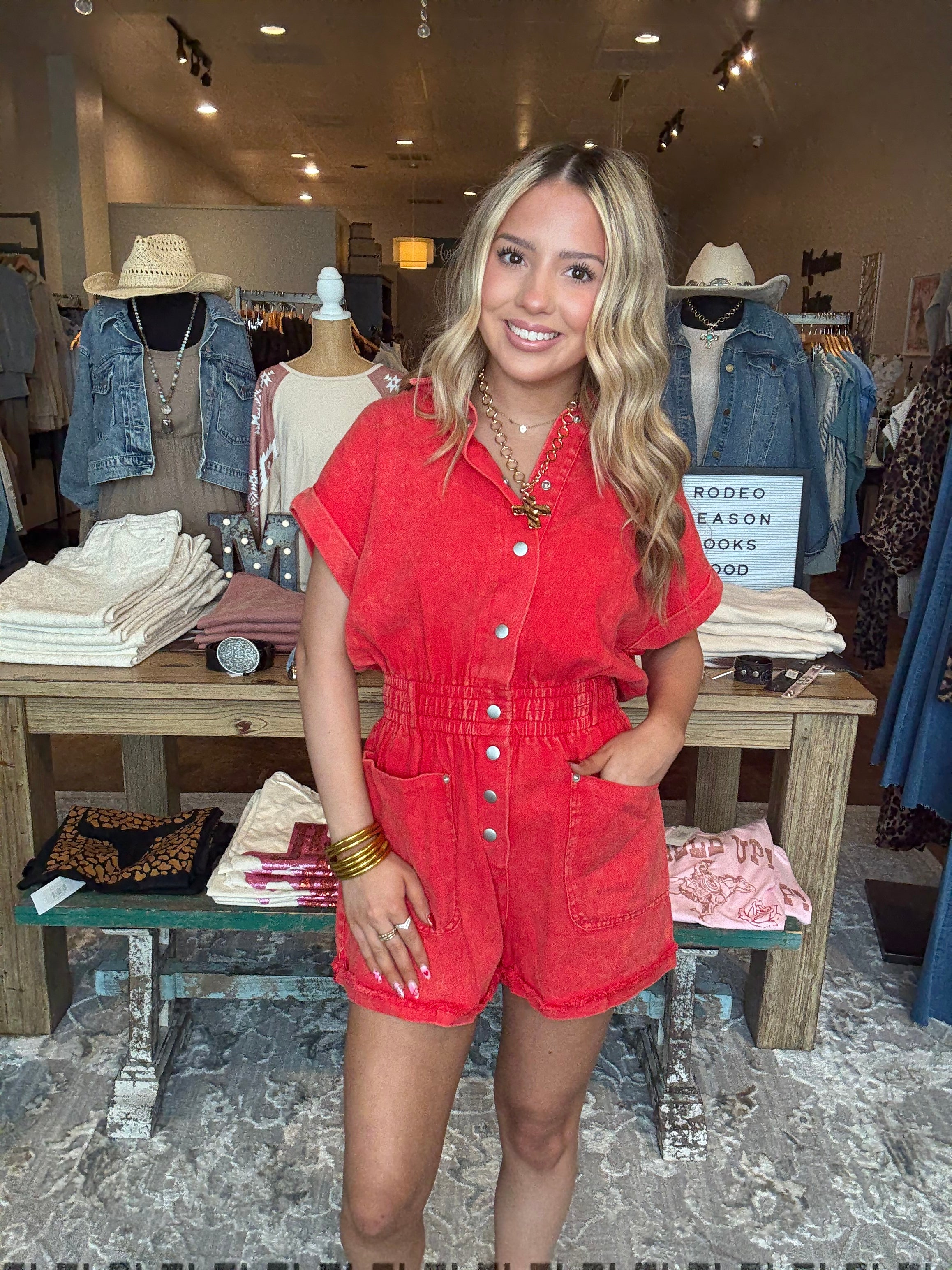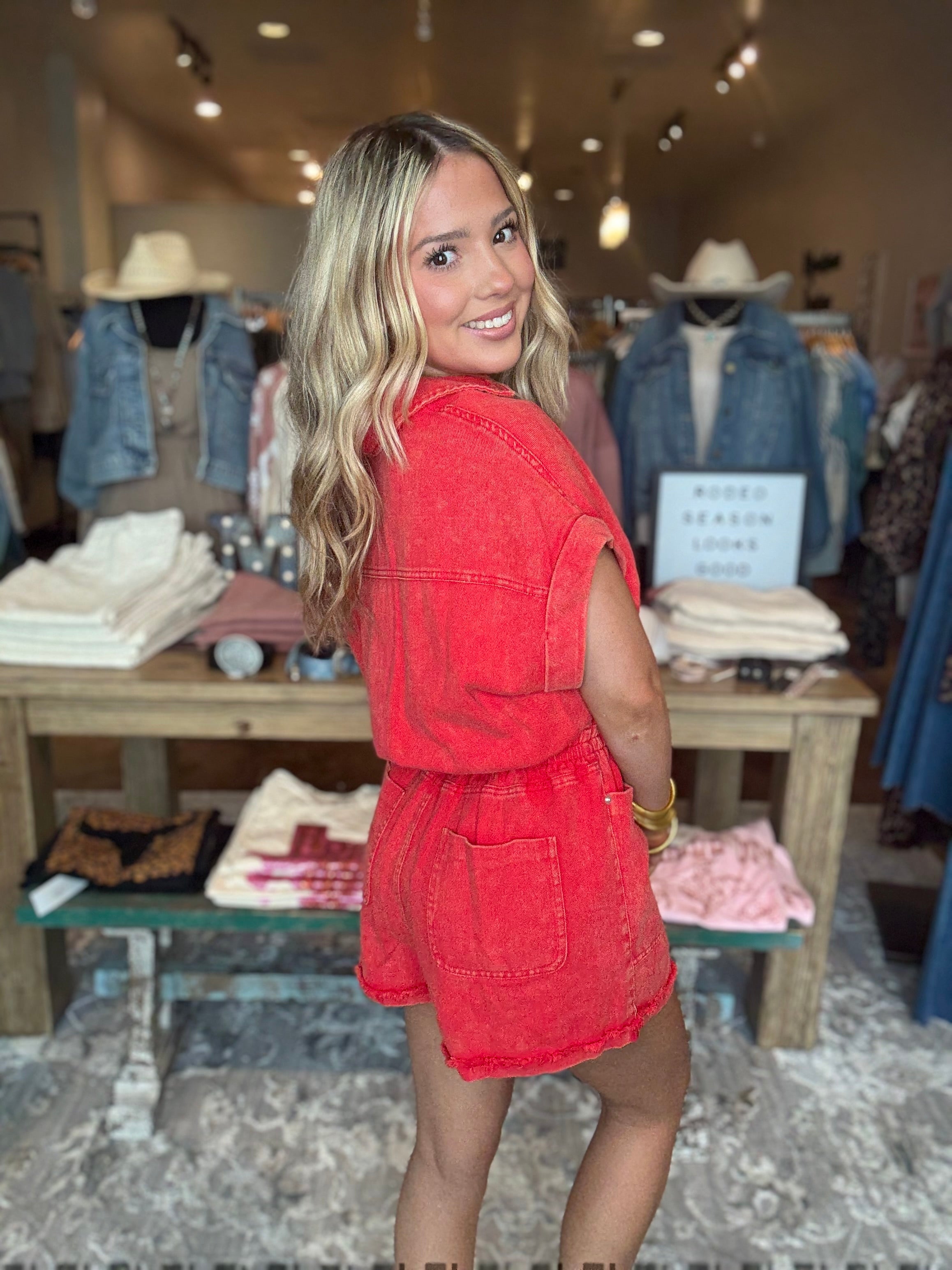 Mineral Washed Button Down Denim Romper