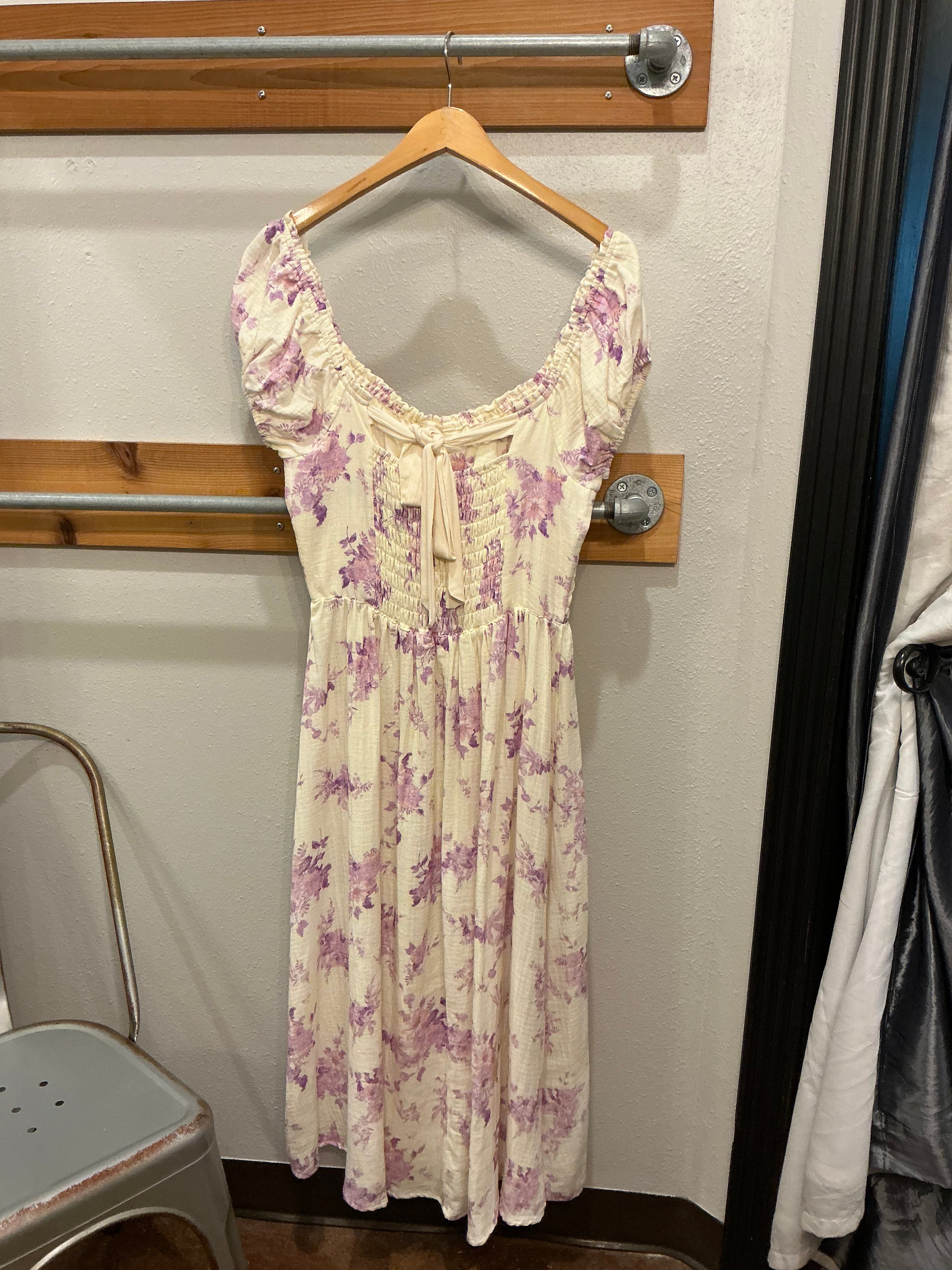 Waffle Knit Tiered Top With Lace Shoulder Ribbon Tie