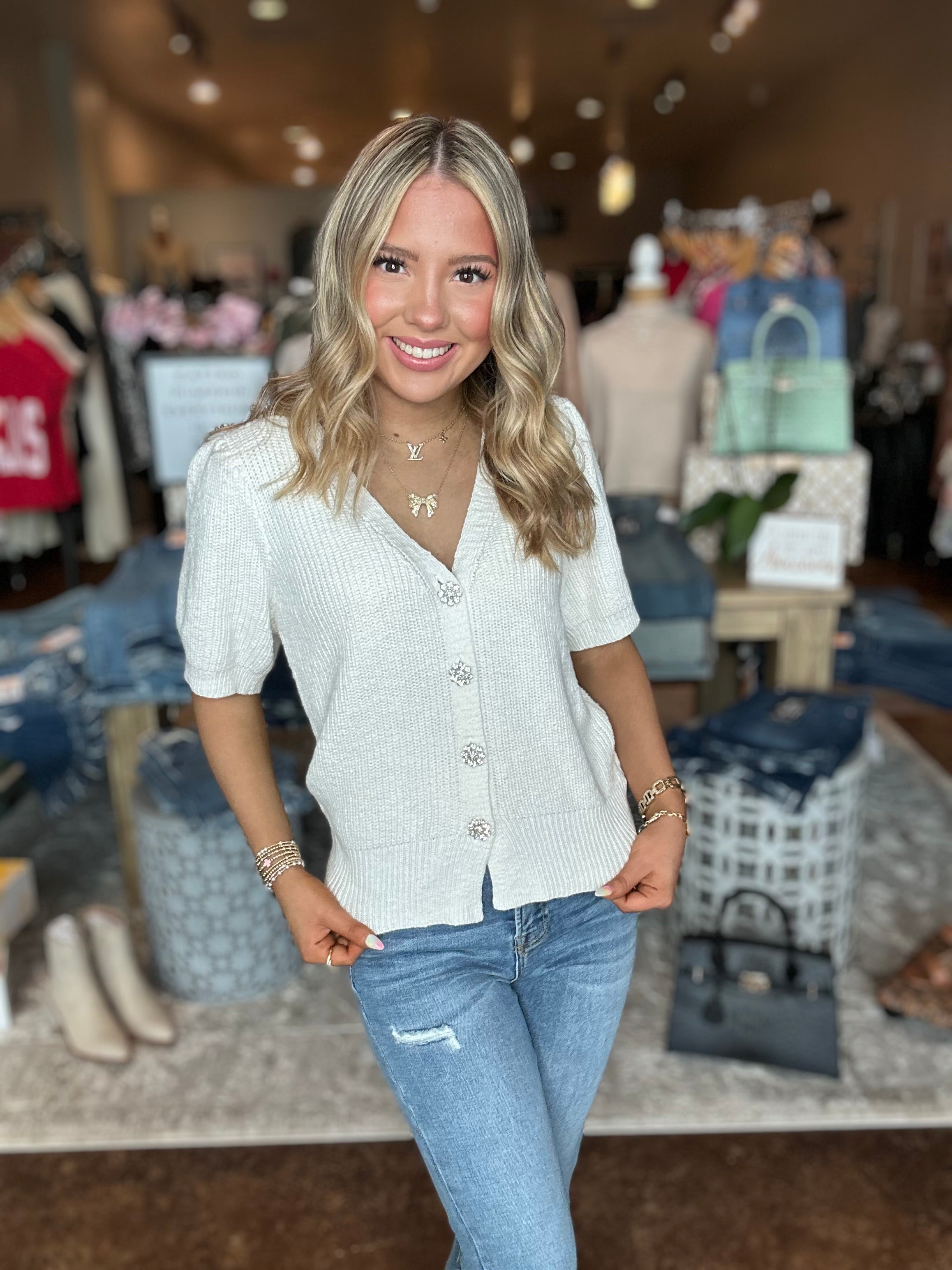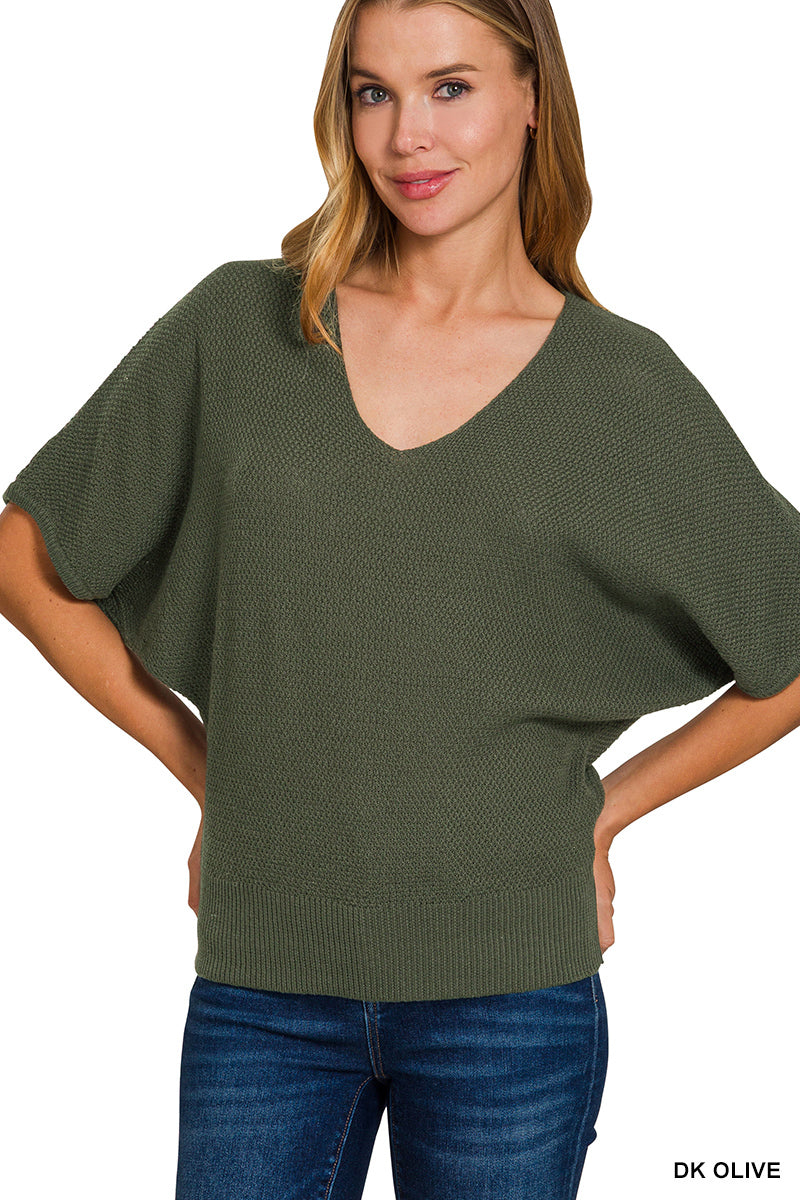 V-Neck Short Sleeve Sweater