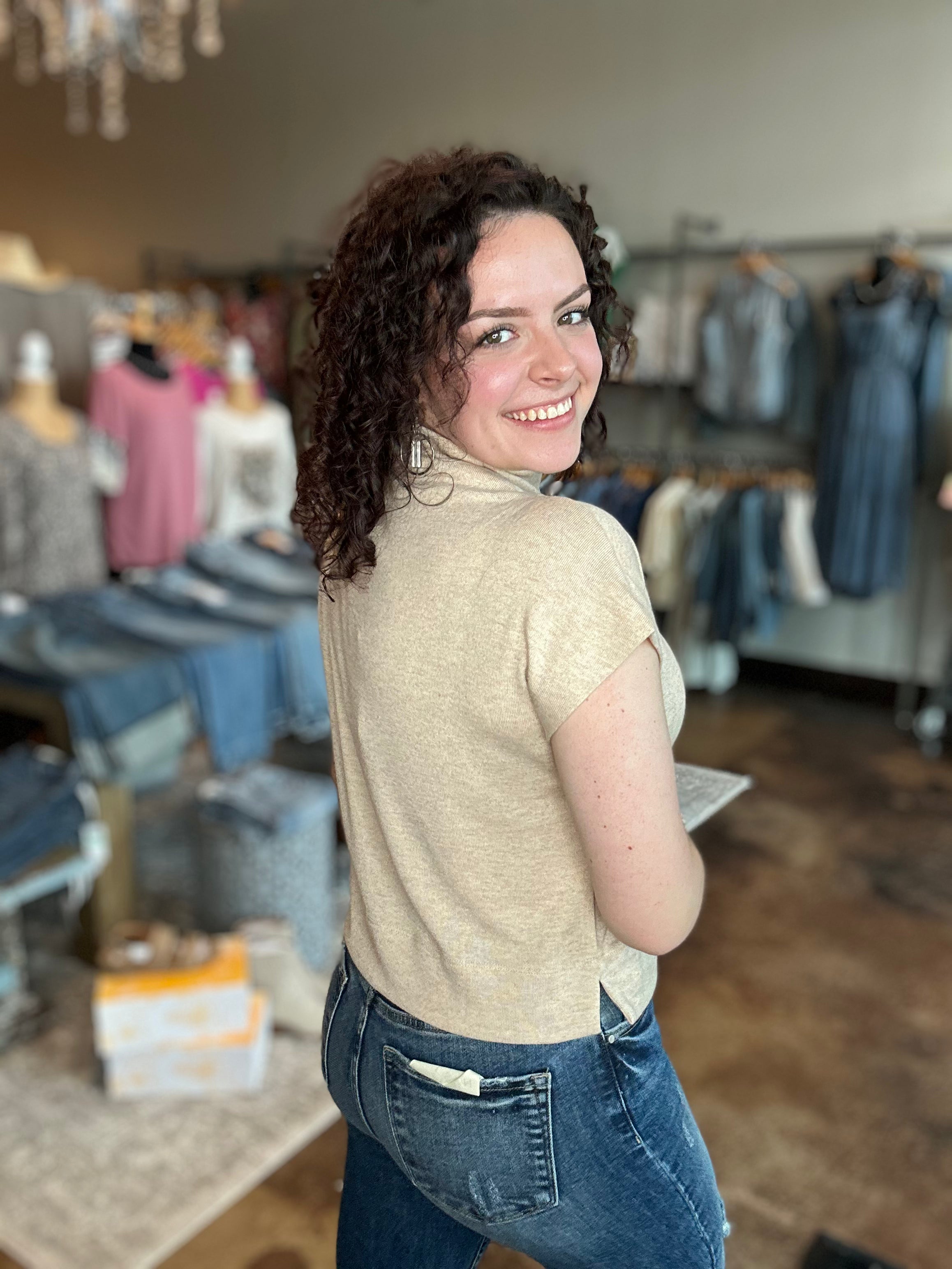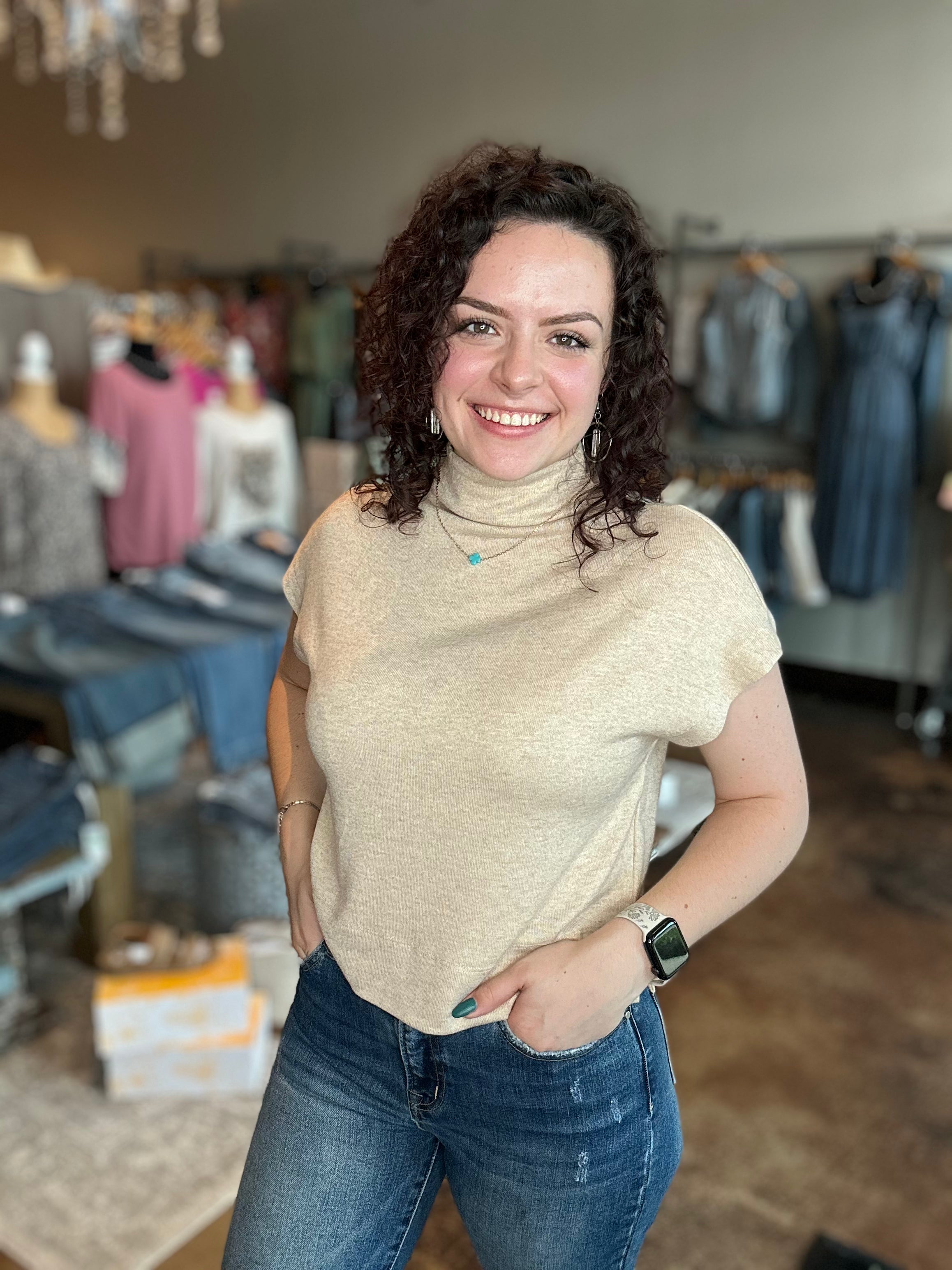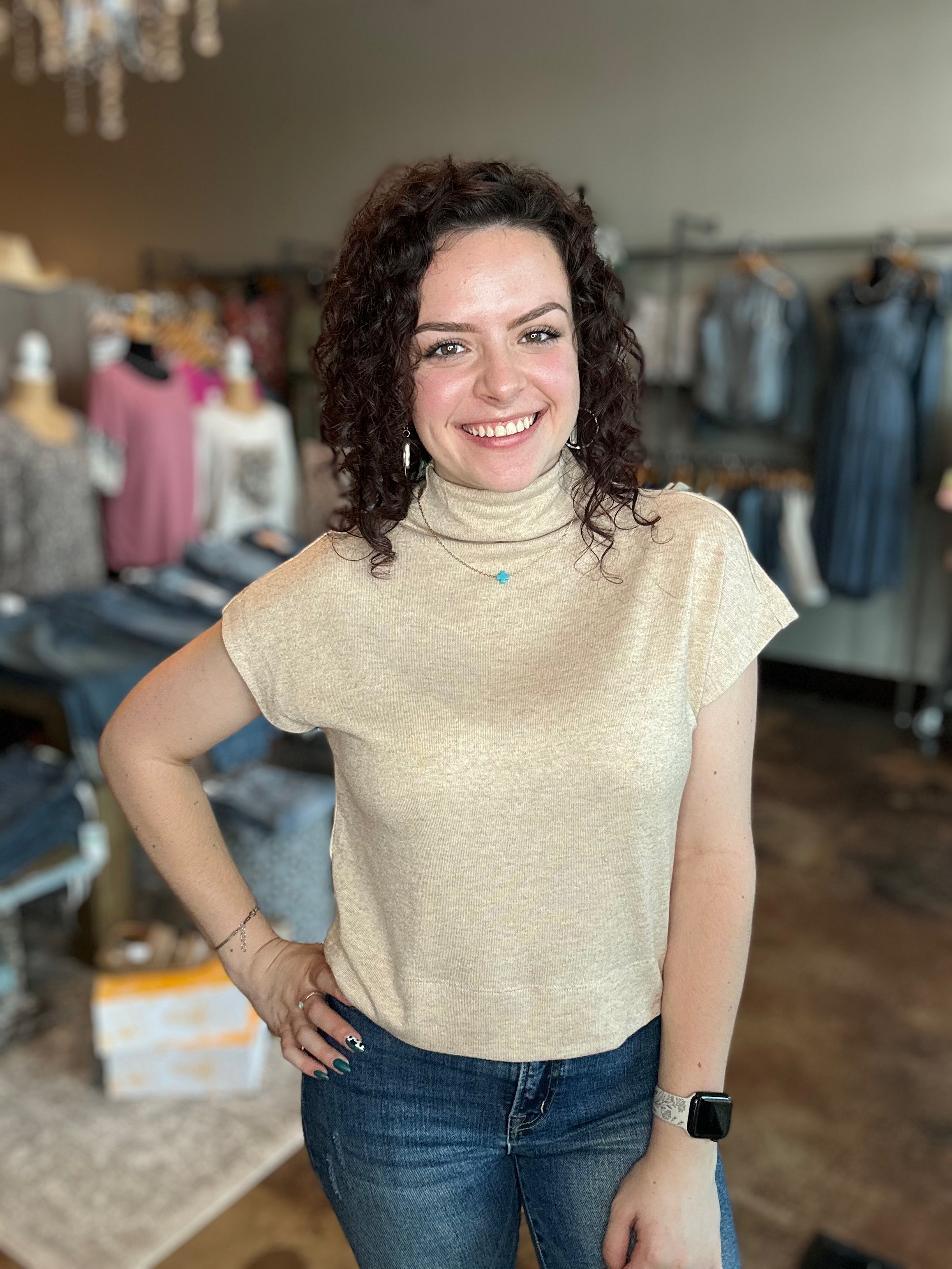 Cap Sleeve Mock Neck Knit Top