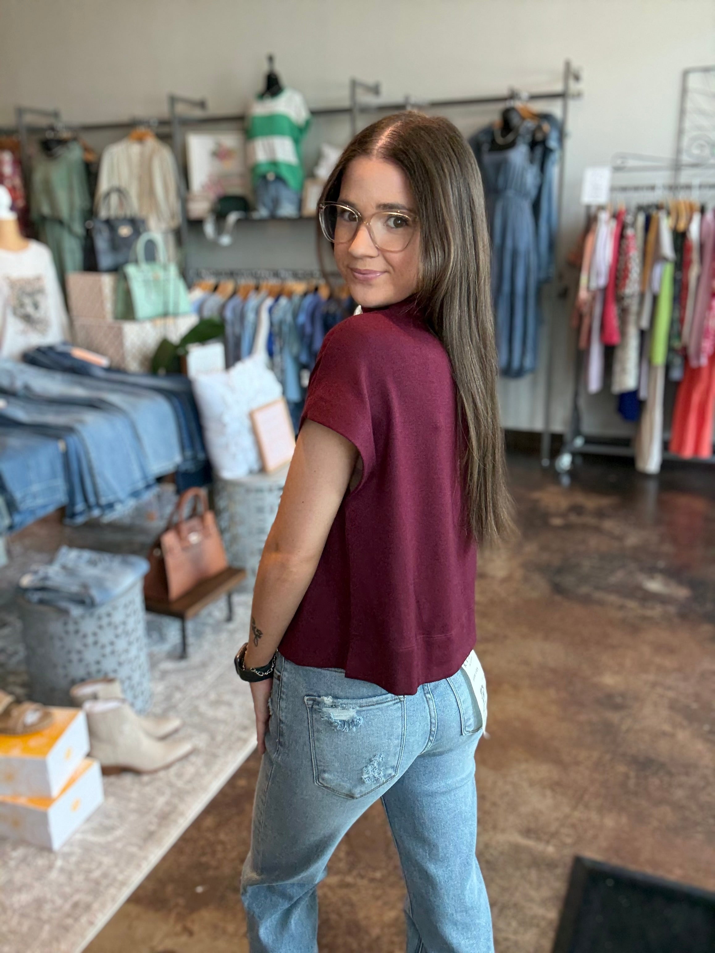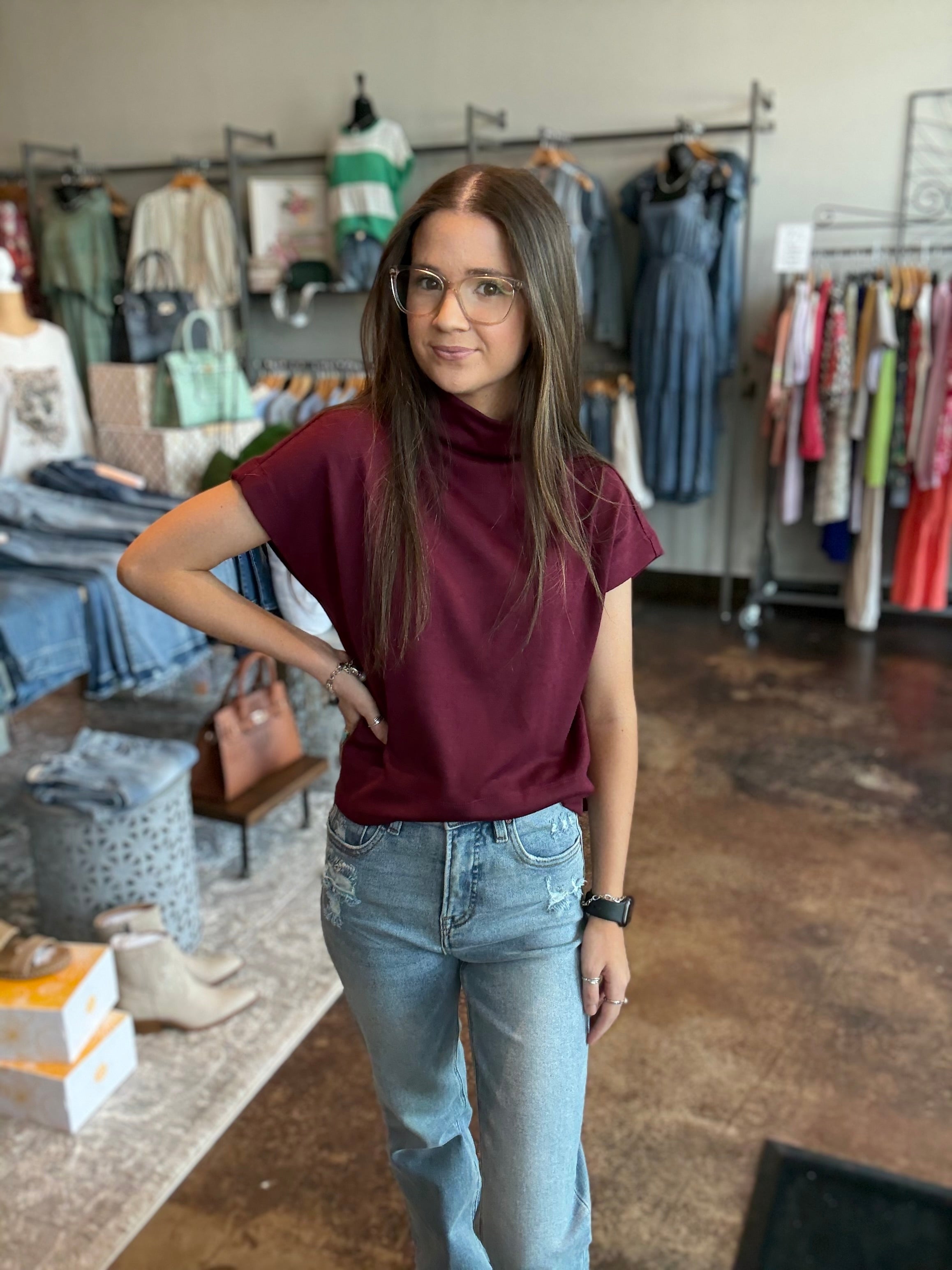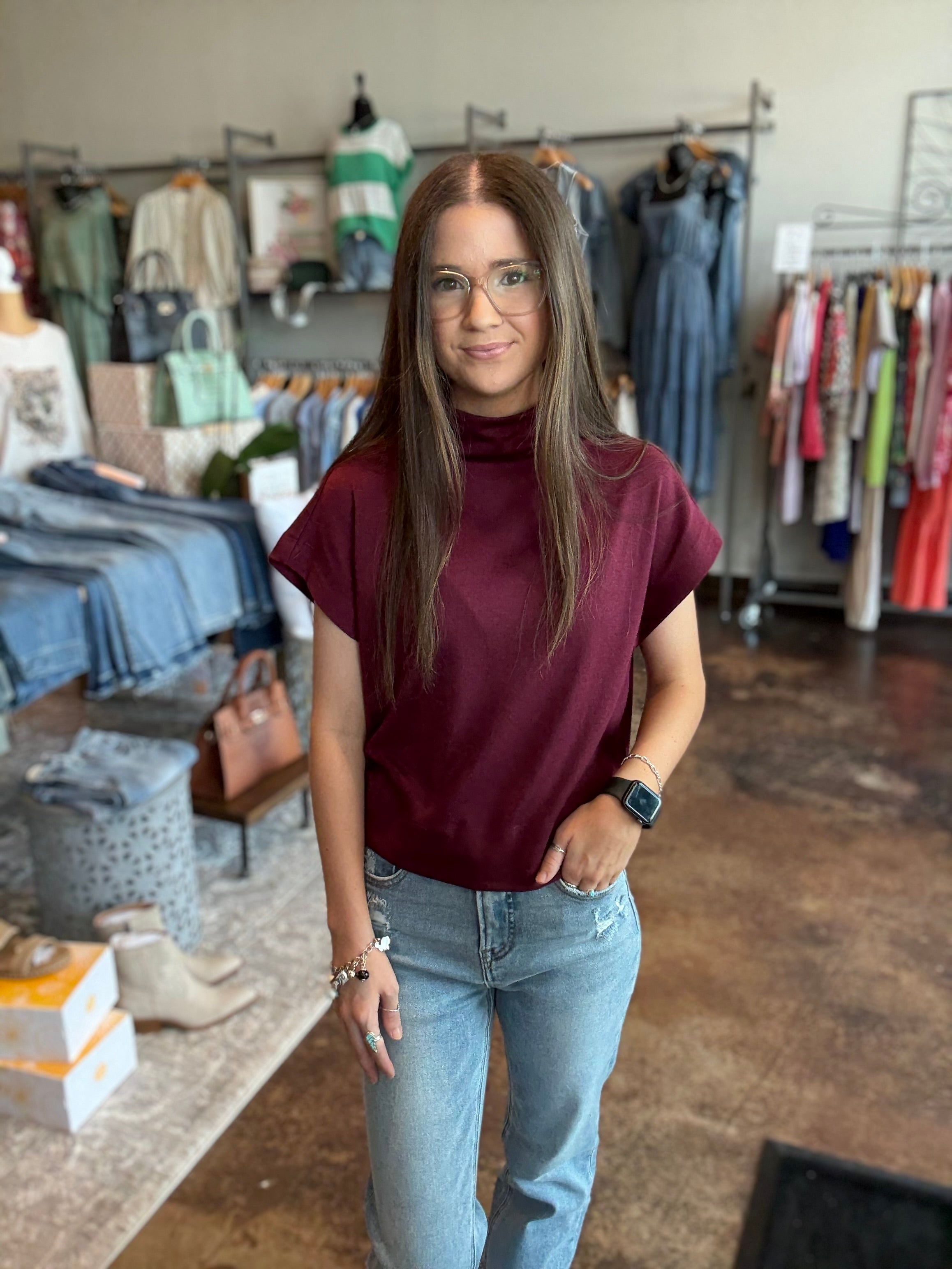 Cap Sleeve Mock Neck Knit Top