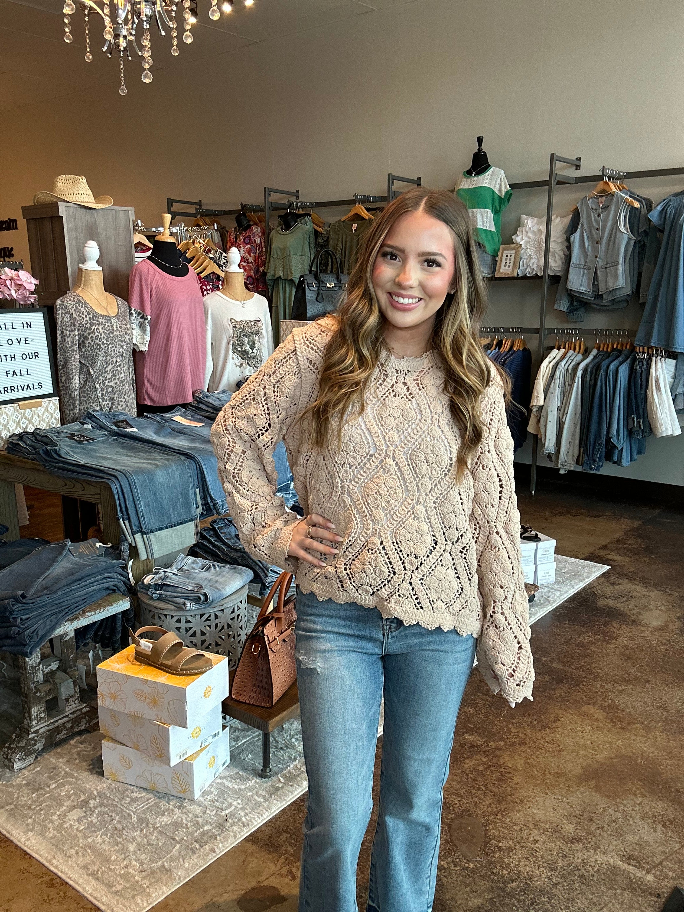 Crochet Knit Long Sleeve Top