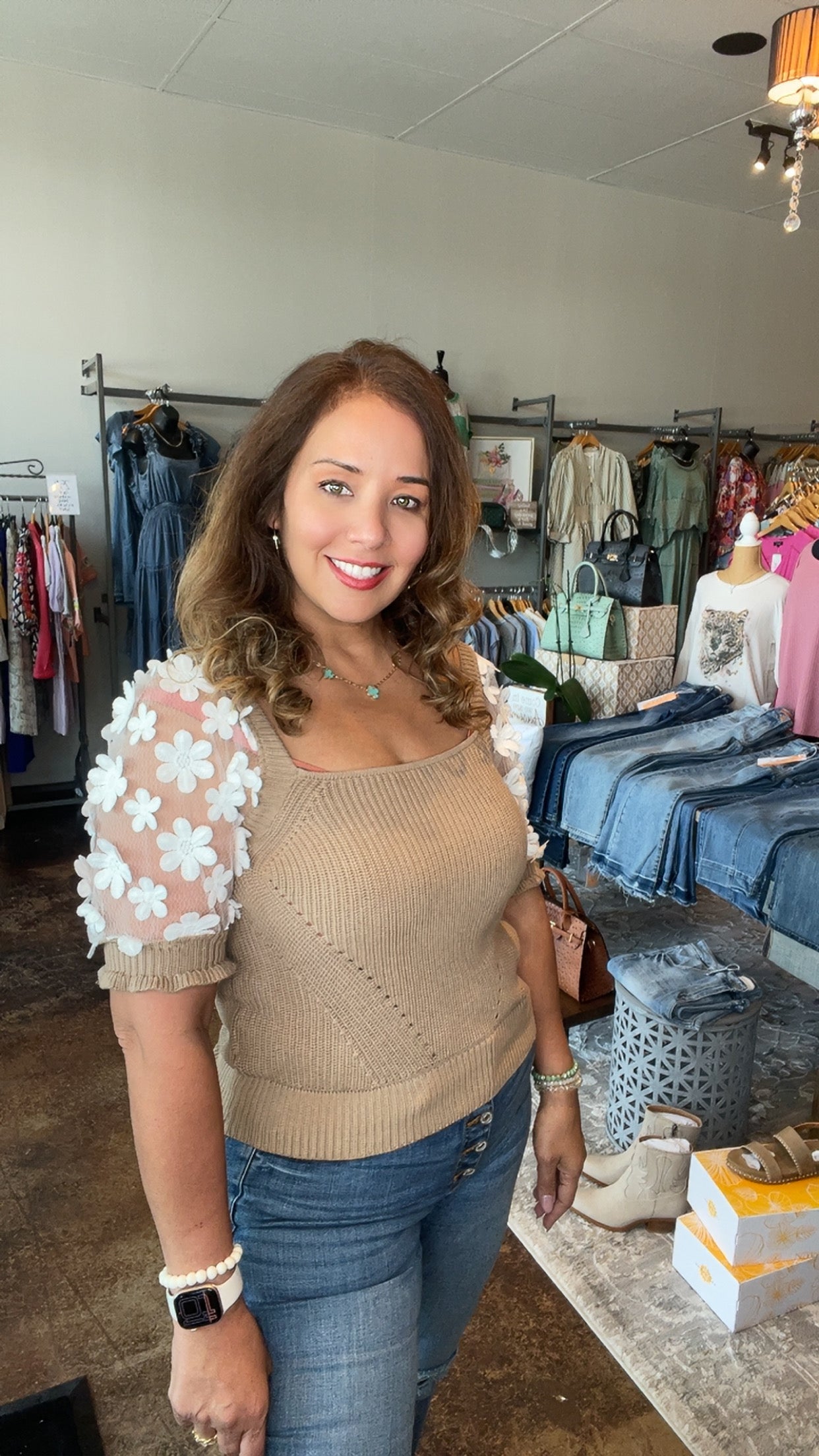 Floral Lace Puff Sleeve Sweater Top