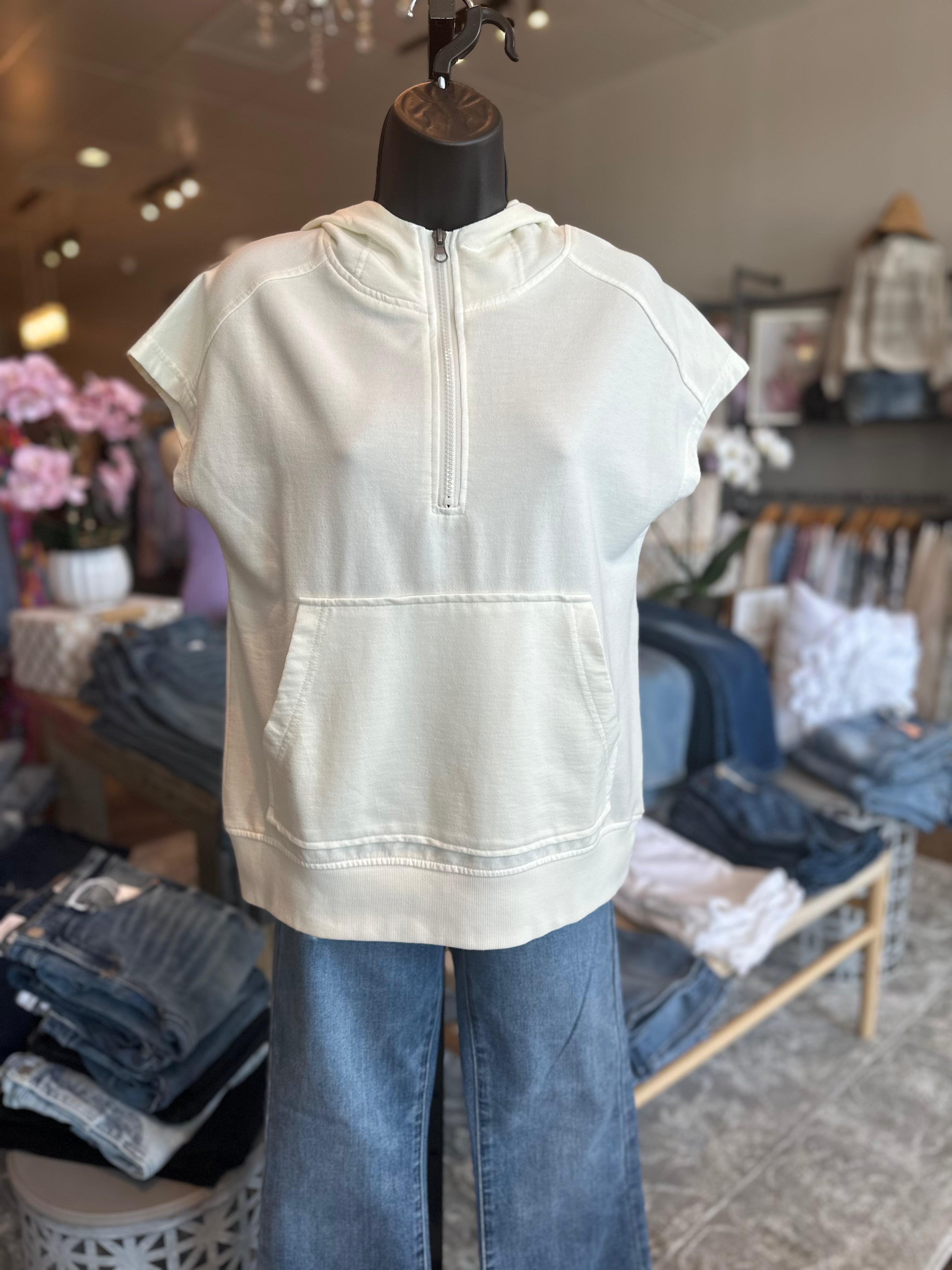 Quarter Zip Oversize Kangaroo Pocket Top