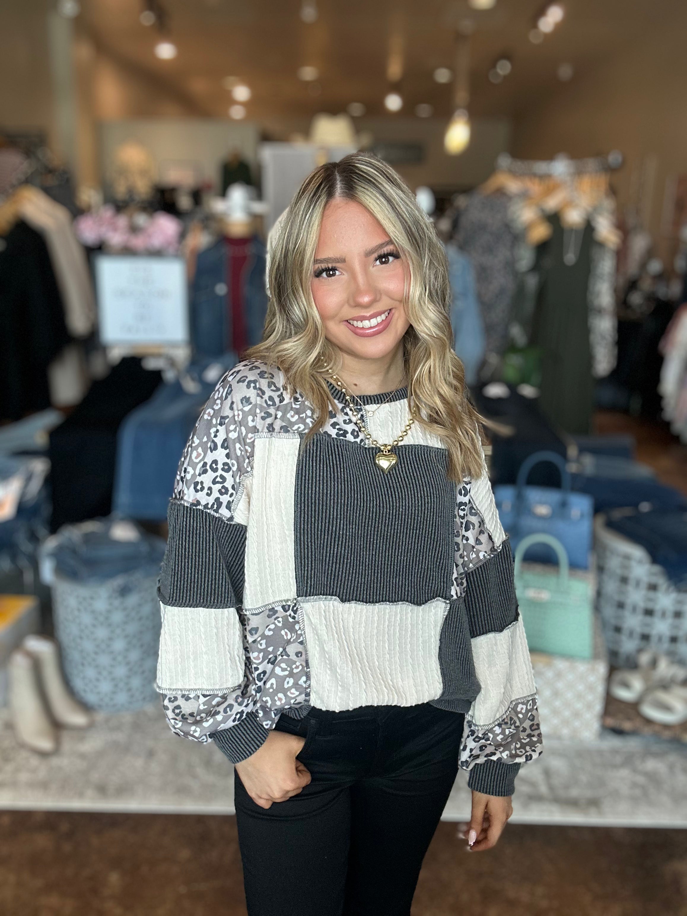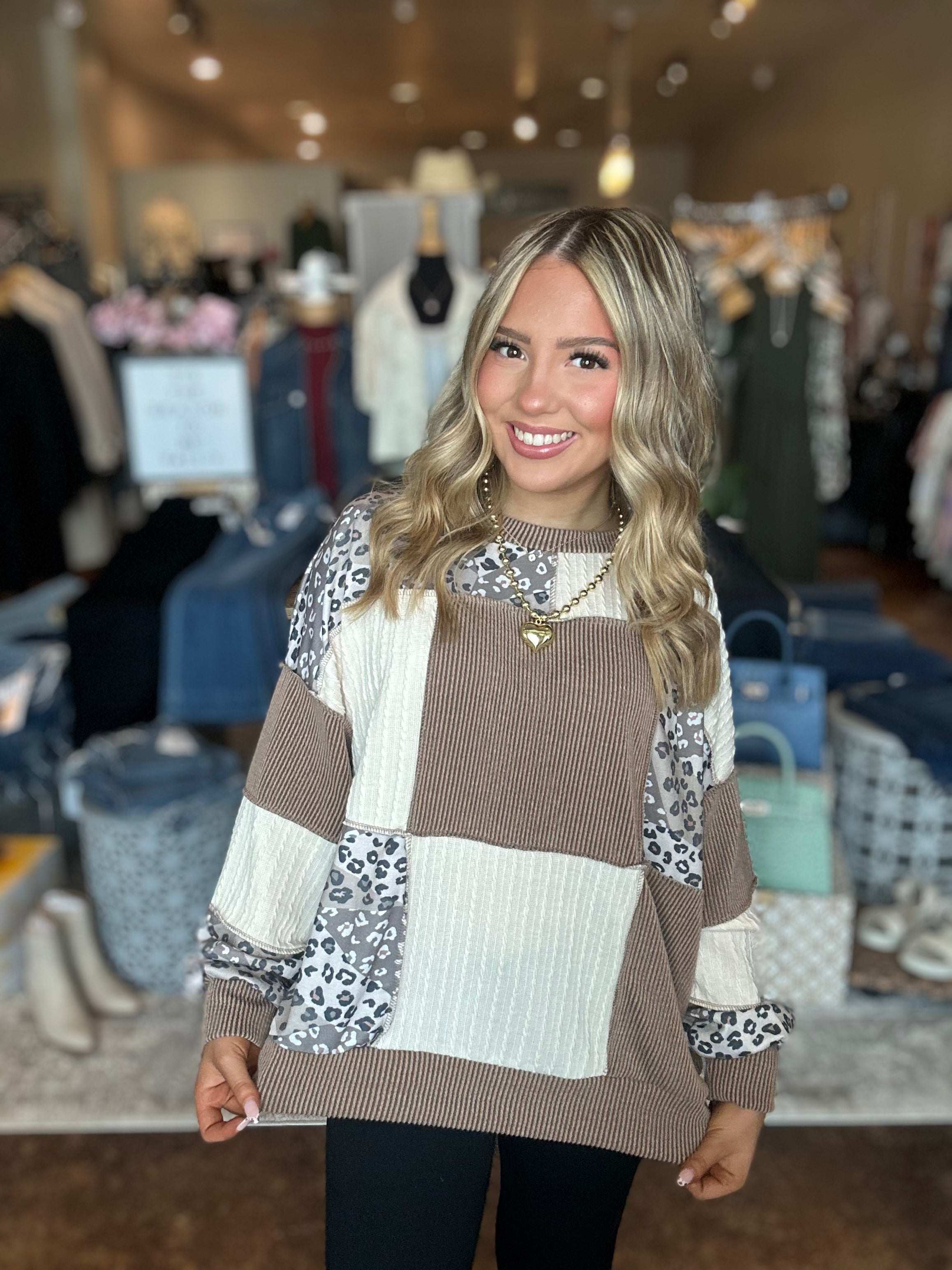 Rib Cable Knit Patchwork Pullover
