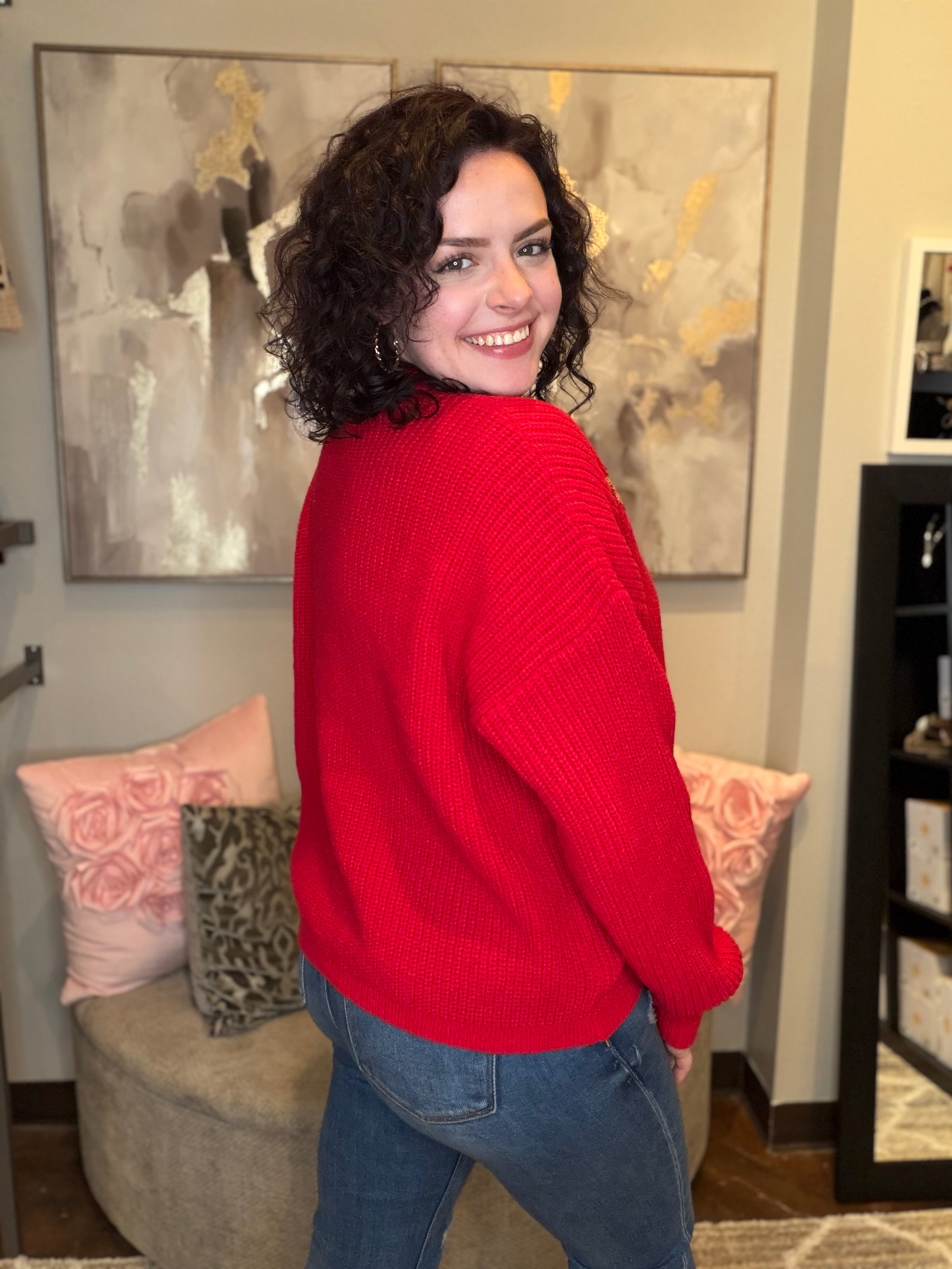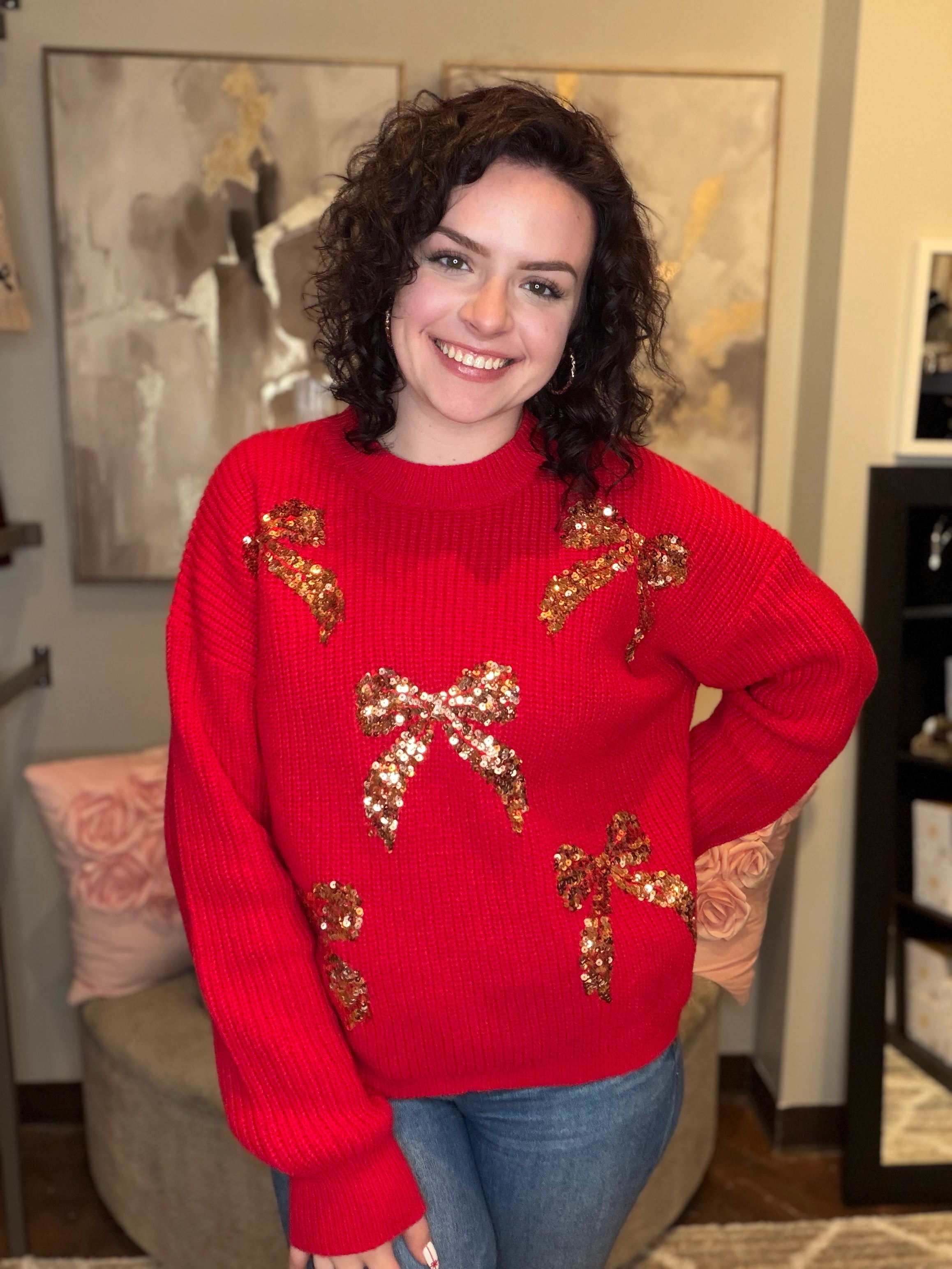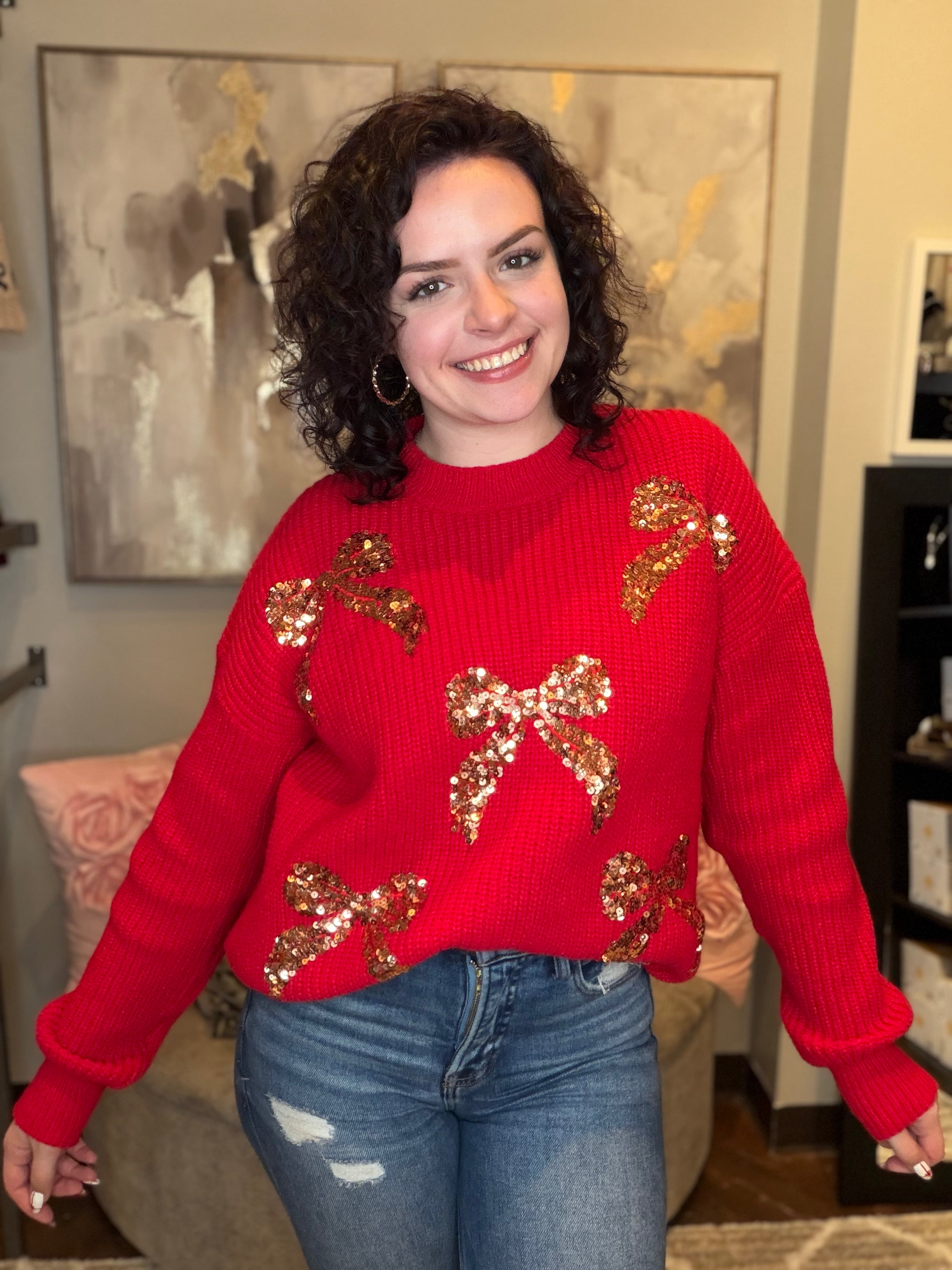All Over Ribbon Sequins Christmas Holiday Sweater Top