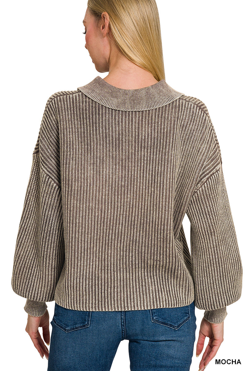 Washed Collared Henley Sweater