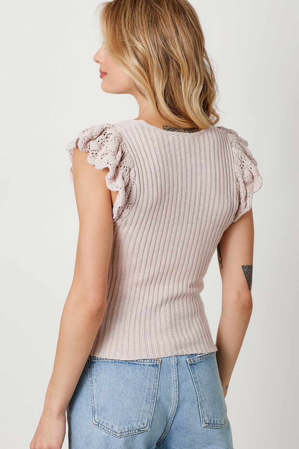 Flutter Crochet Sleeve Sweater