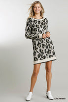 Stand out in style with our Animal Print Sweater Dress! Made from a soft and cozy material, this dress features a bold and trendy leopard print design in a cream mix color. Perfect for adding a touch of wild elegance to your wardrobe.
