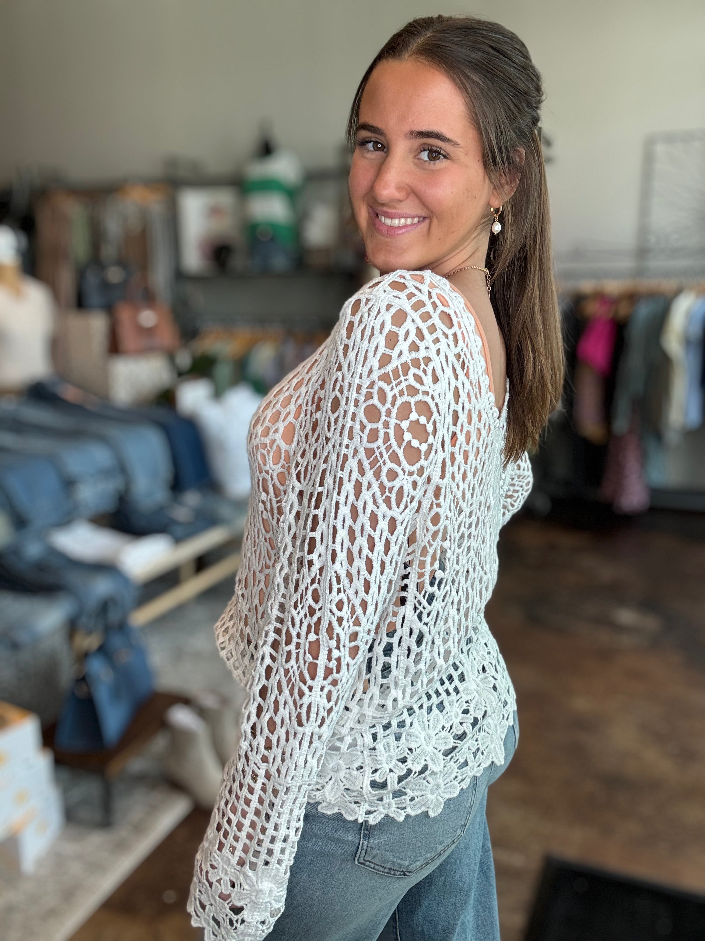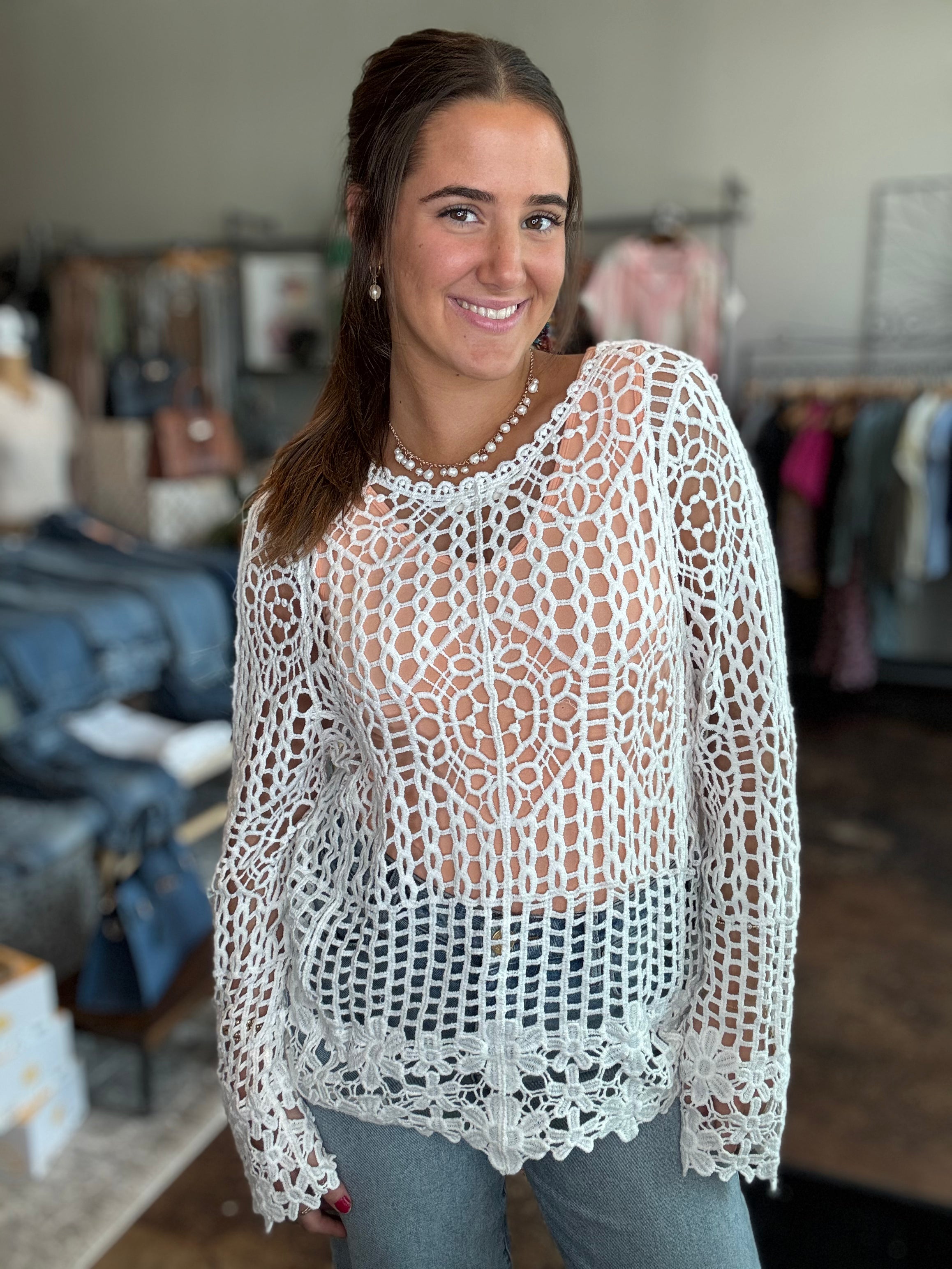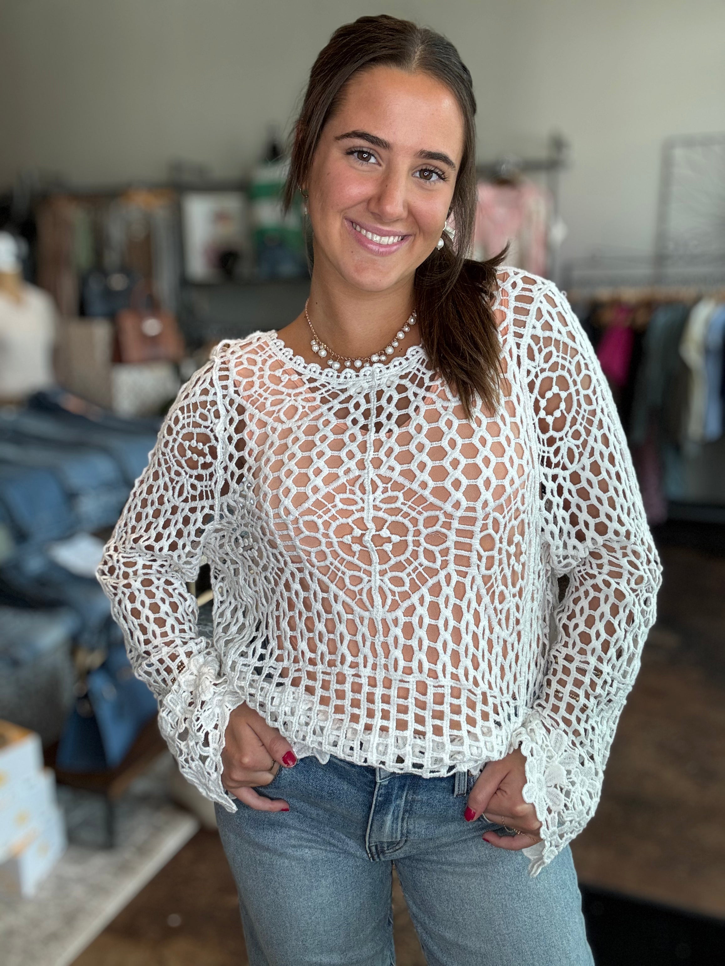 V-Neck Crochet Top With Floral Trim
