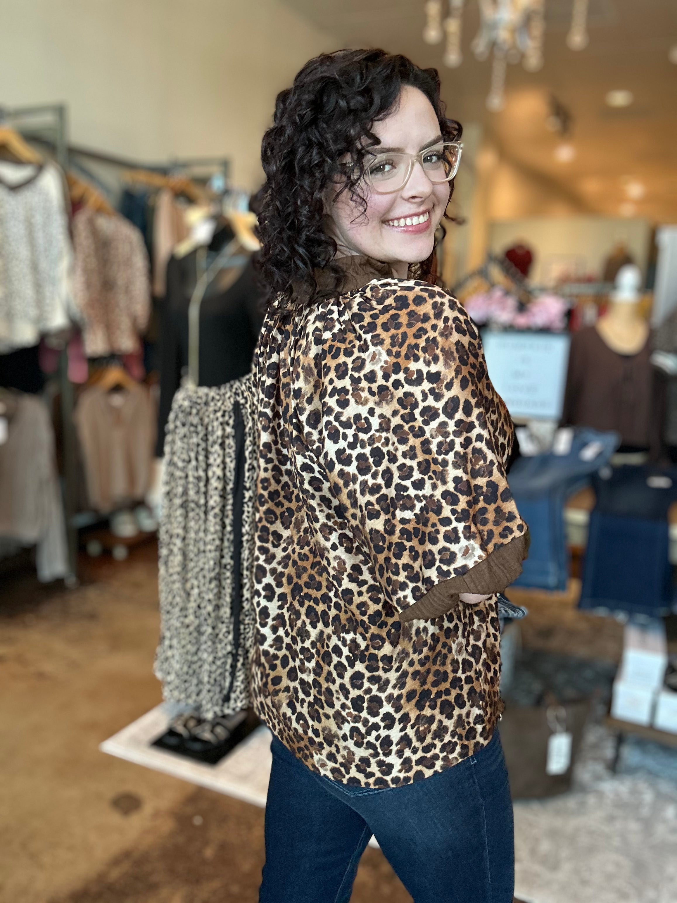 Bold, breezy, and effortlessly chic β this Bubble Sleeve Leopard Print Top brings just the right amount of edge to your everyday style. Featuring a flattering v-neckline, pleated bubble sleeves, and a loose, flowy silhouette, it offers both comfort and standout style. A subtle contrast detail adds a modern twist, making this top perfect for dressing up or down.