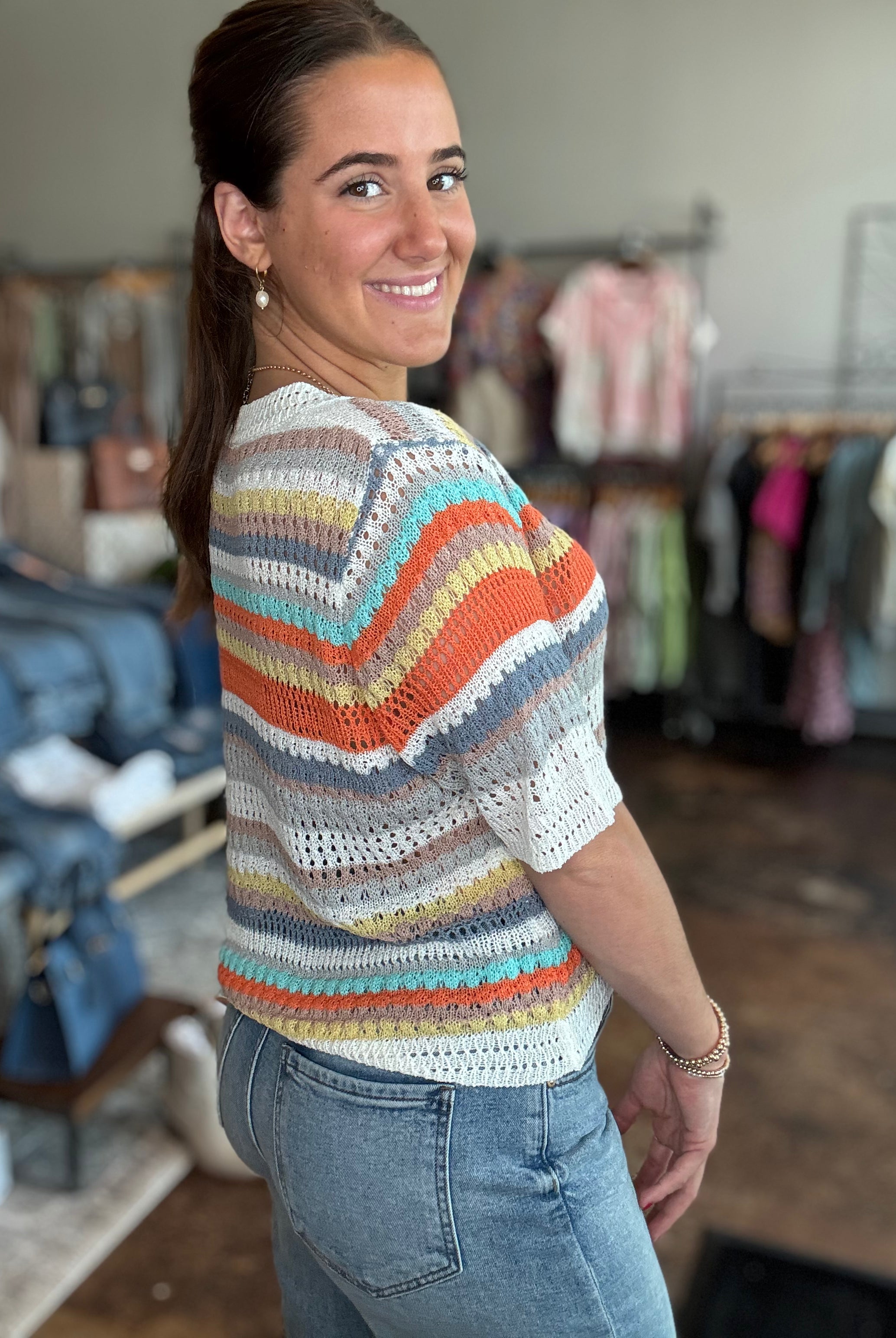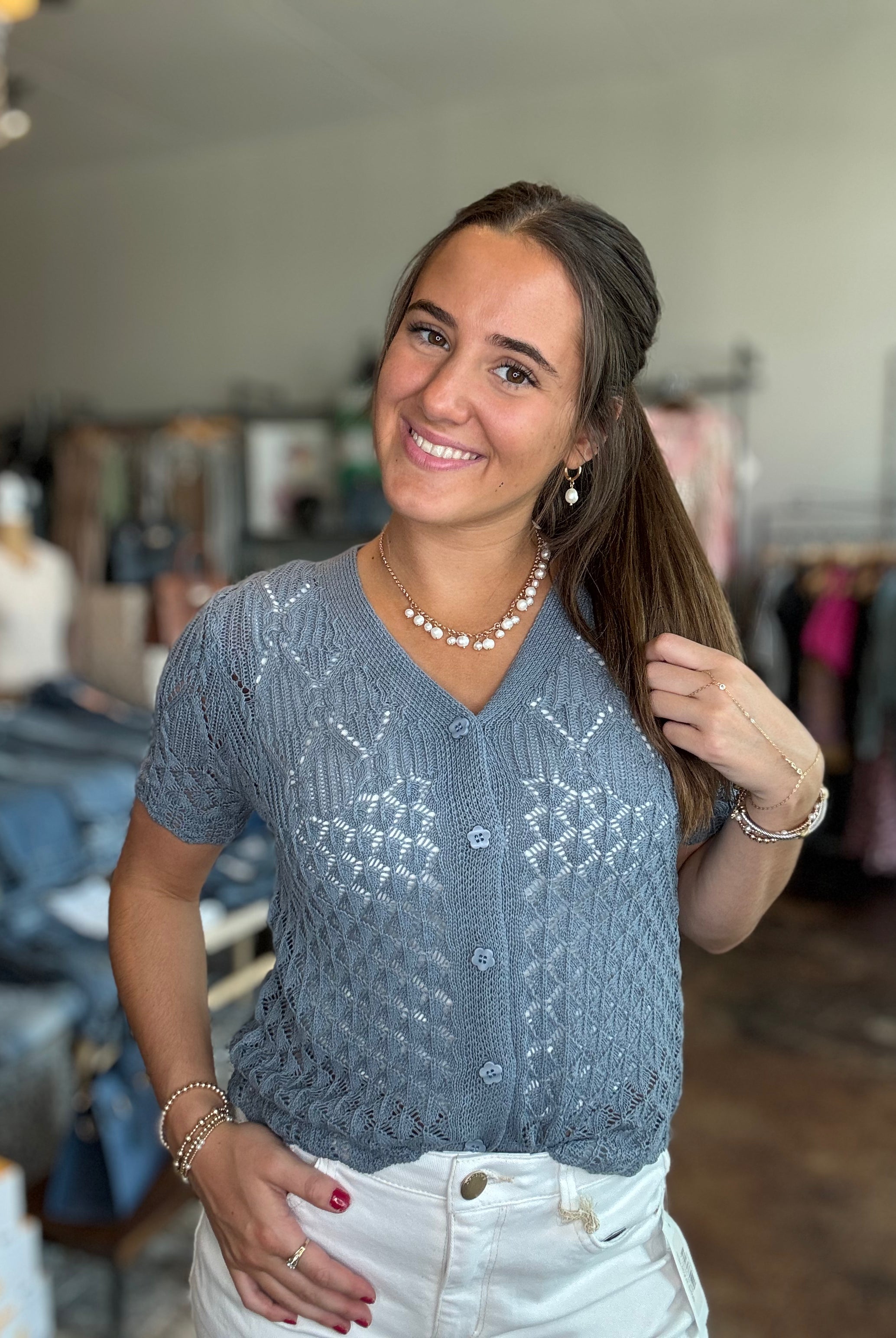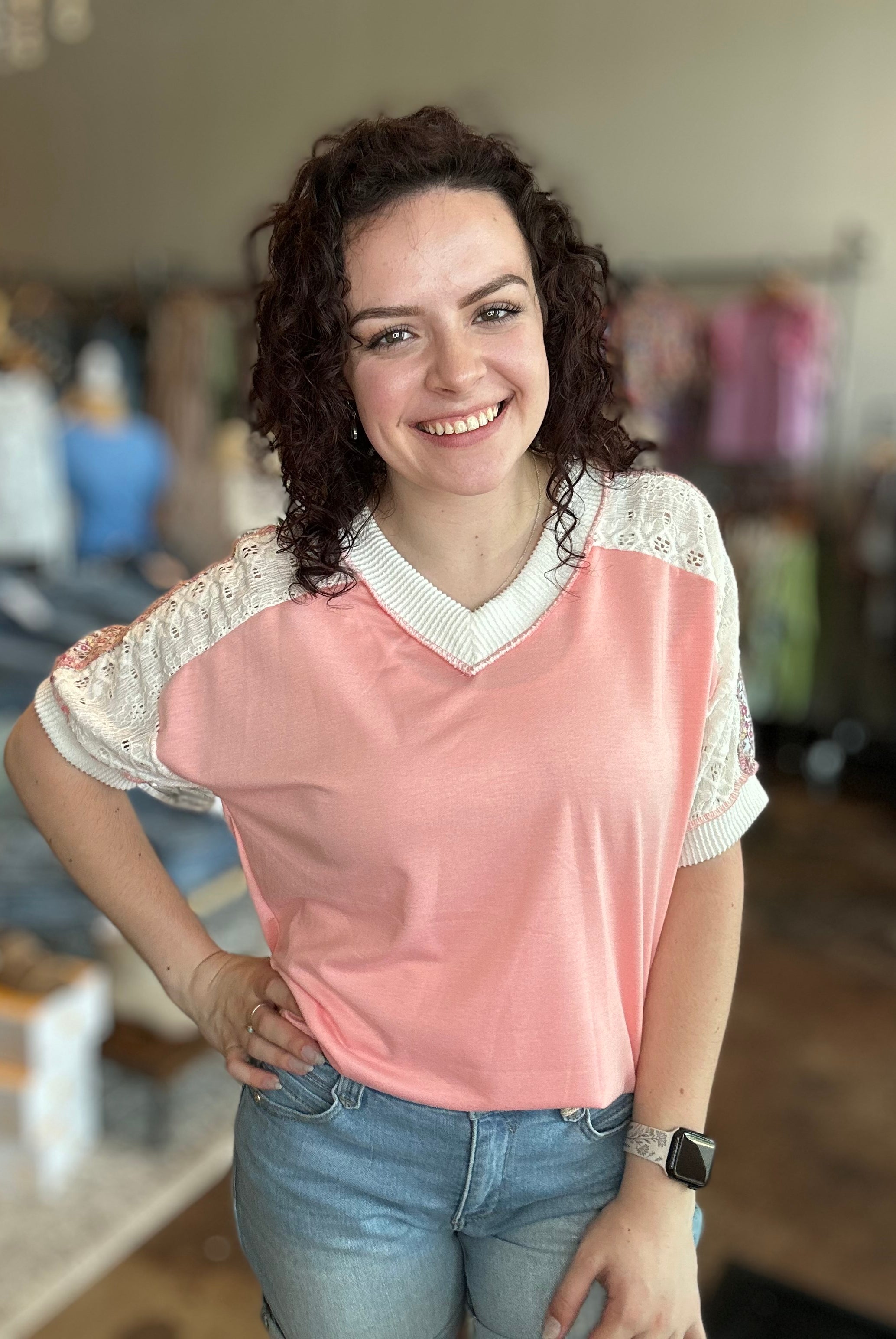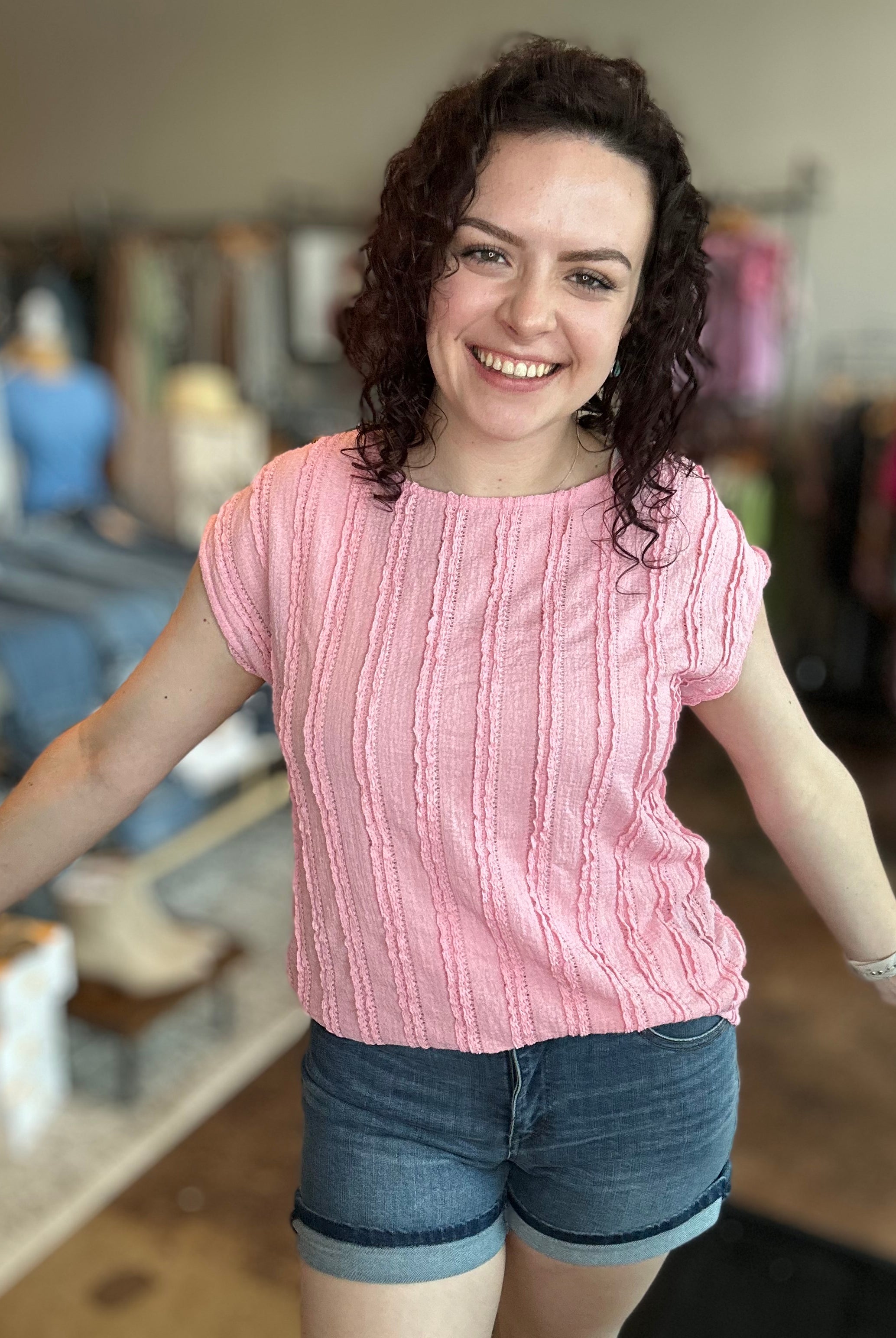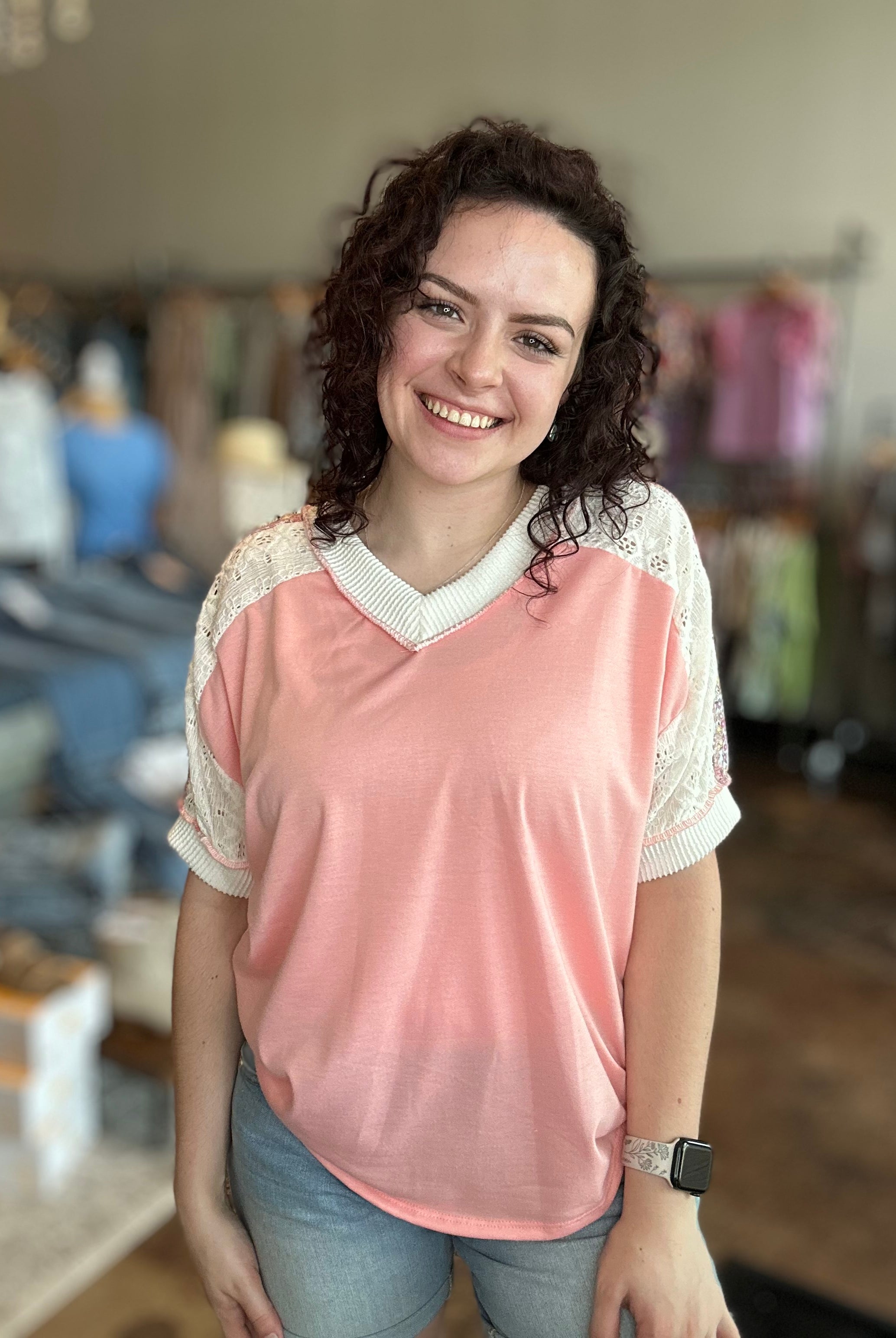 Our curated collection of women’s tops are perfect for refreshing your spring wardrobe. From vibrant graphic tees to flutter sleeves and our new all-time favorite crochet tops, we have something for every occasion. Whether it’s a date night, a day at the office, or a casual errand run, we’ve got you covered. We’re always updating with new arrivals so be sure to check back often and discover the latest additions to our collection!