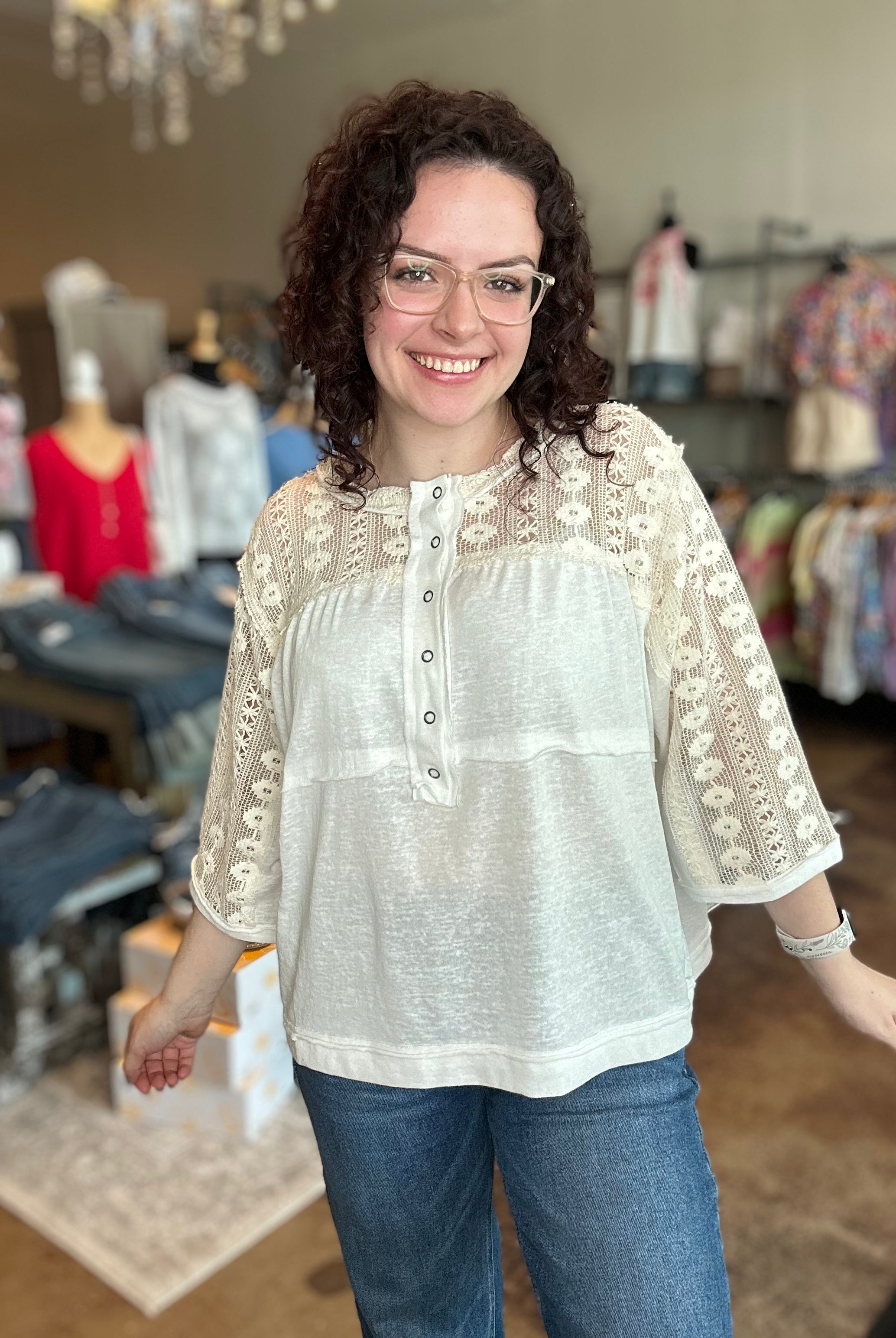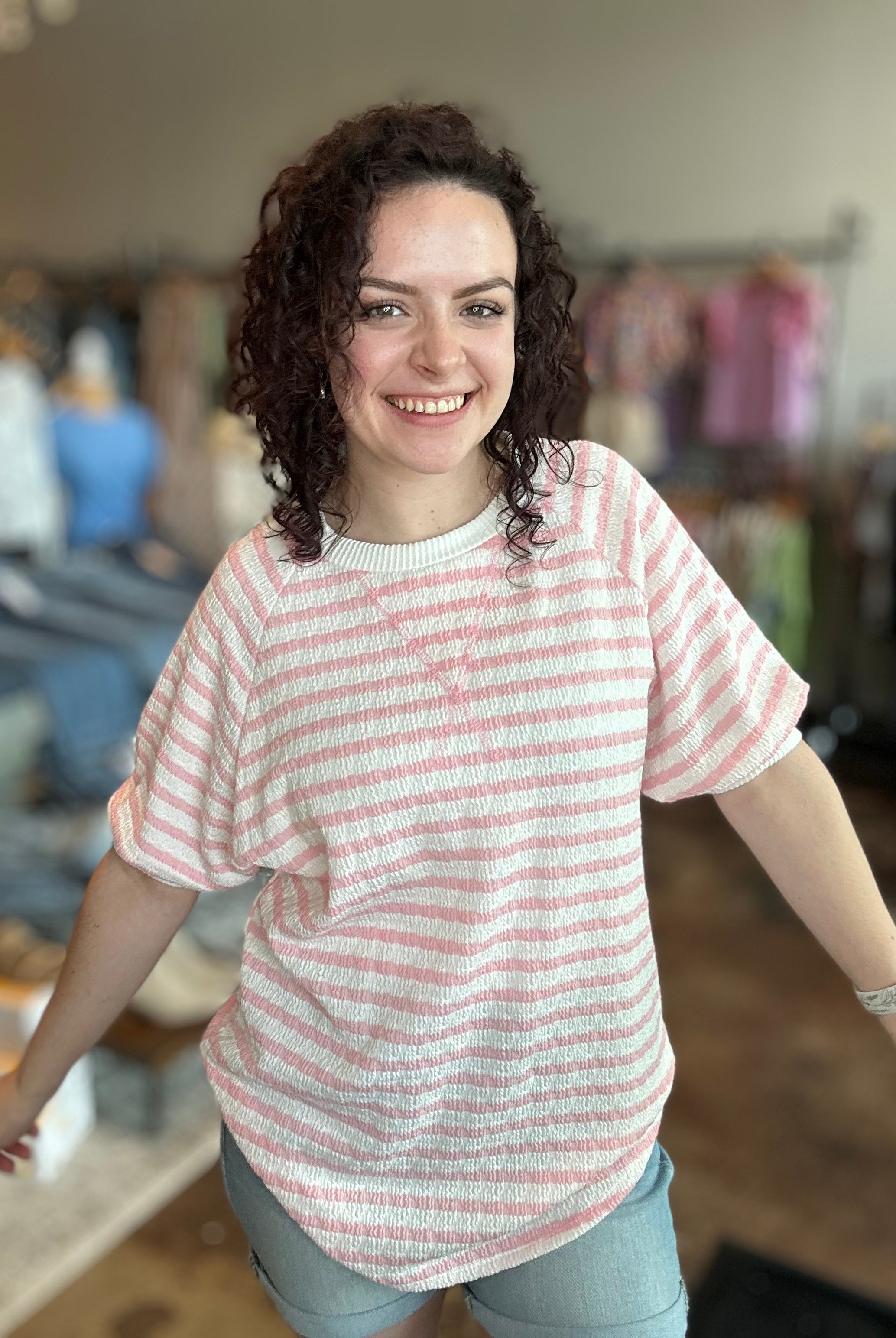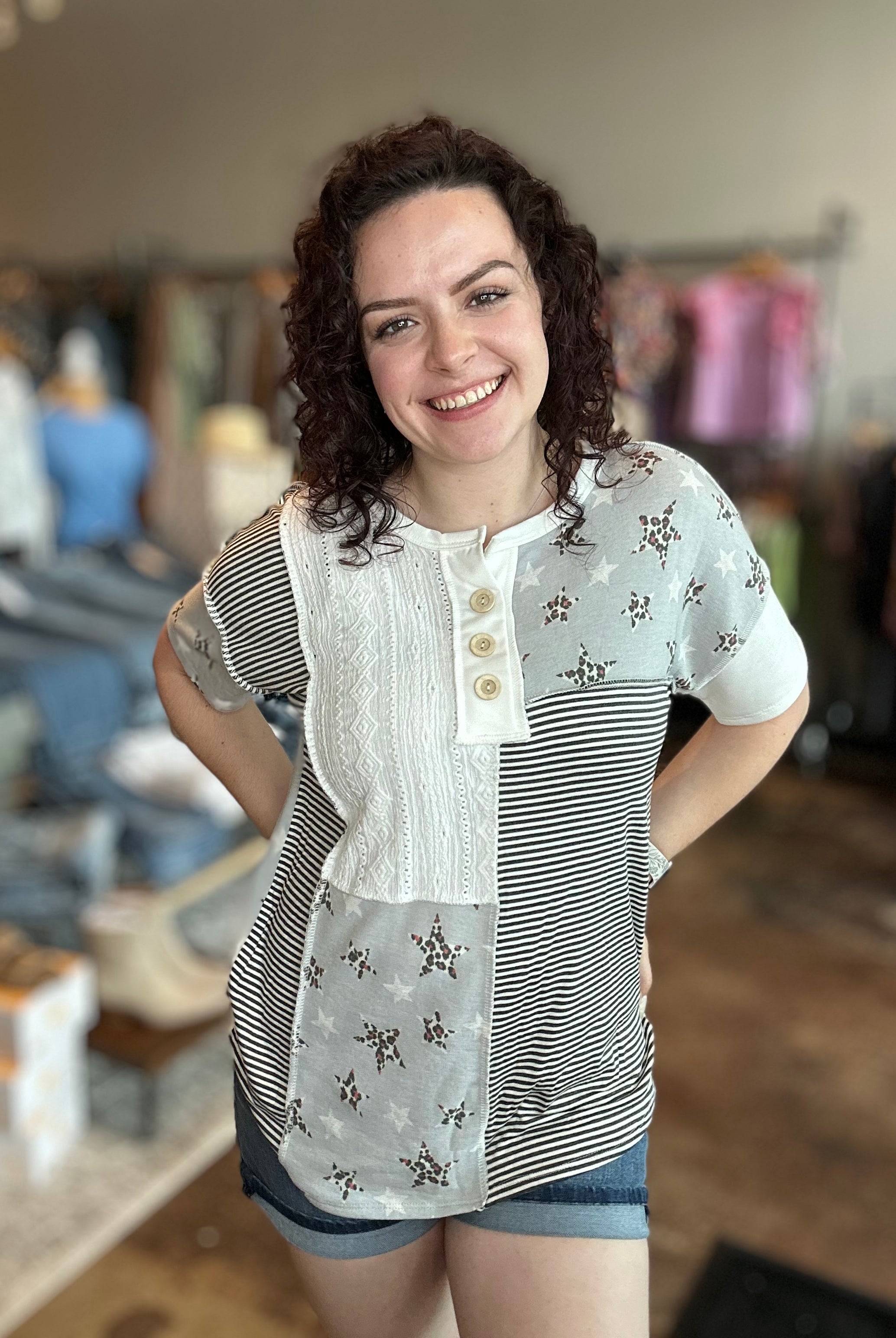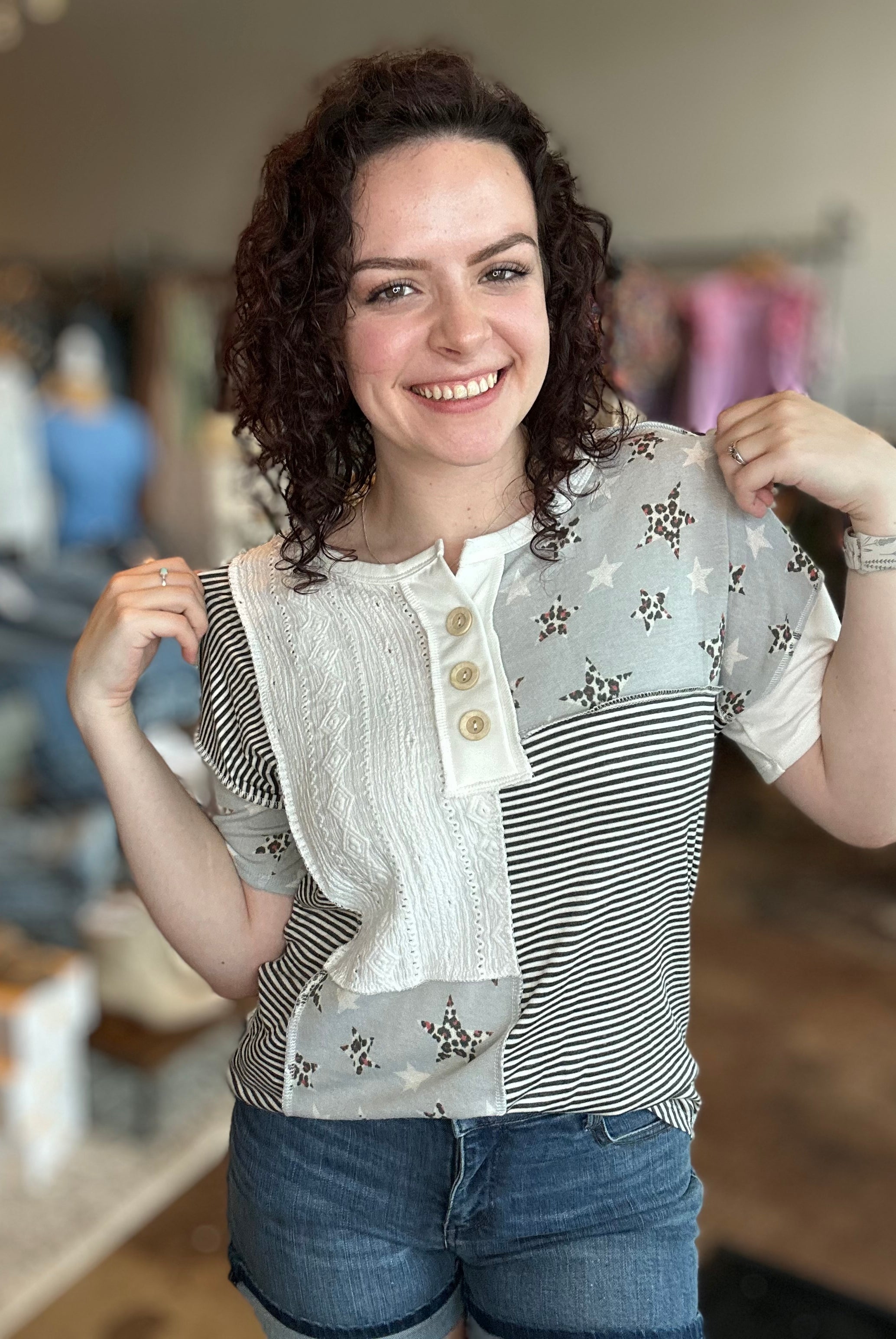 Our curated collection of women’s tops are perfect for refreshing your spring wardrobe. From vibrant graphic tees to flutter sleeves and our new all-time favorite crochet tops, we have something for every occasion. Whether it’s a date night, a day at the office, or a casual errand run, we’ve got you covered. We’re always updating with new arrivals so be sure to check back often and discover the latest additions to our collection!